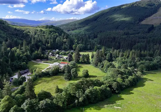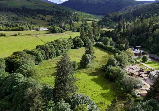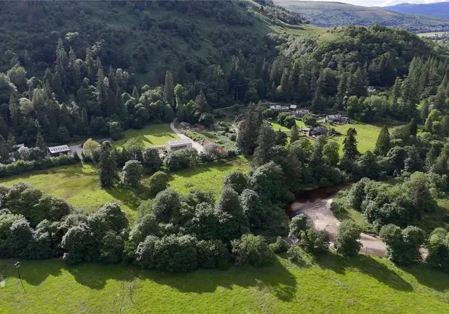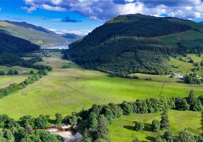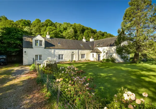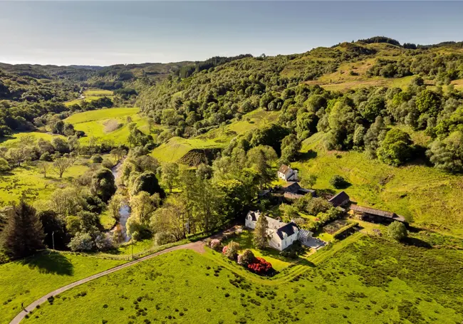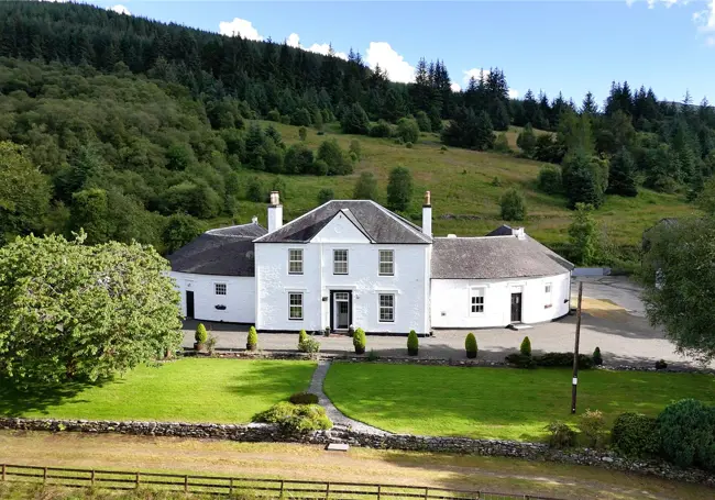CLOSING DATE SET WEDNESDAY, 27 NOVEMBER 2024 AT 12 NOON. Unique and hidden residential and amenity estate. Charming traditional 5-bed house. Two apartment cottage. Useful outbuildings. Productive pasture, upland grazing, amenity woodland. Salmon fishing rights. About 143.77 Ha (355.26 Acres)