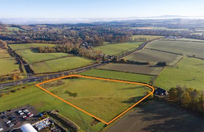 Outstanding site on edge of popular town Planning Permission in Principle for residential development of up to 200 units Farmhouse, steading and paddock extending to approx. 5.26 acres Development land approx. 46.28 acres (18.73 ha) in total Available as a whole or two lots