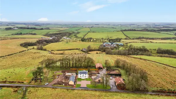 On the market through Galbraith is Auchmillanhill Farmhouse in Mauchline, East Ayrshire. This is an impressive renovated detached farmhouse which offers spacious accommodation in a lovely rural setting, the first completed property in an exclusive development of luxury homes. The property comprises entrance porch with original tiled floor, entrance hall which leads to the spacious living room with cornicing and wood burning stove. The fitted kitchen has a cosy inset woodburning stove with brick backdrop wall and a window seat to enjoy the views. There is a study/dining room, utility room with fitted units and plumbing for washing machine and sink, shower room with large walk-in shower, and separate w.c. completing the accommodation on the ground floor. On the upper level there is a family bathroom with bath and separate large walk-in shower, 3 bedrooms plus a well-proportioned master bedroom. There is a lovely lawned garden to the rear with a large patio area, with a further lawned area to the front and monobloc parking.