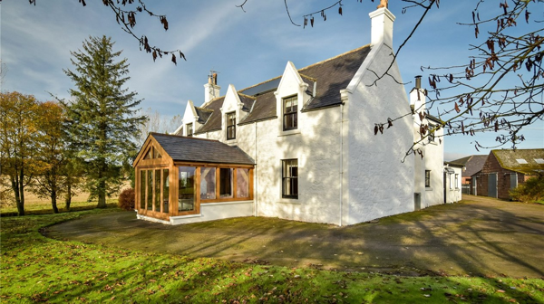 Brigton House is an attractive, five bedroom country property with a range of useful outbuildings and around 4 acres of paddocks, conveniently situated within easy reach of the A90. With origins dating back to 1860, the older part of the house is stone-built whilst further extensions have been added, including a beautiful garden room constructed with a Green Oak timber frame. The open plan farmhouse style dining kitchen is the heart of this home with French doors allowing a high ingress of natural light and views of the garden grounds.