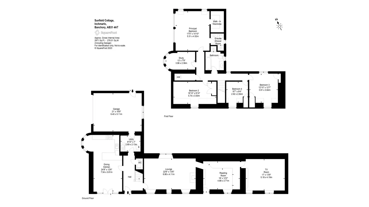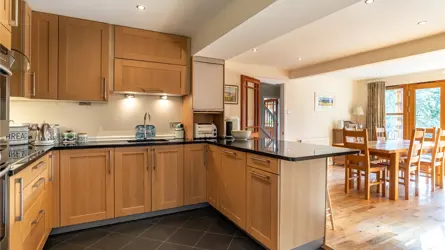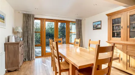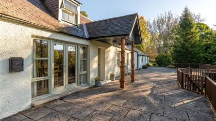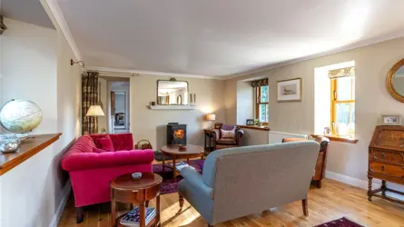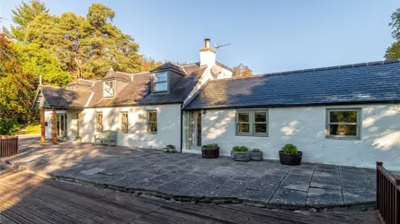 Located within an elevated position, discreetly set back from the road, Sunfield Cottage is a beautifully presented two-story extended cottage that features generously proportioned rooms and stylish accommodation throughout. The original cottage site dates back to circa 1850 and would have been positioned to benefit extensively from the natural landscape surrounding it. To this day, the landscape has an attractive appeal, however, the main cottage has undergone many changes with extensive extension and remodelling. The home retains some elements of its original frontage but with both interior and exterior now designed and created for modern family life. The extensive front stone flag patio and timber deck offer a wealth of entertaining and outdoor space and creates a welcoming approach. The traditional timber front porch, modern conical turret feature and the commanding floor to ceiling window to the master bedroom combine to give somewhat of a striking first impression.The main entrance leads into a light-filled reception hall featuring warm wood flooring and a carpeted staircase to the upper level. A door leads through into the kitchen and dining room which share an impressive open-plan space. French doors open out to the front decking and allow a high ingress of natural light to flood in. The kitchen features a range of wall, base and tall units, integrated appliances and contrasting work surfaces, the area also benefits from a breakfast bar with high seating for informal dining. From the entrance hallway, the utility room can be accessed and an adjacent door leads through to the integral double garage. A WC is also handily located here as well.Moving back through the entrance hall to the opposite side of the property, the versatile public rooms create a wealth of opportunity for any growing family, the continual flow of hardwood flooring adds to the feeling of light and space. The lounge has triple-aspect front windows and a view of the rear garden. An attractive focal point of the room is the log-burning stove which offers a warm atmosphere to the immaculate room. The reading room features an array of bookshelves and a glass door to the exterior the flooring here combines carpeting with wood, ideal for a workspace or office if required. Completing the ground floor accommodation is a third public room which the current homeowners use as a TV or movie room. There is ample space for a variety of free-standing furniture here and décor is soft with neutral grey carpeting.On the upper level, the master bedroom is an exceptional room, with floor to ceiling windows, and the natural light is extensive. The room proportions are generous and are further enhanced by a luxurious and well-appointed en-suite along with a walk-in wardrobe offering both hanging and shelved storage options. A study room or nursery is adjacent to the master bedroom and features the conical shape of the ground floor. Three good-sized double bedrooms are all equally well presented with soft neutral tones and quality carpeting. A family bathroom on this level has a spa-like quality with a Jacuzzi bath and a separate shower enclosure.With an excellent balance of practical living and flexible living/ entertaining spaces, both inside and out, this home offers the full package.ACCOMMODATIONGround Floor - Entrance Hallway, Living Room, Sitting Room, Family Room, Kitchen with Open Plan Dining Room, Utility Room, ToiletFirst Floor - Landing, Master Bedroom with Dressing Room and En-Suite Shower Room, Three further Bedrooms, Bathroom, StudyGARDEN GROUNDSThe property enjoys extensive garden grounds to an elevated position behind the house, as well as to the front and rear. A driveway leads off the main A93 road and accesses the property’s ample parking spaces. The integrated double garage benefits from light, water and power with an electric door. The garage also benefits from the walls and ceiling completed with plasterboard lined. To the front of the property, the raised stone patio and timber decking provide entertaining space designed to capture the best light of any season. To the rear of the property, the garden grounds are expansive, there are areas of cut lawn with areas left to enjoy more natural growth. There is also a mix of woodland trees surrounding the border. Stretching to around 1.9 acres the grounds are a substantial playground for all the family to enjoy. A high degree of privacy is offered to the rear of the property with open countryside views. Boundaries, where defined, are post and wire fencing with timber sheds to remain.Property - Sunfield CottageWater - MainsElectricity - MainsDrainage - Septic TankTenure - FreeholdHeating - OilCouncil Tax -Band GEPC - ESituated 3 miles from Banchory in Aberdeenshire, Sunfield Cottage enjoys a peaceful and fairly private location with easy access to amenities. Banchory offers a variety of shops, restaurants and leisure facilities, and is surrounded by picturesque hills and countryside. Located less than 20 miles from Cairngorms National park, the property is situated in a picturesque part of Scotland, enjoying easy access to unspoilt countryside. There are a number of well-regarded schools in the area, including two primary schools and a secondary academy in Banchory. Private education is available in Aberdeen at Robert Gordon’s College, St. Margaret’s school for Girls, Albyn School and the International School of Aberdeen in Cults. Aberdeen Western Peripheral route is only 20 minutes’ drive away providing easy access to the North & South of Aberdeen and other major Scottish cities including Edinburgh and Glasgow