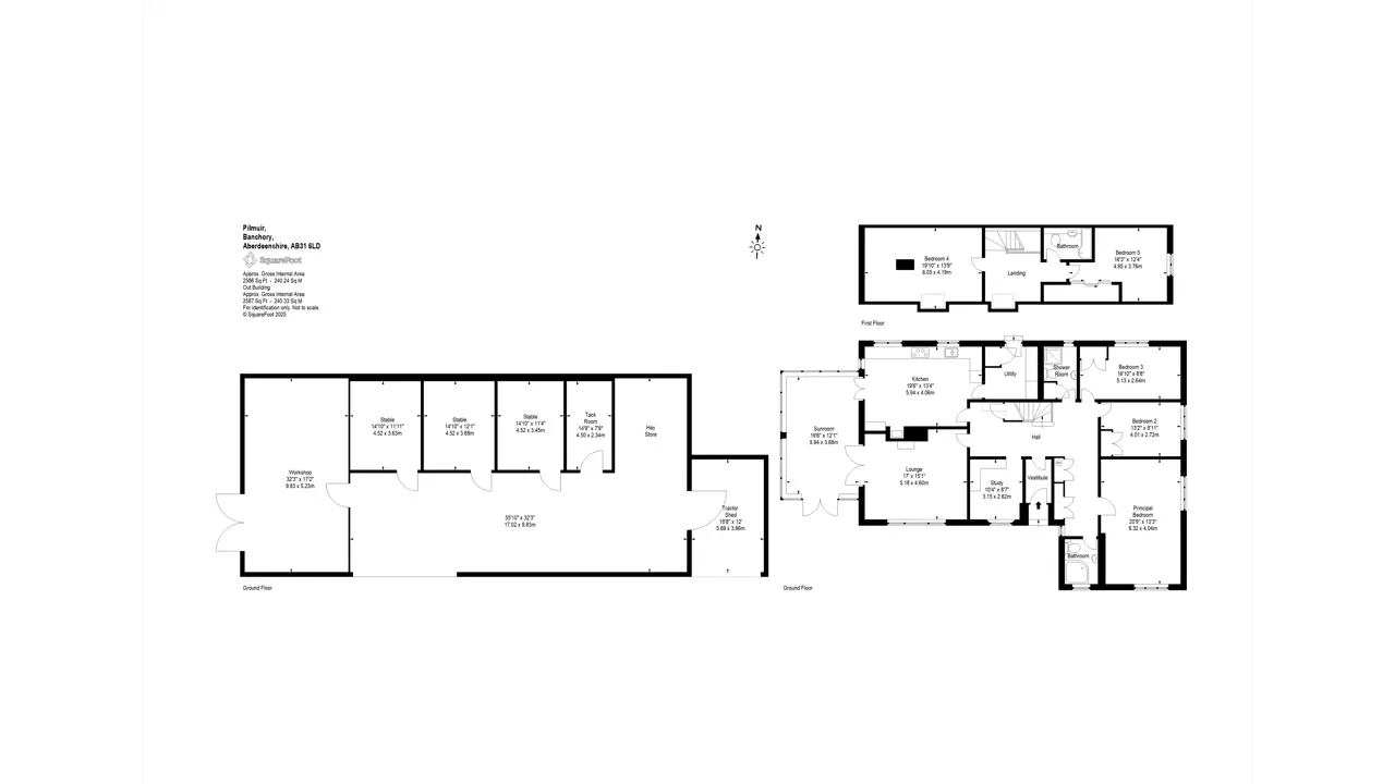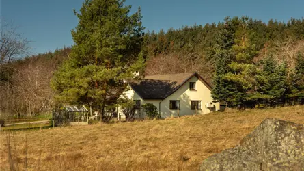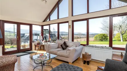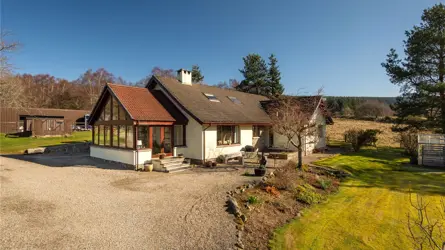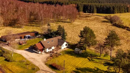 Pilmuir has a stunning countryside location, lying just three miles south of Banchory town centre. The property benefits from stunning open views across the beautiful Aberdeenshire countryside and the acreage that comes with the property offers wealth of versatility to any potential purchaser. The detached property offers a modern & spacious family home, dating back to 1980 with further extension of a sunroom being added to the home which has enhanced the enjoyment of the views surrounding. The house is situated well within its feu and is perfectly positioned to capture the open views surrounding. Upon entering the quality of build is apparent, the high ingress of natural light is equally attractive. Every room has been well presented, with lateral living on the ground floor with further bedrooms on the upper level. There is also a sense of practicality within the home ideal for one which offers such a great outdoor lifestyle.The main entrance vestibule opens onto the main inner hall which in turn leads to most of the ground floor accommodation. The impressive family dining kitchen has ample space for a variety of free-standing furniture, a comprehensive range of wall and base mounted units hosting quality integrated appliances. There is ample space for free standing furniture and the room benefits from a wood burning stove and high-quality flooring. The wood burning stove adds an additional warm feeling. The main lounge enjoys a picture window capturing the open views and allows a high ingress of natural light to flood in, the wood burning stove adds an additional focal point. Flowing seamlessly from the entrance hallway a study has been fully fitted with Neville Johnston home office furniture. The master bedroom has extensive freestanding wardrobes and the two windows provide a frame to the views beyond. Two further bedrooms run simultaneously adjacent to the master, and both have been equally beautifully presented and feature fitted wardrobes. The utility room is located off the kitchen and is ideal for hanging coats and outdoor boots and provides access to the rear garden. The ground floor accommodation is serviced by both a large shower room and a striking family bathroom with corner bath. The overall standard of décor is exquisite, and the use of quality fixtures fittings, flooring and carpeting is second to none. Completing the ground floor accommodation is the stunning sunroom which is a wonderful addition to the accommodation. Featuring stunning views to the countryside and beyond the sunroom provides the ideal room in which to relax, entertain and socialise with the whole family. Exterior French doors complete that inside/ outside feeling. On the upper level there is an additional two large double bedrooms with a bathroom serving them both. The upper level would suit any growing family but would also ideally allowing for multi-generational living if required. An abundance of storage can be found throughout the home, combining the surrounding gardens and acreage Pilmuir offers great lifestyle package for any purchaser.Pilmuir has generous garden grounds, 10 acres of grazing paddocks and 50 acres of stunning woodland. There are excellent equestrian facilities all within easy reach of the house. The large metal clad outbuildings is currently used for stabling storage and garaging. The overall acres give you your very own outdoor space to enjoy. The current owners have created a top quality yet accessible and easily managed equestrian facility set up. The stable blocks can be versatile and used as required. A large field shelter will remain.Ground floor - Entrance vestibule, hall, living room, sun lounge,kitchen, study, 3 bedrooms, utility room, bathroom with WC andshower room with WC.First floor - 2 bedrooms and bathroom with WC.The garden for Pilmuir has impressive views across the land and beyond. Upon approach there shared driveway leads to the house and there is ample parking for several vehicles on the stone chip driveway to the side of the house as well as also on gated concrete area in front of the metal clad agricultural outbuilding. Areas of well-tended lawns surround the property with decorative landscaping in the form of well-established bushes and shrubs with further planted areas. A patio to the front of the property provides an ideal area for a decorative table and chairs to be placed with further seating areas located within the garden. Within the garden there is also a greenhouse and an enclosed dog run.Water - Mains Electricity - Mains Drainage- Septic Tank Tenure - Freehold Heating - Oil Ch Council Tax- Band G EPC - D Situated three miles from Banchory in Aberdeenshire, Pilmuir enjoys a peaceful and fairly private location with easy access to amenities. Banchory offers a variety of shops, restaurants and leisure facilities, and is surrounded by picturesque hills and countryside. Located less than 20 miles from Cairngorms National park, the property is situated in a picturesque part of Scotland, enjoying easy access to unspoilt countryside. There are well-regarded schools in the area, including two primary schools and a secondary academy in Banchory. Private education is available in Aberdeen at Robert Gordon’s College, St. Margaret’s school for Girls, Albyn School and the International School of Aberdeen in Cults. Aberdeen Western Peripheral route is only 20 minutes’ drive away providing easy access to the North & South of Aberdeen and other major Scottish cities including Edinburgh and Glasgow. A busy equestrian community exists near Pilmuir, Scotland’s top-tier Bogenraith Equestrian, a new state-of-the-art facility, is located 9 minutes from the property and there are ample hacking routes into the woodlands surrounding the property.