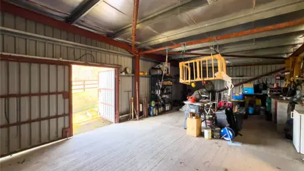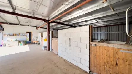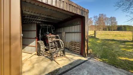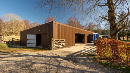 - Metal clad outbuilding housing stables and workshop