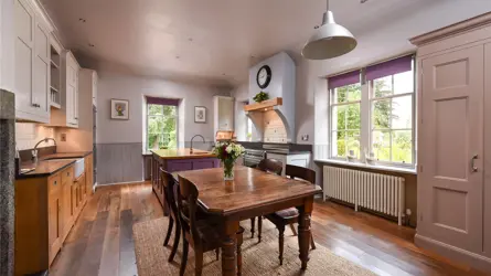 Mansefield is an impressive B Listed Georgian property, formerly the manse for the Alford Auld West Kirk which was originally at the centre of the parish. The original manse dates to 1718, with substantial additions in 1832 and Victorian times. The property sits in around 3.4 acres of outstanding garden grounds including the formal walled garden, rolling grass lawns and mature woodlands with meandering paths. The grounds are bordered by 250m of riverbank of the Leochel Burn to the north and west and offer a great deal of privacy and space for any proprietor. Mansefield is located within the Alford area of Donside, an extremely popular and growing town in Aberdeenshire, within very easy access of the Cairngorms National Park and Royal Deeside.The extensive accommodation continues over four levels and offers the traditional features one would expect of such a home.The main entrance vestibule continues to the hall, and this in turn leads to most accommodation to the ground level. The formal drawing room has a beautiful outlook over the front garden from the bay window and has an open fireplace. The dining room is a formal room, with an equally pleasant outlook over the garden and an open fireplace. There is also a superb home office, separate cloakroom, storeroom & steps down to the inner hall. The sitting room is a very spacious and comfortable room with wood burning stove and steps leading to the wonderful dining kitchen. The dining kitchen is fitted with a bespoke Murray & Murray kitchen with solid oak units and Kirkstone slate work tops. The heart of any home, this kitchen has a wood burning stove, a SMEG dual fuel range cooker, built in Miele dishwasher & built in NEFF ovens, steam oven & microwave and a Baumatic warming drawer; it is both a practical, yet luxury, working space within the property. From the kitchen an inner hall gives access out to the garden and to the main reception hall. This inner hall also leads you to the excellent shelved pantry and utility room with W.C. Access by stairs to the lower ground floor leads to two generous workshop rooms and the former coal cellar. There is direct access from this level outdoors, and the space here is extremely useful and well maintained.As one continues up the stairs to the first floor there is the principal bedroom, a very spacious room, with an open fireplace flanked by tall windows. This room also enjoys built in wardrobes and an impressive ensuite bathroom with separate shower unit and underfloor heating. Bedroom 2 is an equally spacious double room and lies adjacent to the modern main family bathroom. There are three further good double bedrooms on the first floor, all of which enjoy varying views over the surrounding garden grounds. Stairs from the first-floor lead to the attic level. Bedroom 6 has a sky light window and there is a further attic room.ACCOMMODATIONLower Ground Floor: Three cellar/workshop rooms.Ground Floor: Entrance vestibule, hall, drawing room, dining room, sitting room and dining kitchen. Home office, utility room/cloakroom, cloakroom, pantry and storeroom.First Floor: Principal bedroom with ensuite bathroom. Bedroom 2, bedroom 3, bedroom 4, bedroom 5 & family bathroom.Second Floor: Bedroom 6 & attic room.GARDEN GROUNDSMansefield enjoys around 3.4 acres of garden grounds offering privacy, shelter and plentiful outdoor space. A private sweeping driveway, flanked by neat hedging, leads to the front of the main house. The front garden is mostly rolling grass lawn, bordered by mature woodland rhododendrons and mature shrubs. Natural paths provide walks and adventures through the trees and round the beautiful Leochel Burn, which boundaries the property to the north and west. There are perfectly placed seating spots to enjoy the peace & quiet, the sound of water and the array of birds & wildlife. Red squirrels, roe deer, pheasants, woodpeckers, dippers & a variety of woodland birds are regularly seen.The walled garden is an outstanding feature of this historic property and offers an idyllic and picturesque formal garden. Stone gravel paths meander through the colourful herbaceous borders, topiary, box hedging and mature fruit trees. There are herb gardens, kitchen gardens and a beautiful Alton timber framed greenhouse sits perfectly in this walled garden, whilst the timber pagoda offers a relaxing spot to overlook the garden grounds. The former Gardeners Cottage is a charming traditional building with upper level, and presently used for storage. The traditional steading is also an extremely useful building divided into three areas including garaging. A new timber shed adjacent to the steading, with double doors, offers further storage and working space. This steading building sits in the northeast side of the walled garden and has a separate access track from the public road. Both the gardener’s cottage and steading may be suitable for conversion with the necessary permissions.SERVICES, COUNCIL TAX AND ENERGY PERFORMANCE CERTIFICATE(S)Water MainsElectricity MainsDrainage Septic TankTenure FreeholdHeating OilCouncil Tax Band GEPC Band FAn additional private water supply is in use and primarily used for the gardens.SITUATIONMansefield is located just a few minutes’ drive from the town of Alford in a beautiful & quiet countryside location. Schooling is provided at Alford Primary School and then Alford Academy, which is a very popular community campus with secondary school, swimming pool, theatre, library and community café. Alford is a popular and growing town with a wealth of amenities including a health centre, Co-Op, butcher, Post Office & other shops, filling station, cafes & hotels along with a dry ski slope, golf course and 2 museums. On the edge of Alford is Haughton Country Park, a 200 acre park with an array of activities available including, children’s play area, walks and trails along with a putting green and camp site. Regular bus services are available from Alford with links to Aberdeen, Westhil