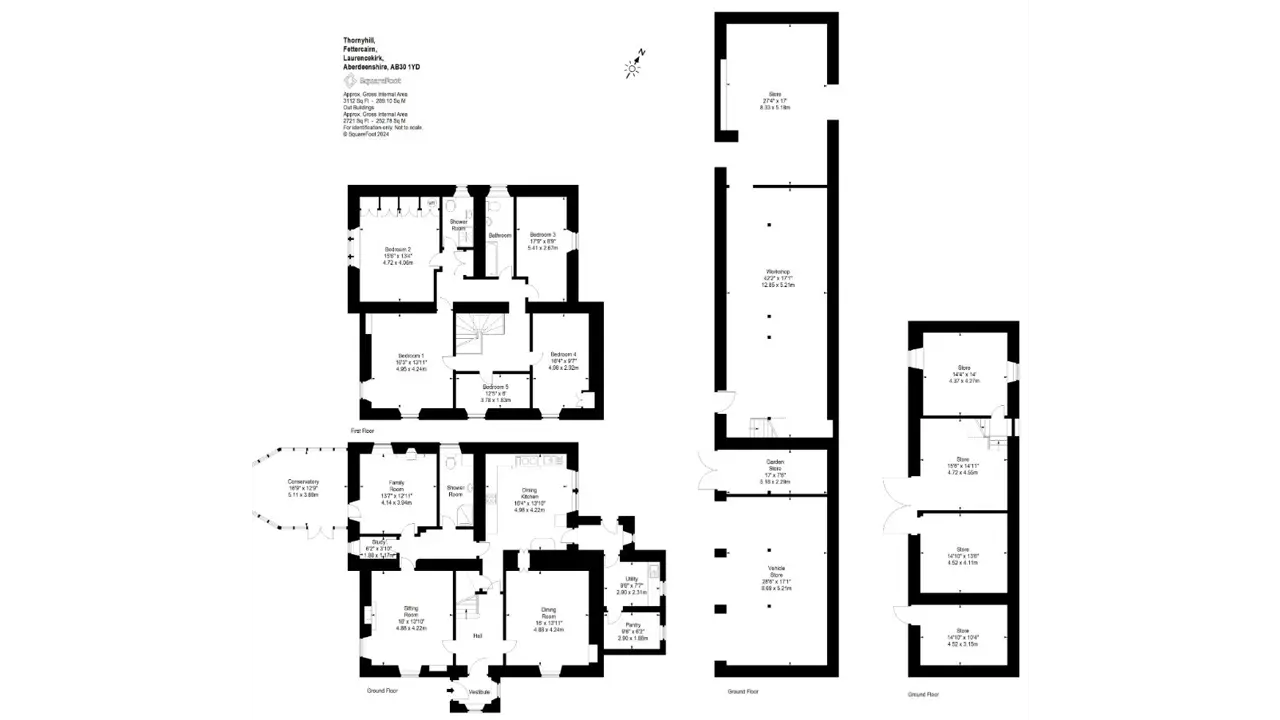 An attractive and substantial stone-built, slate-roofed family home with an original build date of around circa 1850s. Surrounded by mature garden grounds Thornyhill has spacious and well-proportioned accommodation and a lovely combination of period features with modern fixtures and fittings. Gates open onto a drive that leads up to gravelled parking at the side of the house.Both the entrance vestibule and hallway are light and welcoming, with the hallway having a carpeted staircase to the first floor. There are two imposing front reception rooms. The sitting room features traditional ceiling coving, high skirting, sash and case windows and a wood burning stove. The formal dining room is an equally generously proportioned room, with ample space for a variety of free-standing furniture. An inner hallway benefits from a small study room and a well-appointed shower room. The family room is a comfortable and inviting public room with a multi-fuel stove, tiled fireplace and wooden mantel above. A glazed panel door leads through to the exquisite conservatory from where the gardens can be fully enjoyed from every angle and reached via French doors. A large dining kitchen has been fitted with a contemporary range of wall and base mounted units. A large Aga cooker is a lovely addition to the kitchen and gives a traditional feel to the room. Fully fitted with integrated appliances the kitchen has central space for a large dining table and chairs as desired. Leading off from the kitchen a rear vestibule with back door access is a convenient boot room, with large utility space and walk in pantry cupboard.Upstairs is a sizeable landing which gives access to a wealth of versatile accommodation. There are three good sized double bedrooms, all featuring tasteful décor and views over the gardens and countryside beyond. A single bedroom could be utilised as a study or dressing room as desired, and the master bedroom is complete with a range of fitted wardrobes and is well served by an immaculate en-suite shower room. A family bathroom is well placed to service all the bedrooms.The subjects benefit from an oil fired central heating system serving steel panelled radiators. The boiler is located within the ground floor showerroom cupboard. Domestic hot water is provided via this system and supplemented via the thermal store located within a first floor bedroom cupboard. In addition, we understand that solar panels supplement the property’s hot water supply. All relevant documentation in respect of this should be obtained.ACCOMMODATIONGround Floor - Entrance Hall, Living Room, Dining Room, Kitchen, Sitting room, Shower Room, Conservatory and Utility Room.First Floor - Five Bedrooms, Bathroom and Shower Room.Water - MainsElectricity - MainsDrainage - Bodisc SystemTenure - FreeholdHeating - OilCouncil Tax - Band FEPC - DGARDEN GROUNDSThe property benefits from a substantial area of mature and well-maintained garden grounds which surround the property. In total Thornyhill grounds reach around 5 acres. Expansive areas of lawn, established planting and mature woodland provide an idyllic outdoor environment for all to enjoy at Thornyhill. The boundaries where defined are in stone walling, timber fencing, hedging and post and wire fencing. The driveway in leads to a large, gravelled parking area for several vehicles. A paved patio is an ideal spot to enjoy the garden grounds and spot the various wildlife that visit the gardens.OutbuildingsWithin the immediate grounds of Thornyhill there are two large stone-built former steadings. Further outbuildings comprise a range of large agricultural buildings to the rear elevation. The outlying buildings have vehicle access away from the house and round to the rear. There is a wide scope for the development of the existing outbuildings at Thornyhill and they offer any new purchaser a wealth of opportunities. It is worthy of note that photovoltaic panels have been installed on the roof of one of the steading buildings, this supplements the property’s electricity supply and feeds back into the National Grid.