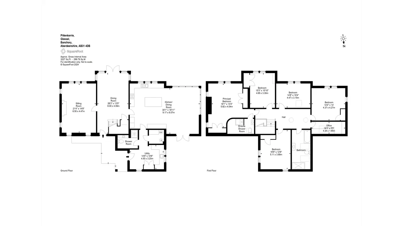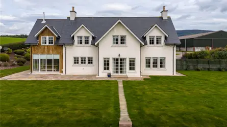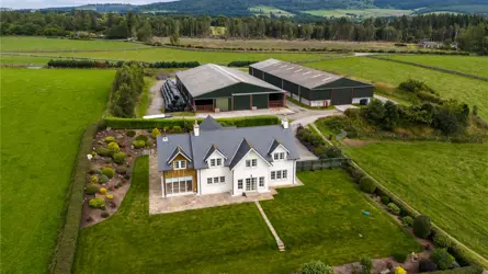 Pittetenkerrie farmhouse is an outstanding executive home occupying a large site of around half an acre and was completed in 2014 to an exceptionally high standard. The house is surrounded by extensive and mature garden grounds and enjoys a south facing position overlooking the surrounding land. The accommodation has been thoughtfully designed with a luxurious, exacting finish to ensure it exceeds the demands for modern family living. Superb open plan living, large windows and endless space creates a wonderful home spanning two levels. Attention to detail is evident throughout including bespoke, solid oak carpentry, designed and crafted in Somerset, which includes the stunning kitchen units, island and oak worktops, bathroom furniture and the boot room units. The bespoke kitchen dresser and solid oak dining table and chairs will remain as part of the sale. The open plan family living space is an impressive feature of the home with floor to ceiling windows and a wood burning stove. The main sitting room has a triple aspect, also with a wood burning stove. The impressive reception hall is of a size that could be a family room, playroom or formal dining area. Most of the 5 double bedrooms on the first floor have built in wardrobes and the master suite has a luxury “Laings of Inverurie” en-suite with walk-in shower and feature curved wall. Being well insulated, the house is heated via an air source heat pump.Ground Floor: Reception hall, sitting room, open plan kitchen/dining/family room, boot/utility room, drying room and shower room.First Floor: Master bedroom with en-suite shower room, double bedroom 2, double bedroom 3, double bedroom 4, double bedroom 5, home office room and main family bathroom.GARDEN GROUNDSPittenkerrie farmhouse sits in impressive garden grounds bordered by mature hedging. The garden is well landscaped with rolling grass lawn and borders filled with mature shrubs, roses, fruit trees and bushes including Cherry, Plum & Apple trees and Blackberry & Gooseberry bushes. The driveway offers parking for several cars.FARM BUILDINGSThe farm buildings extend to a range of modern, portal frame structures as follows:Cattle Court 42m x 22.5m, of steel portal frame construction with centre feed pass, fibre cement roof, vent air cladding, concrete panel walls and concrete floor.Grain Store, 18m x 18m, of steel portal frame construction, fibre cement roof, box profile cladding, concrete panel walls, concrete floor.Dutch Barn, 36m x 18m, of steel portal frame construction, fibre cement roof, box profile cladding and hardcore floor.The water troughs in the cattle court are fed by an underground pipe, being frost free.Adjacent to the farm buildings there is a hardcore base yard, suitable for the storage of machinery and silage bales.THE LANDThe land extends to 76.85 hectares (189.92 acres) and is fenced for the containment of livestock. According to The James Hutton Institute the land is classified as Grade 3(2) with high yields of spring barley and grass being often obtained. Predominantly south facing, the land is in excellent heart having been farmed in rotation with regular applications of dung over many years.Pittenkerrie is situated in a much sought after residential and well-known farming area, being conveniently located off the public road network.Pittenkerrie farmhouse is conveniently located adjacent, but separate from, the range of modern farm buildings. The land, which is ring fenced, extends to 76.85 hectares (189.92 acres). The land is registered with SGRPID for IACS purposes and is situated between 90 and 115 metres above sea level.The land is productive and is capable of growing a wide range of crops, including potatoes, currently growing spring barley and grass land. The land has been managed on a rotational basis for many years, benefitting from regular applications of dung and is therefore in excellent heart.The area is well resourced in terms of agricultural infrastructure, being served by a number of grain merchants, agricultural suppliers and machinery dealers in addition to an active machinery ring. Auction Marts can be found in Huntly and Inverurie with modern abattoirs at Inverurie, Portlethen and Turriff.Primary schooling can be found at Torphins or Banchory, with secondary schooling at Aboyne or Banchory. Banchory boasts a wide range of amenities, including independent shops, supermarkets and services. Field sports can be enjoyed nearby with fishings on the river Dee, in addition to which there are ample opportunities for hillwalking and mountain biking on the surrounding hillsides. The town is well catered for in terms of sporting activities and clubs which include golf, tennis, swimming and rugby.Aberdeen is some 22 miles distant and has a wide range of shopping, entertainment and cultural attractions which one expects from the oil capital of Europe. Private education is available in the city which also has 2 universities. Aberdeen International Airport offers regular domestic and European flights in addition to which there is a train station with regular services to both north and south and overnight sleeper service to London