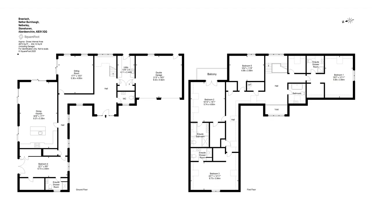 Braericach offers the perfect balance between quiet countryside living and being in easy reach of both Aberdeen City and the charming coastal town of Stonehaven. Sat amongst the beautiful Aberdeenshire countryside, with far reaching views and an idyllic setting, this property offers a wonderful sustainable family home spanning over 2 levels. The property forms part of a small executive development of 6 homes, designed and built by local architects and builders to an exceptional quality and standard. The design & style is sympathetic to the environment and setting and includes slate roof and Scottish larch timber cladding with timber windows throughout, whilst internally there is under floor heating to the ground floor fed from an air source combi boiler.The accommodation comprises an impressive entrance hallway. This delightful open space creates the tone for the rest of the property, a high ingress of natural light floods in. A timber staircase with a full bank of glazed windows behind is an attractive feature. The hallway gives access also to a WC and a generous proportioned utility room, which in turn gives access to the double garage. The sitting room has an abundance of natural light and French doors to the garden maximise not only an inside out feel but create a picture frame to the views beyond. The impressive dining kitchen & family room is a large and wonderful family space. Three sets of sliding Patio doors open out to the garden and there is a beautiful central island with informal dining. Completing the ground floor accommodation is a double bedroom with en-suite, doors opening to the garden and a large, fitted wardrobe. The first-floor galleried landing features a bespoke triangular window which floods the space with natural light. The bright and airy feel is maximised with the light décor, carpeting and glazed panel to the staircase. The master suite is exceptional in size and includes a double bedroom with balcony, fully fitted walk in wardrobe/dressing room and a luxury ensuite bathroom. Bedroom two and three both benefit from an ensuite shower room. A further versatile bedroom has generous proportions and there is another small study room. Completing the accommodation is the contemporary main bathroom.ACCOMMODATIONGround Floor: hall, sitting room, dining kitchen, bedroom 4, en-suite shower room, utility room, WC.First Floor: hall, bedroom 1, en-suite, bathroom, bedroom 5, bedroom 2, en-suite bathroom, bedroom 3, en-suite shower room, study room.Water -Mains Electricity - MainsDrainage - Private WasteTenure - FreeholdHeating - Air Source/Oil CombiEPC - BGARDENBraeriach sits in generous garden grounds enclosed by fencing. The garden is presently laid to lawn, creating a blank canvas for any buyer to create their own beautiful garden grounds. The tarmac driveway provides off street parking and leads to the integral double garage. The garden views stretch over to the countryside and beyond.Braeriach offers a great opportunity to reside in a peaceful and tranquil rural setting with all the advantages of the country lifestyle, yet only a few miles from the city centre. Located only 6 miles away from the AWPR (Aberdeen Wester Peripheral Route), giving extremely easy access to both the North & South of Aberdeen. Given the property’s location a wide range of leisure pursuits are close to hand including golf courses at Deeside and Peterculter, Salmon and Sea Trout fishing on the River Dee and scenic country walks including those in the nearby Forestry Commission Woodlands. The property itself is set in the catchment area for Lairhillock Primary School and Mearns Academy while there are also a number of private schools in the city including Robert Gordon’s College, St Margaret’s School for Girls, Albyn School and the International School Aberdeen in Cults.
