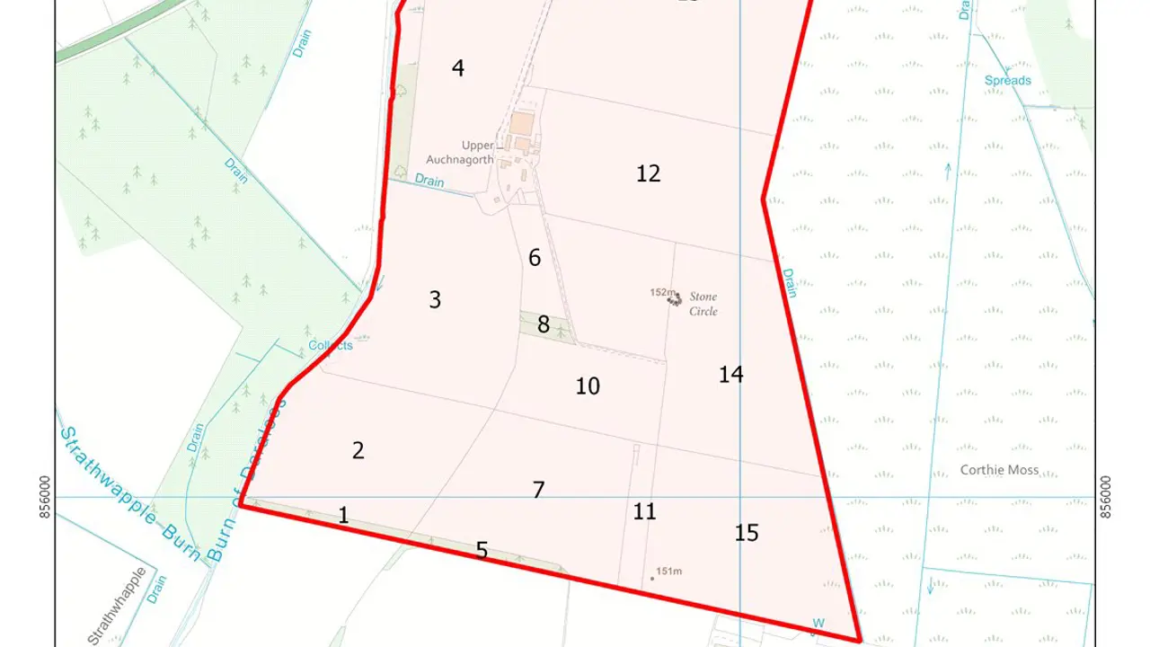 Upper Auchnagorth Farm is located in central Aberdeenshire, an area renowned for its productive and fertile land. The holding extends to approximately 56.82 hectares (140.4 acres), excluding roads, yards, and buildings, and benefits from excellent access via the public road network. An internal farm track system provides convenient access to all fields.FarmhouseGround FloorDining Room/ Kitchen 4.37m x 4.37m, Shower Room, Hall, Porch, Sitting Room 6.07m x 4.67m, Bedroom 4.75m x 3.33m.First FloorBedroom 4.39m x 4.01m, Bathroom, Bedroom 4.83m x 3.07m, Study 2.97m x 1.93m, Bedroom 4.83m X 3.28m.The farmhouse has recently benefited from an extensive refurbishment and extends to 162m2, being double glazing with Oil Central Heating. The Council tax band is C with the EPC rating being G. Farm BuildingsUpper Auchnagorth is well equipped with a large steel portal frame general-purpose shed, providing excellent versatility for various agricultural uses.General-Purpose Shed – 30m x 30m, of steel portal frame construction, partially concrete and partially hardcore floor, box profile roof and cladding.Traditional Steading - of stone construction lies adjacent to the farmhouse.LandThe land extends to 56.82 hectares (140.4 acres) comprising 15 land parcels. All the fields are currently in grass, being partially fencing. The land is classified as Grade 3(2) according to the Hutton Institute. The land is well-suited to a range of agricultural uses, including livestock production, rotational grazing, and arable cropping.The land is registered with SGRPID for IACS purposes and is situated between 110 and 150 metres above sea level. To the north of Field 13 lies a disused quarry with potenial for further extraction. Interested parties are encouraged to conduct their own nvestigations into the mineral potenial of the farm.A stone circle lies to the west of Field 14