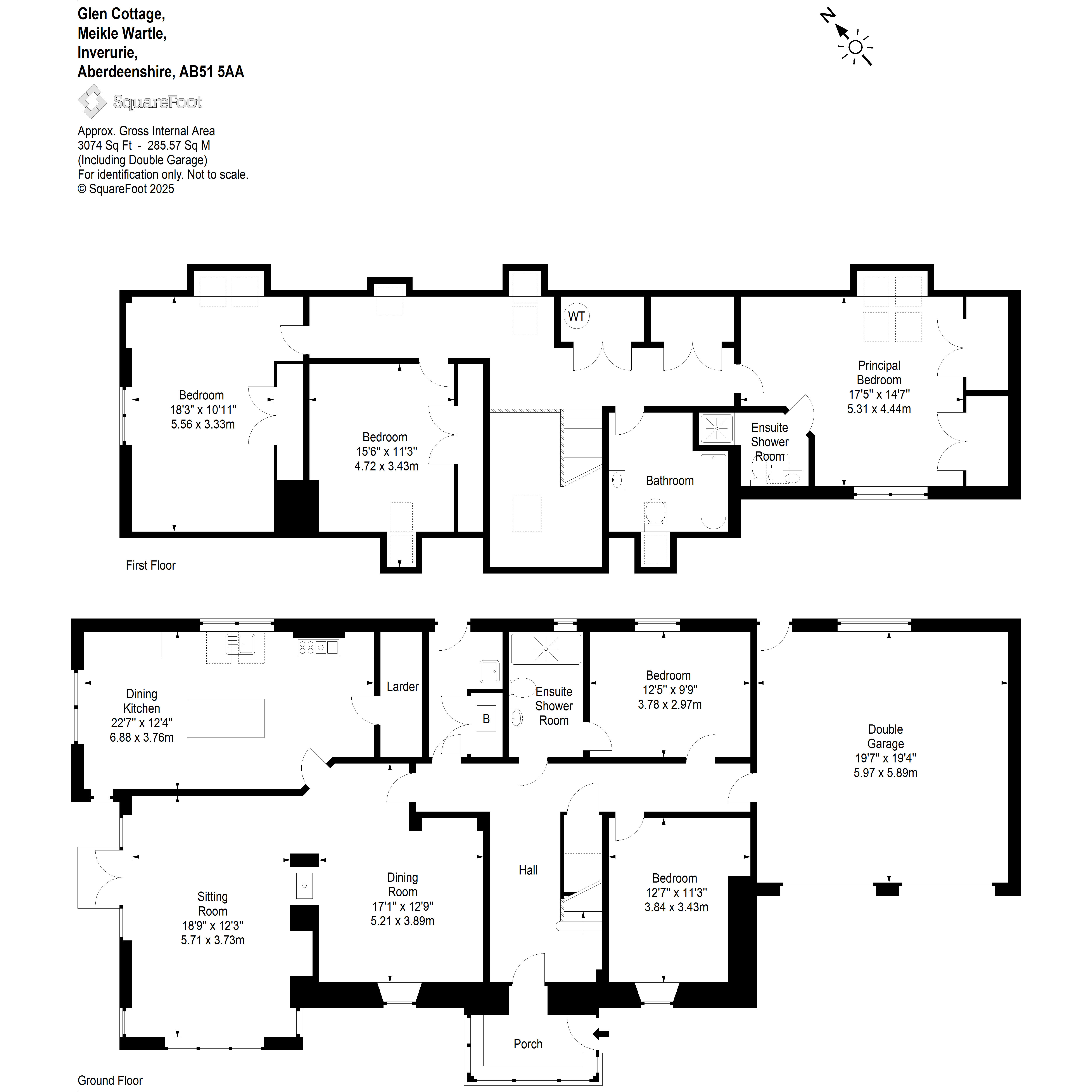 Glen Cottage is an impressive, detached family home, sitting in the heart of the popular village of Meikle Wartle, only a few miles from the bustling town of Inverurie. Built around 2010 in a Scandinavian inspired style, Glen Cottage occupies a central village location yet remains tucked away, providing excellent privacy and generous outdoor space. The rolling fields border the property to two sides, creating a perfect countryside setting with open views, whilst the extensive garden grounds surround the entire house with mature trees & shrubs. The garden truly comes into its own in the spring and summer months.Glen Cottage has been consistently improved by the present owner and offers an immaculate & extremely well maintained family home. The accommodation extends over two floors, and given the scandi design, there is a superb amount of natural light from the carefully placed windows, combined with clean simple lines and crisp white décor. Enter from the front porch into the main entrance hall. This entrance has beautiful solid oak flooring that continues throughout the ground floor. The sitting room is a most striking room with two distinct windows. Positioned on the left side of the room are tall windows set into the angled ceiling and facing the garden are full height french doors with side windows. Adjacent to the sitting room is the dining room. These two adjoining rooms are connected by a shared, double sided wood burning stove, allowing the fire to be enjoyed from both rooms simultaneously. The modern kitchen is exceptionally spacious and particularly bright with lower kitchen units and the large central island offering plenty working, storage and informal dining space. A walk in larder offers practical & organised kitchen storage and at the far end of the kitchen there is space for both dining or a family seating area. Adjacent tothe kitchen is a useful utility room with door to the garden. A spacious double bedroom is located to the rear, with access to an ensuite shower room. This bespoke, contemporary shower room also has access from the main hall. Completing the accommodation to the ground floor is the fifth double bedroom, which would also make a fantastic home office space. Continuing to the upper level, the main landing is a generous and bright space, perfect for occasional furniture, and has two separate storage cupboards. The principle bedroom is very spacious with two built in wardrobes and an attractive ensuite shower room. Bedroom two is an equally spacious double bedroom, also with built in double wardrobes and a lovely outlook to the side. The final bedroom is a double room with built in storage and completing the accommodation is the large family bathroom.ACCOMMODATIONGround Floor: Entrance porch, sitting room, dining room, dining kitchen with larder and separate utility room. Bedroom 4 with ensuite shower room & bedroom 5First Floor: Principal bedroom with ensuite shower room, bedroom 2, bedroom 3 and main family bathroom. GARDEN GROUNDSGlen Cottage sits in mature & generous garden grounds which fully surround the house. Bound by open countryside on two sides, this garden offers shelter, privacy and a wonderful outdoor space for families to enjoy all year round. There is an array of mature and colourful plants & shrubs that come into their own in Spring & Summer including three varieties of mature apple trees and a selection of plum trees., creating a truly special outdoor space. A driveway provides plenty parking and gives access to the integral double garage.SERVICES, COUNCIL TAX AND ENERGY PERFORMANCE CERTIFICATE(S)Water Mains Electricity Mains Drainage MainsTenure Freehold Heating Ground source heat pumpCouncil Tax Band GEPC Band CSITUATIONGlen Cottage sits in the popular village of Meikle Wartle, just 6 miles from Inverurie. Inverurie offers a wealth of amenities including excellent shopping facilities, health centre, hotels, swimming pool,sports centre and golf course. Primary school education is believed to be provided at nearby Rayne North School whilst secondary education is believed to be at either Inverurie or Oldmeldrum. The centre of Aberdeen approximately 24 miles provides all the leisure, recreational and entertainment facilities expected from a city. It also provides good transport links with a mainline railway station and is host to an airport providing both domestic and international flights.