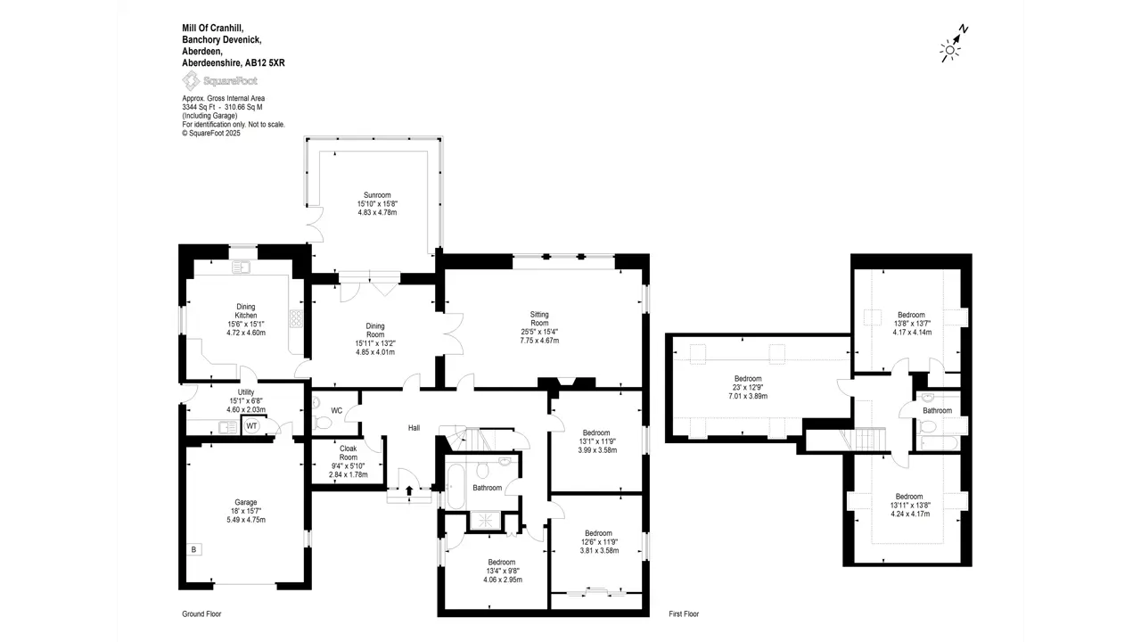 Mill of Cranhill is a superb, detached property enjoying a private elevated position in the desirable Banchory-Devenick area of Aberdeen City. The west side of the house is a former mill with refurbished Mill Wheel and has been exceptionally well extended over the years to create a home that offers flexible space and versatility over two floors. Sat in around 0.48 of an acre, the grounds are generous with a large south facing garden and of particular note is the incredible open views across the surrounding countryside towards the city & north sea.The entrance hall is a generous, welcoming space and has a walk-in cloak cupboard, perfect for coats, boots and storage. Adjacent is a handy cloakroom. The main sitting room is a beautiful room with open views over the garden grounds and beyond and has a gas fire. Double doors lead through to the formal dining room and from here, steps lead down to the sunroom. Bi-folding doors between the dining room and sunroom give the choice to have an open flow or as separate living space. The sunroom is a wonderful addition to the home, with surrounding windows capturing those incredible views across the city towards the coast. Double doors open out to the garden and there is under floor heating. The family dining kitchen has a double outlook and is well equipped with painted solid oak ‘Drumoak’ kitchen units, plenty worktop space, plus room for a generous family dining table. From the kitchen you access the useful utility room, which in turn provides access to the garden and garage. On the ground floor there are three double bedrooms. The first is a generous room with picture window and would make a pleasant home office. The second double bedroom has extensive built in wardrobes, and the third is equally spacious in size. Adjacent to these bedrooms is the beautiful main family bathroom, with spa bath and separate shower unit.Continuing upstairs there are two equally spacious double bedrooms, both with velux style windows to the front & rear. Located between the two bedrooms is a bathroom with white three-piece suite. Completing the accommodation is the versatile 6th bedroom. This is a large room which a huge amount of flexibility. It has proven ideal as a child’s playroom, tv room or that extra bedroom space and could even be used as a home office or hobby room. Mill of Cranhill is fitted with an alarm system that can be controlled remotely.ACCOMMODATIONGround Floor: Entrance hall, cloakroom, sitting room, dining room, sunroom, dining kitchen & utility room. Three double bedrooms and bathroom.First Floor: Two double bedrooms, bathroom and further large bedroom/sitting room.GARDEN GROUNDSMill of Cranhill sits in around 0.48 of an acre offering a superb amount of outdoor space. The house is surrounded by grass lawns, with traditional stone dyke walls and bound by mature hedging and shrubs. There is a sheltered patio area to the rear of the house, ideal for outdoor dining, and a further perfectly placed patio area to the front capturing the outstanding views towards the city. The private tarred drive, leading from the track, leads up to the house and there is plenty space for parking to the side and rear with access to the 1.5 integral garage. Timber garden shed.SERVICES, COUNCIL TAX AND ENERGY PERFORMANCE CERTIFICATE(S)Water MainsElectricity MainsDrainage Septic TankTenure FreeholdHeating Oil Heating with LPG for Cooker & FireCouncil Tax Band EEPC Band ESITUATIONBanchory-Devenick is located on the south side of the River Dee and surrounded by beautiful countryside and woodland walks, yet only a short distance from the centre of Aberdeen City. Education is catered for in the area, including a highly reputable primary school, and a selection of other amenities can be found at Bridge of Dee Retail Park, a short walk away. There are several excellent private schools within easy commuting distance including Robert Gordon’s College. St Margaret’s School for Girls and Albyn School, whilst the International School of Aberdeen is also very accessible. Robert Gordon University and many recreational facilities including Paul Lawrie Golf Centre are close by and the industrial estates to the south of the city are easily accessible including Portlethen, Altens and Tullos. The A92 is minutes away giving access to both the North & South of Aberdeen and Aberdeen International Airport can be reached in around 20 minutes by car. Union Street in the city centre with its wide range of shops, restaurants, coffee shops, cinema and bars are a short 5 miles from Mill of Cranhill and provides all the leisure, recreational and entertainment facilities expected from the oil capital of Europe.