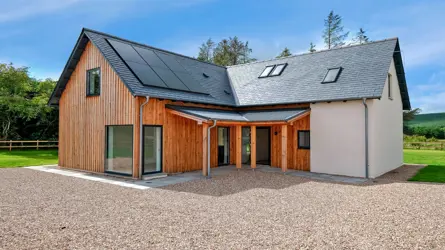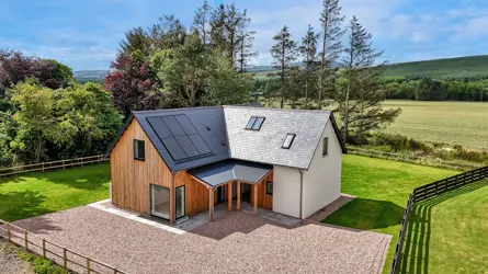 Sat in a cluster of executive homes in rural Aberdeenshire, we offer for sale this brand-new architect designed luxury home. Of a contemporary style and completed to a high specification, this family home is energy efficient and has been designed for modern living and family life. This home features a layout thoughtfully created to suit a growing family, and the design sympathises with its countryside setting whilst maximising natural light, views and space. The combination of stone, slate, render and larch cladding complements the clean architectural lines while large glass features enhance the bright & expansive living spaces. All kitchens and bathrooms are from Laing’s of Inverurie.The larch clad canopy with a corrugated steel roof offers a functional entrance that is both practical and stylish. The main entrance hall has the stairs leading to first floor and leads through to the main open plan living space. The contemporary ‘Laing’s of Inverurie’ luxury kitchen includes a large island which defines the kitchen from the family sitting & dining area. Perfectly placed windows capture the surrounding countryside, and this space can be utilised in a way to suit every family. Continue through to the stunning garden room, with vaulted ceiling and doors opening out the gardens, whilst the snug could also be used as a playroom or home office. From the kitchen there is also a useful utility room and plant room. Also on the ground floor is a spacious double bedroom and shower room.On the first floor you have a master bedroom with built in wardrobes and en-suite shower room. Bedroom two and bedroom 3 are equally spacious and completing the accommodation is the main family bathroom with free standing bath.ACCOMMODATIONGround Floor: Entrance hall, open plan kitchen / sitting & dining room, garden room & snug / home office. Bedroom 4, shower room and utility room.First Floor: Master bedroom with ensuite shower room, bedroom 2, bedroom 3 & Bathroom.GARDEN GROUNDSSurrounded by the beautiful Aberdeenshire countryside and enjoying the open views, this garden is generous in size, mostly laid to lawn and has a sheltered patio accessed from the garden room. A private driveway provides ample parking space, with the option to add a single garage.SERVICES, COUNCIL TAX AND ENERGY PERFORMANCE CERTIFICATE(S)Water PrivateElectricity MainsDrainage Septic TankTenure FreeholdHeating Air Source Heat PumpCouncil Tax To be determinedEPC Band BMechanical Ventilation with Heat Recovery & Solar PanelsSITUATIONThe subjects lie in a small cluster of houses in the Aberdeenshire countryside. Inverurie is located some 7 miles from the property and offers a wealth of amenities including excellent shopping facilities, health centre, hotels, swimming pool, sports centre and golf course. Primary school education is believed to be provided at nearby Rayne North School whilst secondary education is believed to be at either Inverurie or Oldmeldrum.The centre of Aberdeen approximately 24 miles provides all the leisure, recreational and entertainment facilities expected from a city. It also provides good transport links with a mainline railway station and is host to an airport providing both domestic and international flights.