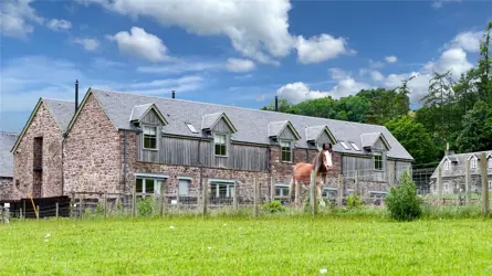 SITUATIONSitting in a dramatic, south-facing position overlooking the Strathearn Valley, Blairmore Farm lies in a highly sought-after Perthshire tourist location off the A85 Perth to Crianlarich road to the east of the market town of Crieff. Blairmore Farm is an established and popular tourist base from which to explore HighlandPerthshire and the countryside of central Scotland with an enviable range of nearby attractions and leisure activities combined with fantastic connectivity with the trunk road network. It is notable that all of Edinburgh, Glasgow, St. Andrews, Gleneagles, Loch Lomond, the Cairngorms, Glenshee Ski Centre and the House of Bruar are within a 90 minute car journey. This gives Blairmore Farm such an important edge as the home of a short-term-let business, with the ability to attract customers from far and wide, all year round.THE OPPORTUNITYBlairmore Farm comprises a well-appointed principal owner’s house that sits within about 60 acres of south facing, productive farmland with six holiday cottages which have been impressively converted from traditional farm buildings between 2015-2018. These composite parts of Blairmore Farm combine to form an extremely attractive lifestyle property that will enable a new owner to live and work in an incredibly desirable location. The Blairmore Cottages are already recognised as being able to host a leading holiday accommodation enterprise but there is also the exciting opportunity to build a new business that will take Blairmore Farm into its next chapter under new ownership and management.BLAIRMORE FARMHOUSELying at the centre of the farm and orientated to provide exceptional South-facing views over the Strathearn Valley, Blairmore Farmhouse is an attractive, stone-built, principal dwelling house. The house was formerly two semi-detached cottages that were knocked through and renovated in 2016-2017 to form the existing accommodation which is centred around a large open plan kitchen/dining/sitting room that is perfect for modern entertaining and suits a relaxed, contemporary lifestyle. To the rear of the property is an office, commercial grade kitchen and laundry that are capable of administering the administrative, catering and laundry requirements of the existing short-term let business. Upstairs there is a master bedroom with ensuite bathroom and dressing room, two double bedrooms with ensuite bathrooms and a further two bedrooms with a ‘jack and jill’ family bathroom. There is a compact lawn garden to the front of the property.BLAIRMORE HOLIDAY ACCOMMODATIONNestled at the bottom of the hill and surrounded by open countryside, the Blairmore Cottages are found within a substantial stone-built steading conversion which has been beautifully renovated to form 5-star holiday accommodation whilst retaining its identity as a fine example of local agricultural architecture. The 6 holiday cottages have been finished to an incredibly high standard with a considered layout that allows for efficient management practices whilst ensuring that each cottage retains its own identity, privacy and individual appeal.THE LANDThe land at Blairmore sits on the northern edge of the fertile Strathearn Valley and rises quite steeply to give some magnificent views at its northern extent. The land is all south facing and extends to about 59.98 acres (24.28 hectares) and is mostly down to grass however there is about 7 acres of mixed woodland which straddles the access road down to the farm. The land is predominantly productive Grade 3.1 land with some 3.2 and 4.2 areas towards the higher ground to the north. The fields are stock fenced throughout with good vehicular access and access to water in all but two paddocks. The land is of a scale which would offer any purchaser the opportunity to engage in a small-scale agricultural, equestrian or agri-tourism enterprise whilst providing plenty of space for the short-term-let business to diversify into pods, shepherds huts or other glamping accommodation, if desired and subject to gaining the necessary consents.
