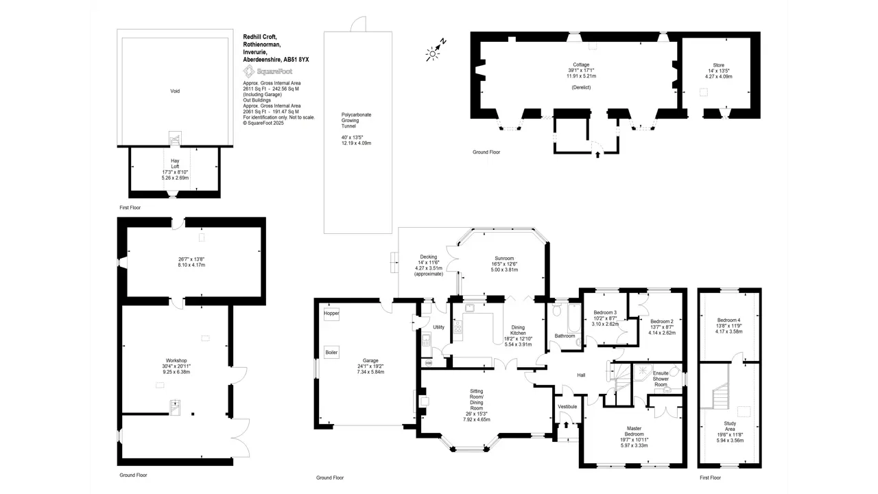 Set in the heart of the Aberdeenshire countryside, just north of the village of Rothienorman, Redhill Croft is a beautifully maintained detached home that offers a rare opportunity to enjoy a peaceful, self-sufficient lifestyle surrounded by nature. The property sits within around 3 acres of private land and benefits from complete seclusion while still being within easy reach of the village of Rothienorman and the larger town of Inverurie, which lies just fourteen miles to the south.Originally built around thirty years ago, the home offers spacious and flexible accommodation across two levels. On the ground floor, a welcoming entrance vestibule leads into a generous living room, where a cosy wood-burning stove creates a warm, inviting atmosphere. The heart of the home is the family-sized dining kitchen, which features a range of wall and base units topped with granite work surfaces and incorporates a composite sink. Adjacent to the kitchen is a practical utility room with additional storage and access to the outdoors. The living space flows naturally into the superb sun lounge, perfect for relaxing in the evening light, with French doors opening onto a raised deck that offers expansive views across the grounds.The ground floor also hosts the master bedroom, complete with its own en-suite shower room, offering privacy and comfort. Two further double bedrooms, both with built-in wardrobes, and a well-appointed family bathroom complete the ground floor. Upstairs, a landing space currently serves as a versatile home office or study area and leads to a spacious fourth double bedroom, ideal for guests or additional family use.Adding to the unique appeal of Redhill Croft is the presence of a derelict croft house located on the southern edge of the site. There is also a traditional steading outbuilding, offering further storage or development potential.Located in a mixed residential and agricultural area, the property enjoys the benefits of rural life while maintaining practical connections to modern amenities. The surrounding views are unspoiled, and the environment remains peaceful and private.Redhill Croft is far more than just a house it is a lifestyle opportunity for those seeking space, sustainability, and a deeper connection to nature. With its generous accommodation, rich organic grounds, and the potential for future development, this property offers a truly unique proposition in one of Aberdeenshire’s most idyllic rural settings.ACCOMMODATIONGround floor - Entrance vestibule, living room, sun lounge, dining kitchen, utility room, bedroom 1 with en suite shower room, 2 bedrooms and bathroom with WC.First floor - Bedroom and landing.SERVICES, COUNCIL TAX AND ENERGY PERFORMANCE CERTIFICATE(S)Water - PrivateElectricity - MainsDrainage - Septic tankTenure - FreeholdHeating - Wood pellet boilerCouncil Tax - BandEPC - DGARDEN GROUNDSExternally, the home benefits from a private driveway providing ample parking and access to an integral double garage. The grounds themselves are a standout feature, reflecting the current owner’s commitment to organic and sustainable living. The land has remained completely free from chemicals and artificial fertilisers for the past four years, enriched only by woodchip and comfrey. A large 4-metre by 12-metre Polycrub, manufactured in Shetland, provides an ideal environment for year-round vegetable cultivation. Nearby, there is a sizeable vegetable growing plot with raised beds, alongside a potential pasture area suitable for small-scale livestock or further planting.A diverse range of trees and edible plants have been introduced across the grounds, including heritage Scottish apple trees, plum, cherry, sea buckthorn, juneberry, and hazel. Berries such as raspberries, blackcurrants, gooseberries, strawberries, and blueberries flourish throughout, alongside perennial vegetables like Daubenton kale. The land is bordered by thoughtfully planted hedgerows of hawthorn, elderflower, blackthorn, field maple, dogwood, and gorse, with a Rosa canina hedge and naturally established wild cherry and Scots pine adding to the site’s biodiversity. Wildlife has been actively encouraged, creating a rich and balanced ecosystem within the gardenRedhill Croft is located within a beautiful countryside location, which is ideal for walking, cycling, fishing and with an abundance of golf and sports activities including Inverurie golf club. Castle and Whisky Trails are within easy reach and the largest livestock auction mart in Europe is only a short distance away. The very popular town of Inverurie is a short drive away offering a wide selection of shops, bars, coffee shops, restaurants and Inverurie train station. The property is located for excellent primary and secondary schooling and nearby Inverurie provides an excellent health centre, hospital, swimming pool and community centre. Aberdeen City is some 26 miles, and provides all the leisure, recreational and entertainment facilities expected from the city centre. It also provides good transport links with a mainline railway station and is host to an airport providing both domestic and international flights.