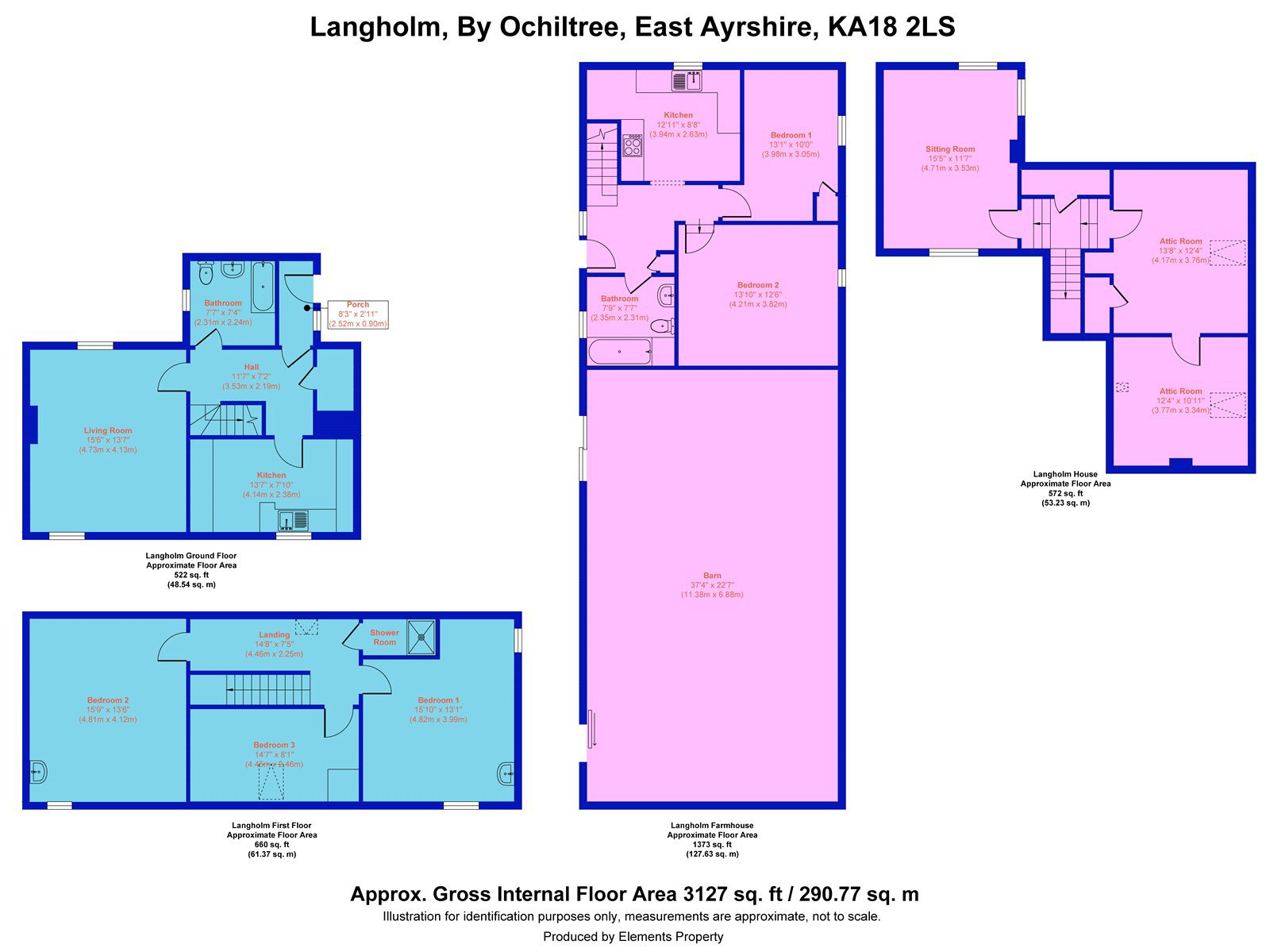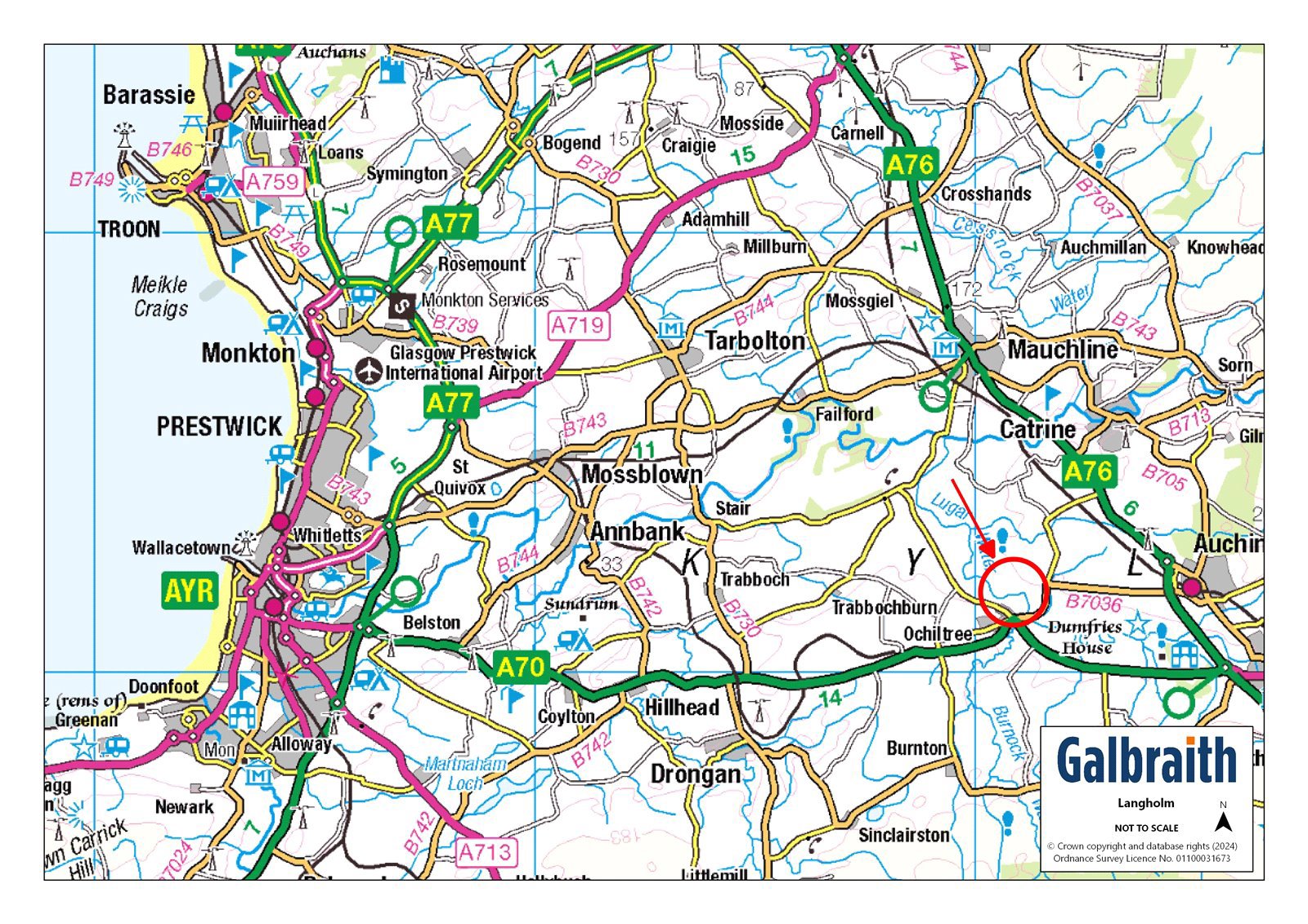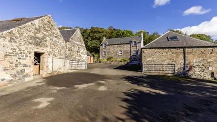 Langholm is a charming traditional farmhouse with adjoining cottage together with a useful range of stone outbuildings in a very picturesque and private riverside location. It is a short distance from the villages of Ochiltree (2 miles) and Mauchline (5 miles) which have primary schooling, local shops and other services. Secondary schooling is available at Auchinleck (about 3.5 miles). The County Town of Ayr is about 13 miles distant with an excellent range of amenities and facilities including cinema, hospital, a wide range of shops and supermarkets and a well regarded private school. Langholm is an easy drive via the A70 trunk road whilst Glasgow is about 37 miles to the north via the M77. There is a railway station at Auchinleck, with regular services to Glasgow and beyond. Glasgow Prestwick Airport and Glasgow Airport with regular international flights are about 17 miles and 40 miles respectively.Ayrshire is renowned for its range of outdoor pursuits. There are a number of world famous golf courses including Royal Troon, Turnberry and Prestwick Golf Club. The racecourse at Ayr provides regular fixtures. Excellent yachting facilities are available at the marinas in Ardrossan, Troon, Largs and Inverkip.At Auchinleck Estate there are enjoyable riverside walks to Wallace’s Cave and Peden’s Cave and the River Ayr gorge walk at Mauchline is close by. Auchinleck Mansion House, was built by Lord Auchinleck, James Boswell in the late 1700s. The Scottish classic-style mansion was designed by Robert Adam, one of Scotland’s most famous architects, there is a popular coffee shop (Boswell’s Coach House) within the Estate grounds. Dumfries House Estate (about 4 miles) is one of Britain’s most beautiful stately homes with an outstanding collection of 18th century furniture, beautiful walled gardens and coffee house.Langholm provides a rare opportunity for a purchaser seeking a delightful rural location with a beautiful riverside setting.Built in 1897 of stone and slate, Langholm is a most attractive traditional farmhouse with useful stone buildings in a private riverside location with lovely views. The house has been divided into two presently offering flexibility of use for additional accommodation for multi-generational living or for guests, or holiday let accommodation.Langholm House is an attractive farmhouse requiring some upgrading and modernisation. Langholm House has living room, kitchen, 3 bedrooms, bathroom and a separate shower. The cottage (named, Langholm Farm) has a separate entrance with dining kitchen with integrated electric oven and hob and breakfast bar, 2 bedrooms and bathroom on the ground floor, with sitting room on the first floor with delightful views towards the river Lugton and wood burning stove, a further set of stairs leads to 2 attic bedrooms.There is ample parking to the rear of the farmhouse in the courtyard. Langholm is complemented by useful adjoining stone and state outbuildings. The adjoining barn has the potential to convert into further living accommodation subject to the necessary planning consents There is an area of garden with both properties.There are about 8.35 acres of woodland and riverbank grazings, together with salmon fishing rights on the Lugar Water which has at least one good pool.OUTBUILDINGSThere are useful stone and slate farm buildings forming a fine south facing courtyard:Barn: About 11.36m x 6.95mCoal store: About 5.03m x 3.36mStable: About 7.0m x 5.13mBarn 2: About 10.26m x 5.18mOpen garage: About 5.06m x 4.86mTractor shed: About 10.83m x 5.42mThere are two grazing paddocks extending to 2.72 Ac in total. The paddock by the river is about 1.32 Ac and the top paddock is about 1.40 Ac. The land is principally classified Grade 3(2) and 4(2) by the James Hutton Institute.The neighbouring shed and adjoining arable field is being retained by the seller.There is a very small chance of flooding in any one year according to SEPA (between 0.1% and 0.5%). The property has not flooded during our client’s ownership.The road is owned by the neighbouring farm and Langholm has a right of access over the farm road.There is a small brick building owned by SEPA on the riverbank.There are salmon fishing rights extending to about 0.28 miles along the River Lugar with at least one good pool. The Fishing Club currently rent the fishings for £20.00 per annum both sides of the river.