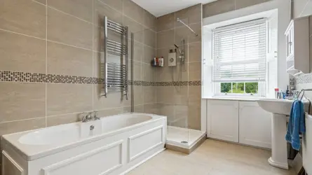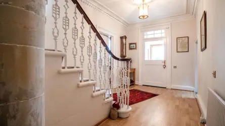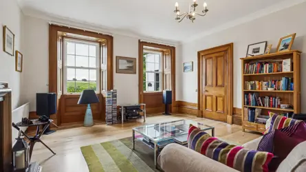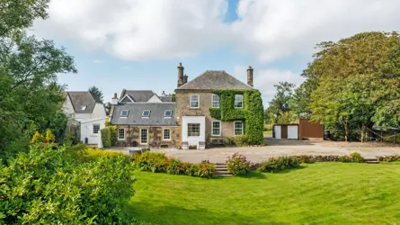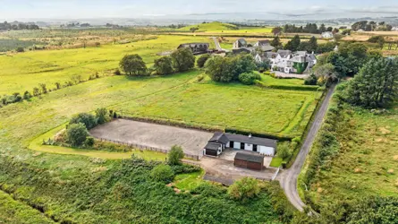 Hazelbank House is a beautifully appointed detached Georgian country house with superb equestrian facilities set in a peaceful rural situation yet very well connected location with splendid views across open countryside, boasting a purpose-built stable block, outdoor riding arena and adjoining paddocks. South facing with a wonderful open outlook across its own land, Hazelbank House is situated within a cluster of country properties about 2.5 miles north of Dunlop in Ayrshire. It is some 16 miles from Glasgow City Centre which is easily accessible via the A736 Glasgow/Irvine Road. The popular conservation village of Dunlop has a post office, village shop, bakery and restaurant, an excellent primary school and railway station with regular services to Glasgow. The house is situated close to the popular town of Stewarton (6 miles) with primary and secondary schooling and the private schools of Belmont House and Hutchesons’ are within easy travelling distance. Prestwick and Glasgow Airports are easily reachable being 24 and 12 miles distant respectively. Ayrshire is renowned for its golf courses which include Turnberry, Royal Troon and Prestwick. The Morris Equestrian Centre is about 10 miles distant. Yachting facilities can be found at the marinas in Troon, Ardrossan and Largs and some of Ayrshire’s most beautiful beaches are close by at Troon, Ayr and Irvine. Hazelbank House dates from 1826 and is built over two storeys with a single storey extension, of stone under a pitched slate roof, it was the original farmhouse for Hazelbank Farm. It has substantial and flexible accommodation including entrance hall, kitchen/dining/living area, living room, utility room, office, two bedrooms and shower room on the ground floor and three bedrooms and a bathroom on the first floor. There is a sheltered and private garden with beautiful lawns and grounds, an outdoor riding arena, 7 stables, tack room and hay store and about 9.89 acres of grazing land with stunning rural views.Internally the property comprises well-proportioned rooms, the entrance vestibule leads through a half-glazed door to an impressive and welcoming entrance hall with stone pillar, oak flooring, ornate cornicing and ceiling rose. The bright living room also has oak flooring, sash and case windows, original deep skirtings and shutters and a stone open fireplace. The heart of the home is the stunning kitchen/dining/living room with vaulted beamed ceiling, tiled flooring with under floor heating and a range of fitted base and wall units and Quartz worktops, butler sink with Quooker tap, integrated dishwasher, AEG fridge/freezer, electric Rangemaster with double oven, grill and 6 ring gas hob. The living area has a Jotul multi fuel stove set in stone backdrop with slate hearth and oak mantel. There is a glazed door to the gardens and patio area from which the fabulous views can be fully appreciated. The office is fitted with half height wood panelling. The utility room has tiled flooring, plumbing for a washing machine, tumble drier and additional fridge and freezer if required. There is access to the garden via a porch from the utility room. The single storey extension is from the kitchen where there are two double bedrooms and a fully tiled shower room with circular shower enclosure, w.c., wash hand basin, underfloor heating and heated towel rail. There is access to a small enclosed garden from this wing of the house making it suitable as a self-contained annexe if required. A beautiful sweeping staircase rises from the hall to the first floor with ornate cornicing and ceiling rose. There are three spacious double bedrooms, the master having dual aspect windows. The bathroom is fully tiled with bath, separate shower cubicle, w.c., wash hand basin, two heated towel rails and benefits from electric underfloor heating. The property is fully double glazed and benefits from ample cupboard space.GARDEN (AND GROUNDS) Gates lead to the extensive gravel drive to the front of the property where there is parking space for several cars. The extensive well-established and beautifully maintained gardens with breathtaking views are bounded by a partially walled garden and an evergreen laurel hedge, there is an area of lawn, pathways, mature trees and shrubbery providing year- round colour. The patio has steps leading down to the formal lawn and beyond to the grazing land. LANDThere are 9.89 acres of grazing land over two paddocks with the Glazert Burn running through both fields, there is also a small area of mixed woodland and a field shelter. There is access to the land from the gardens and a gate from the track. The land is between 185m to 195m above sea level and classified as a mix of 4(2) and 5(1) by the James Hutton Institute. STABLESThe superb u-shaped courtyard stable block with clock tower comprises 7 stables in total and hay store. 5 stables (3: 12’ x 12’ and 2: 14’ x 13’) of breezeblock and 2 stables (12’ x 12’), timber framed, 4 automatic drinker bowls, secure insulated tack room (11’9” x 10’6”) with saddle racks and bridle hooks and storage. The equestrian facilities benefit from outside water, electricity, a concrete yard area and parking for a number of vehicles and horse boxes. Adjacent to the stables is the all-weather outdoor riding area (about 42m x 22m) with sand and rubber surface and large mirror (2.4m x 1.2m). The stables and riding arena can be reached by a separate access from the main house.OUTBUILDINGSThe outbuildings include a lean-to Greenhouse (attached to the house) currently used as a log store. An insulated timber shed which houses the boiler and a stone built bike store.ACCESS/THIRD PARTY RIGHTS OF ACCESS/ SERVITUDES ETCThere is shared maintenance over the drive to Hazelbank House between each of the 5 residents marked A-B on the site plan. Hazelbank House has sole maintenance for the road from the House leading to the small bridge beyond the stable block marked B-C on the site plan.DIRECTIONS
