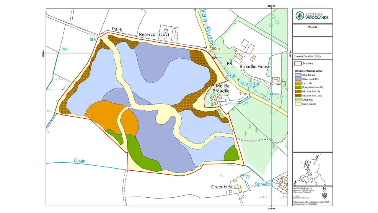 Mosside Wood is situated about 1 mile north west of Dalry, North Ayrshire and about 28 miles south west of Glasgow.Mosside Wood is a productive woodland extending to about 20.75 Ha (51.27 acres). The woodland was established in 2005. The plantation comprises Sitka Spruce, Larch, mixed broadleaves and open ground. The woodland is well stocked, comprising of Sitka Spruce from seed based improved stock, specifically chosen for stem straightness, superior volume/diameter per tree and an increase in wood density. The plantation can be accessed off the Fairlie Moor Road, Dalry and the woodland is on the west of this public road.According to the Macaulay Land Use Research Institute, the underlying land at Mosside falls within Category 4.2 in terms of agricultural production. The land sits between 81.8 metres and 98.0 metres above sea level.Further details are available from the selling agents.Mosside Wood is offered for sale as a whole.HISTORIC SCOTLANDNo parts of the property are subject to any historical or scheduled monuments.ACCESSConditional Planning Permission has been granted to provide gated vehicular access into the woodland from the public road.DIRECTIONSFrom Glasgow, take the M8 towards Glasgow Airport, at Junction 28a take the A737 towards Irvine. Continue through Beith and on to Dalry. At Hillend roundabout, turn right onto Kilwinning Road and turn left onto Vennel Street, then turn left joining the B780 (Kilbirnie/West Kilbride/Adrossan). After the cemetery turn right onto Wingfaulds Avenue, proceed along this road onto the Fairlie Moor Road for about 0.59 miles and Mosside woodland is then on the left.KA24 5HPWHAT3WORDSTo find this property location to within 3 metres, download and use What3Words and enter the following 3 words: duty.packets.disbelief