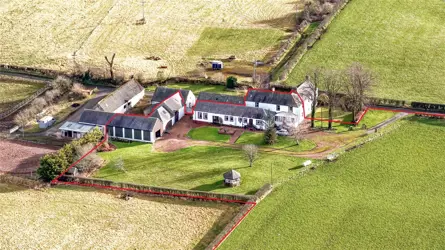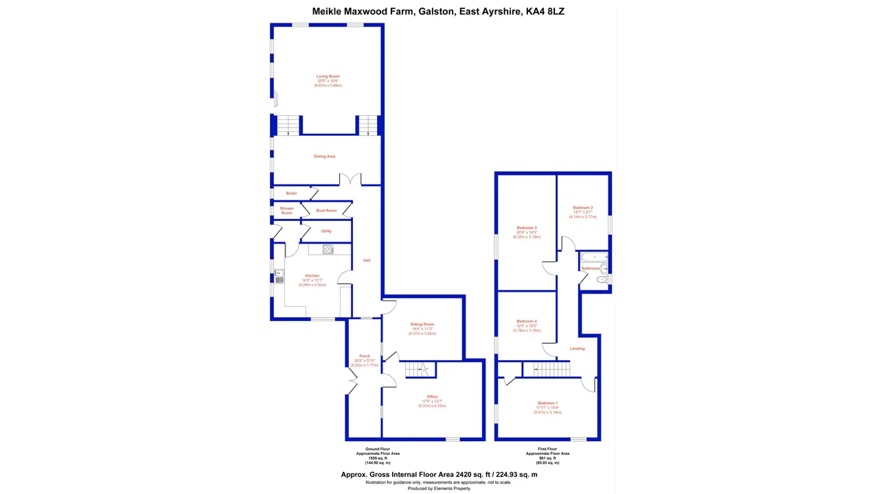 Meikle Maxwood Farm is located in a convenient semi-rural position just a short distance from the popular small town of Galston, East Ayrshire. It comprises a fine attached farmhouse with useful outbuildings including workshop, general purpose storage shed and garage, in a peaceful rural situation with stunning views over the surrounding Ayrshire farmland. It is well placed for access to Kilmarnock (6 miles) and Ayr (16 miles) whilst Glasgow (about 25 miles) can be reached easily via the M77. There are excellent transport links in the area with a regular train service to Glasgow from Kilmarnock whilst Glasgow and Prestwick Airports are 28 miles and 14 miles away respectively. Primary and secondary schooling are available in Galston and private schools at Belmont House and Hutchesons’ in Glasgow and Wellington in Ayr.Galston has a variety of local shops including a superstore. Kilmarnock offers a wider range of facilities including a retail park and cinema whilst Silverburn Shopping Centre is 18 miles distant. Ayrshire is renowned for its many golf courses including the world famous facilities at Royal Troon, Turnberry, and Galston (Loudoun Gowf Club). The Morris Equestrian Centre with fabulous equestrian facilities is 9 miles away. The surrounding rolling countryside of the Irvine Valley offers a network of country lanes, ideal for walking, cycling and hacking. The popular Burn Anne Walk is a pleasant 5 mile circuit starting from Lockhart’s Tower (Barr Castle) in Galston. There are excellent yachting facilities at the marinas at Ardrossan, Largs, Inverkip and Troon.Meikle Maxwood Farm is a handsome attached traditional Ayrshire farmhouse which has lovely rural views from which you can see the ruins of Loudoun Castle. Built on two storeys of stone and slate with a white painted finish, the current owner has lived at Meikle Maxwood Farm for some 35 years. There are outbuildings including a general purpose storage shed, workshop and garage, which could be ideal for stabling or for other business or leisure interests.Ground Floor: Kitchen, Utility Room, The Byre – Living/Dining Room, Sitting Room, Office, Porch, Boot Room, Shower Room, Boiler Room.First Floor: 4 Bedrooms, Bathroom.The kitchen/diner has a range of farmhouse style floor and wall units with integrated double oven and microwave, hob, dish washer, fridge and freezer. There is a useful utility with kitchen units and plumbing for washing machine. The byre – living/dining room, is a wonderful extensive living space providing a raised dining area and patio doors leading to the gardens and a large brick fireplace with calor gas fire. There is a cosy sitting room and office, together with a sun porch which has access to the garden. There is a shower room on the ground floor, together with boot room, boiler room completing the accommodation on the ground floor.On the first floor, there are 4 spacious bedrooms together with a family bathroom with shower over bath.The gardens are down to lawn sheltered by a hawthorn hedge with a gravelled patio seating area. There is a hexagonal summer house with slate roof from which to enjoy the lovely rural views. There is also a potting shed.BUILDINGSGeneral Purpose Storage Shed: About 15.15m x 6.058mBreeze block and corrugated frame with hardcore and earth surface, slate roof.Garage: About 6.36m x 7.049mBrick and slate with power, concrete floor. Up and over door.Workshop: About 7.85m x 5.67mStone and brick with concrete floor, inspection pit, power, slate roof, with floored area above (5.94m x 3.57m), double timber doors.LANDThere is a 6.01 acre paddock west of the farmhouse which is fenced with access from the road and the private drive.The land is graded 3(2) as per the James Hutton Soil Classification Map.RIGHT OF ACCESSMeikle Maxwood Farm is one of 4 properties accessed from a private drive.There is a Right of Access over the drive with shared maintenance.DIRECTIONSFrom Glasgow take the M77 and exit at Junction 5 and turn left onto the A719 for Galston. Proceed to the roundabout at Galston and head straight on into the town. Continue onto the B7037 and turn left onto Clockston Road and turn left at the next turning. Continue for about 0.49 miles and the entrance to Meikle Maxwood Farm is on the right hand side. Proceed along the drive and it is the second property on your left hand side.KA4 8LZWHAT3WORDSTo find this property location to within 3 metres, download and use What3Words and enter the following 3 words: https://w3w.co/enrolling.widely.tastes