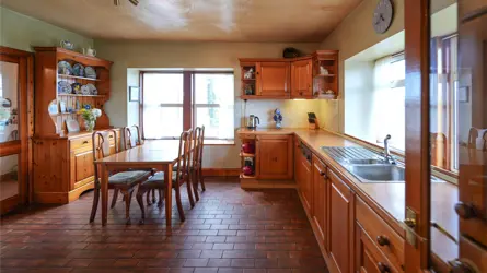 - A charming traditional attached farmhouse with about 6.92 acres of land and buildings.