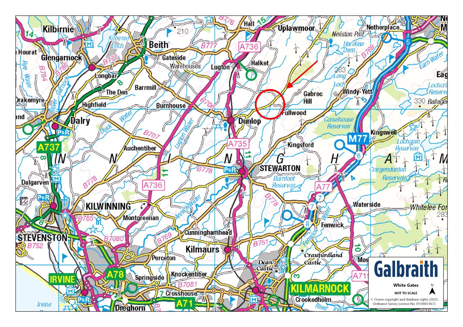White Gates is situated in a beautiful rural location close to the conservation village of Dunlop in East Ayrshire and within easy travelling distance of Glasgow. Dunlop has a post office, village shop, artisan shop and bakery, well regarded restaurant (Struther Farmhouse), an excellent primary school and railway station with regular services to Glasgow. Stewarton (about 3.9 miles) has a primary and secondary school and private schooling is available at Belmont House, Wellington and Hutchesons which are within easy travelling distance. Glasgow and Prestwick Airports are easily reachable being 16.6 and 20.3 miles distant respectively. Ayrshire is renowned for its many golf courses including the world-famous courses at Turnberry, Prestwick and Royal Troon. There are excellent yachting facilities at the marinas at Ardrossan, Largs, Inverkip and Troon. The racecourse in Ayr is home to the Scottish Grand National and there are several fixtures throughout the year. White Gates is an attractive substantial country house built in 1955 over two storeys of brick with a render finish under a pitched slate roof with integral garage. It sits proudly within mature, landscaped and expertly stocked gardens, the front drive sweeps around an oval shaped area of lawn with colourful border stocked with a variety of plants and shrubs. The house comprises a welcoming hallway from the front sunroom which overlooks the garden and countryside beyond. The principal reception rooms are all off the hall and include the living room with a gas fire set in marble surround, two alcoves, bay window and wall lights, dining room with dual aspect windows and coving and the sitting room with bay window, coving, open fire set in stone with wooden mantle. There is a spacious kitchen with wall and base units, integrated oven, grill, hob and extractor fan and free standing fridge and dishwasher. From the kitchen there is access to a boiler room and large utility room with Belfast sink and plumbing for washing machine, from here there is a staircase to an attic room with eaves storage. Stairs from the reception hall rise to the 4 bedrooms, the master bedroom having a walk-in wardrobe and en suite shower room. All bedrooms are generously sized and have built in wardrobes. The family bathroom is of an older style with Vitrolite tiling. There is a large integral garage with an electric door, power and light.Single garageBuilt of brick with up and over door. Water.OutbuildingBuilt of brick with corrugated roof.GARDEN (AND GROUNDS) The well-established gardens at White Gates are of particular note having been carefully designed with a blend of seasonal colours. The lawns are expertly maintained and edged to showcase the borders with a collection of plants, shrubs and conifers. The enclosed rear garden is bounded by a brick wall with patio, lawn and raised flower bed. A variety of mature trees form an attractive shelterbelt to the house and gardens. There is additional land available to rent by separate negotiation (coloured green on our site plan). Field number 1 is 0.97 acres and field number 2 is 7.97 acres.FLOOD RISKFlood maps of the area can be viewed at https://map.sepa.org.uk/floodmaps/FloodRisk/Search.There is no risk of flooding at White Gates.DIRECTIONS From Glasgow take the M77 southbound towards Kilmarnock/Prestwick Airport, at Junction 2 take the B762 exit to Barrhead. Turn right onto Barrhead Road/B762. At the roundabout, take the 2nd exit and stay on Barrhead Road/B762 until Hurlet Road A736, then left on to Glasgow Road/A736. Go through 1 roundabout then turn left onto Neilston Road. In Neilston turn left onto High Street then continue onto Kingston Road and continue for about 4.5 miles. White Gates is on the left hand side of the road. POST CODE KA3 4BQ WHAT3WORDSTo find this property location to within 3 metres, download and use What3Words and enter the following 3 words: ///recline.neatly.inches