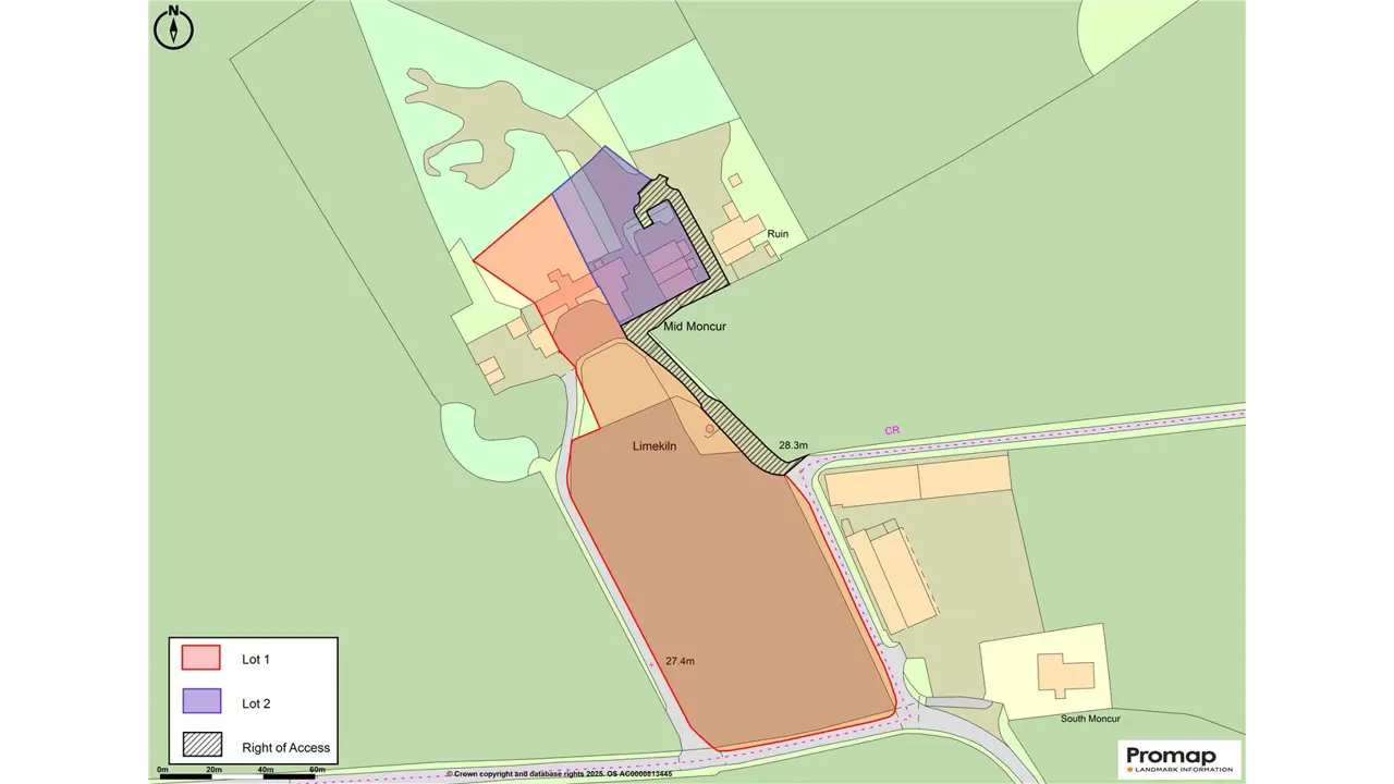 Mid Moncur is situated in a slightly elevated position close to the North Ayrshire town of Kilwinning. Locally there are an excellent range of services and facilities including primary schools and a secondary school whilst more comprehensive service and leisure facilities and retail parks are available in the nearby larger towns of Ayr, Kilmarnock and Irvine. Glasgow is easily reached via the A736 or A737 and Kilwinning also has a railway station on the main line to Glasgow with a regular train service. Glasgow and Prestwick Airports are 23 and 14 miles away respectively.The surrounding countryside is ideal for outdoor pursuits. Nearby Eglinton Country Park offers horse-riding on an extensive network of bridleways, as well as permit fishing for Eglinton Loch and the River Lugton. Ayrshire is renowned for its golf courses which include Royal Troon, Prestwick and Turnberry. Ayr Racecourse holds regular fixtures including the Ayr Gold Cup and Scottish Grand National. Sailing is popular on the Firth of Clyde with yacht marinas at Troon, Largs and Inverkip.DESCRIPTIONLot 2:Planning permission has been granted for the conversion of the existing natural stone farm buildings to create 2 attached dwellinghouses (Plots 3 and 4 on the planning drawings). Plot 3 to form a beautiful open plan kitchen/living room, separate sitting room, 4 bedrooms (one en suite), bathroom, shower room and utility room. About 154.2m2. Plot 4 – to form a spacious open plan kitchen/dining/living room, separate sitting room, 4 bedrooms (two en suite), bathroom, shower room, utility room. About 204.5m2. ACCESS/THIRD PARTY RIGHTS OF ACCESS/ SERVITUDES ETCThe farmhouse and Plots 3,4 and 5 will have joint ownership and maintenance of the access drive (hatched black on the plan).