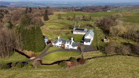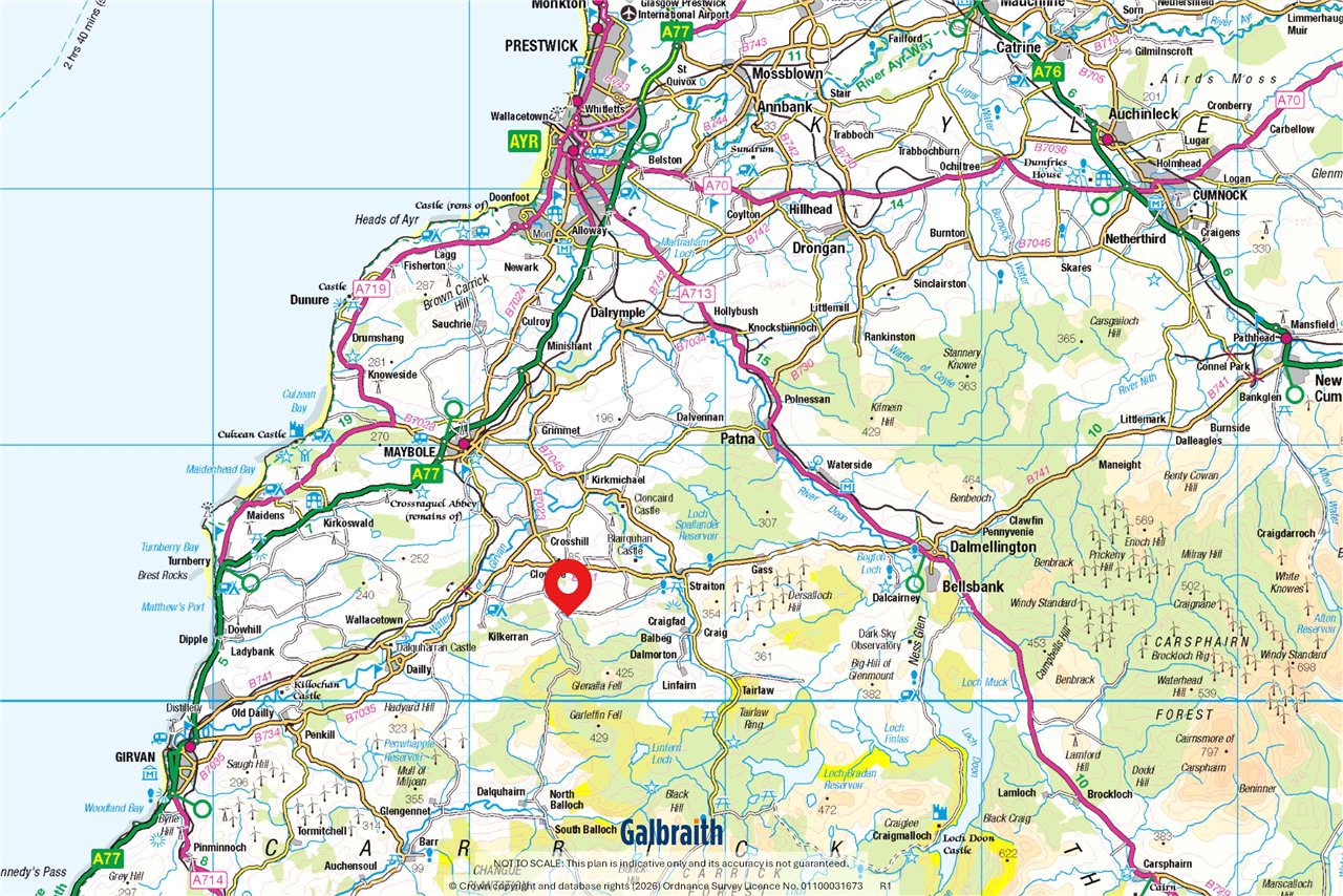 Shawsknowe enjoys an unrivalled secluded and scenic situation in the South Ayrshire hills. The village of Crosshill is about 2.8 miles with primary schooling, post office, bowling club with Dalduff Farm country farm shop being a short distance away. The attractive conservation village of Straiton (about 3 miles) with Bennan Hill forming a stunning backdrop to the village also has local amenities including café and community shop, a play park and a well-regarded primary school.The County Town of Ayr (about 13 miles) has an excellent range of shops, leisure and sports facilities and art galleries. There is secondary schooling in Maybole whilst the nearest independent school is Wellington, Ayr. The railway station in Maybole provides regular services to Glasgow and Stranraer. Glasgow is within easy reach via the newly improved Maybole bypass and Glasgow Prestwick Airport (20 miles) offers regular international flights.There are excellent country walks and cycling paths around Crosshill including the Barony Hill walk and Maxwellston Hill, Dailly. The Changue Forest Trail (10 miles) is one of the many designated cycling and walking routes in the area. For horse riding the many forest trails provide miles of quiet off road hacking in stunning upland landscapes. Bargany Gardens (8 miles) is open during May. Culzean Castle & Country Park (10 miles) is home to the cliff-top castle, woodland walks, swan lake, play parks, gift and coffee shop. There are several lovely walks at Straiton (5 miles) with Lady Hunter Blair’s Walk (a beautiful wooded glen and waterfall), outdoor pursuits and livery is available at Craigengillan Estate (13 miles). It is also part of the Galloway and South Ayrshire UNESCO Biosphere covering 9,800 square kilometres of south-west Scotland. Outwith the Dark Sky Park, a Transition Zone has been identified with a radius of 10 miles from the Park’s boundary, Shawsknowe lies within this zone. This transition zone is advisory and intended to protect the dark skies night environment within the Dark Sky Park from light pollution emanating from this Zone. The River Stinchar is an excellent productive salmon river and is renowned for its autumn run. To the west, is Turnberry, with world class golfing facilities, luxury hotel and spa.Occupying an idyllic and very private location, Shawsknowe is a delightful detached farmhouse which dates to around 1850, constructed of stone over two storeys under a slate roof. In a very pretty setting, it is approached along a private tarmacadam drive leading to the property with extensive parking. The farmhouse has been comprehensively refurbished to an exacting standard by the present owners, with considerable care and attention to detail invested in creating a very pleasant and comfortable country home. The works include a new slate roof, insulation and replastering of the internal walls, new radiators, new internal doors, and the installation of an underfloor damp-proof membrane under a natural stone floor covering. Together, these improvements significantly enhance the property’s overall energy efficiency.Adjacent to the farmhouse are a range of traditional farm buildings available for agricultural use or offering excellent potential for future development (subject to the necessary planning consents). At present, the buildings include a newly created home office which is ideal as a home office or additional bedroom which has Wi-Fi and heating. There is also a store, barn, general purpose shed, hay shed, double garage, wood stores, and new stable block. The farm also benefits from photovoltaic panels, which provide an additional income stream.Life at Shawsknowe moves with an easy, natural calm. Wildlife drifts quietly through the fields, and the farmhouse enjoys a sense of privacy that feels both comforting and complete. The Balsaggart Burn at the front follows its own unhurried course, its soft murmur carrying through the days, while the surrounding landscape shifts in colour and character as each season arrives. It is a wonderful lifestyle opportunity for those with equestrian or other farming interests, and a setting that feels like the countryside at its most perfect and poetic.Shawsknowe is offered for sale as a whole or in 2 lots.Please note that Lot 2 will not be sold prior to the sale of Lot 1.Lot 1 Farmhouse, Buildings and 16.22 acresShawsknowe Farmhouse is a traditional stone built farmhouse under a slated roof enjoying a south facing position. The accommodation over two floors comprises:Ground Floor: Entrance Porch x 2, Living Room, Kitchen, Bedroom, Bathroom, Reading area,Utility Room.First Floor: Landing and 2 Bedrooms.The kitchen/dining room has a lovely bank of contemporary fitted base units, Range cooker electric double oven with LPG 8 ring gas hob and cooker hood, natural stone floor, Quooker tap, deep window sill, integrated dishwasher and fridge freezer. This leads to the cosy living room with an Aga wood burning stove on a pine mantel and surround, natural stone floor and beautiful views overlooking the farm’s own land. There is a spacious ground floor bedroom with built-in floor to ceiling wardrobe storage. In the hall, there is a bespoke built in bookcase providing a relaxing reading area. On the first floor, there are two double bedrooms from which there are stunning south facing views over the gardens and land at Shawsknowe. Adjoining the rear of the farmhouse is the utility room which has been finished with timber cladding externally has plumbing for washing machine, fridge freezer, w.c. and houses the water filtration system.The tarmacadam drive wraps round the property with parking for several vehicles. The south facing gardens are a wonderful vantage point to admire the surrounding beauty or spot local wildlife including deer and white weasels, and a variety of birds species including the Cuckoo in late spring. The gardens are mainly down to lawn areas interspersed with shrubs and plants providing continuous col