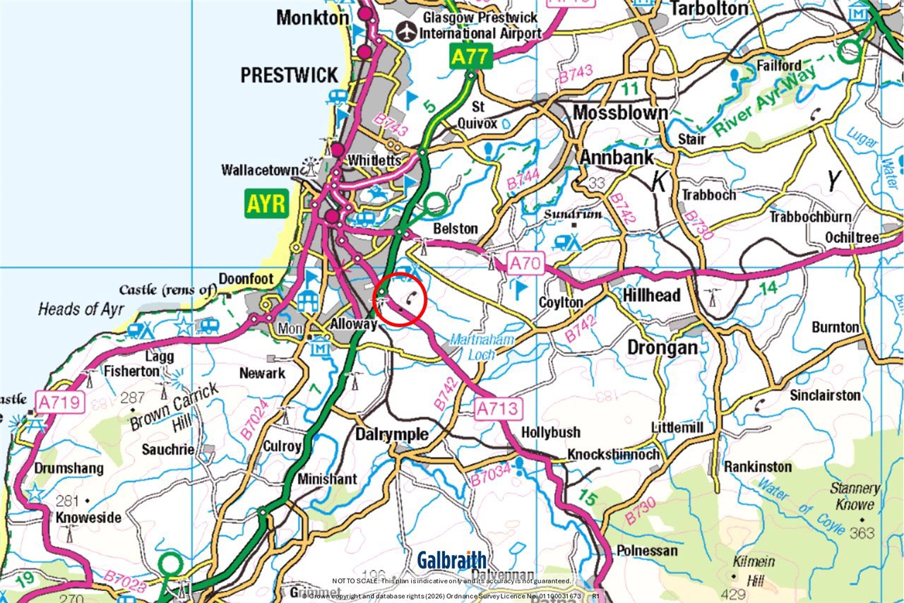 Braston House is situated in an elevated position with outstanding views over Ayr and towards Arran. Located just on the fringes of Ayr and with easy access to the A77, this beautiful country residence combines charm and space with modern day comforts. Ayr offers a wide selection of shops, restaurants, sports facilities, and a cinema. The town boasts a long, sandy beach and several attractive parks, including Rozelle and Belleisle. A private co-educational school is also located nearby. Glasgow is easily reached via the A77/M77, and there is a frequent train service from Ayr to Glasgow Central. Prestwick Airport, which provides a broad range of international flights, lies just 8.5 miles away. Ayrshire is renowned for its outstanding golf courses, notably the world-famous links at Royal Troon, Turnberry, and Prestwick. Ayr Racecourse hosts the Scottish Grand National along with other fixtures throughout the year and there are yachting marinas at Troon, Ardrossan, and Largs. For equestrian enthusiasts, the Ayr Equitation Centre is located only 2 miles distant. The popular River Ayr Way walk, a 44-mile long-distance walking route that includes the Ayr Gorge Woodlands reserve, a dramatic sandstone ravine cloaked in one of Ayrshire’s most significant ancient woodlands is close by. The region offers excellent opportunities for country sports, including salmon and trout fishing, making it a haven for outdoor enthusiasts. Braston House is a delightful one-and-a-half storey brick-built property, finished in attractive white render beneath a tiled roof, offering spacious and versatile accommodation throughout. These is potential to extend into the extensive eaves storage areas and/or reconfigure the side extension (subject to planning). Upon entering, a large and welcoming reception hallway sets the tone for the home and provides access to the principal living areas. The well-proportioned sitting room features an open fire with slate hearth, coving, wall lights and French doors opening onto the patio from which full advantage of the views can be enjoyed. The cosy snug has a wood burning stove and walk-in cupboard. The heart of the home is the impressive open plan kitchen dining room, the kitchen is well equipped with floor and wall mounted units a ceramic hob, Belfast sink, a large island, integrated dishwasher and microwave (the AGA is available by separate negotiation). The dining room has French doors leading directly to the patio providing a great entertaining space for family and guests. The utility room is plumbed for a washing machine and has space for a tumble dryer, it is fitted with a spare oven and has ample floor and wall mounted units. There is one spacious bedroom on the ground floor with views over the rear garden. Completing the ground floor is a convenient w.c. and two large storage cupboards. The stairs rise to the first floor where there are three further generously proportioned bedrooms which all benefit from excellent storage. The master bedroom has existing plumbing in place, offering potential to create an en-suite bathroom (subject to necessary planning consents). The stylish family bathroom comes complete with claw-foot bath, wash hand basin set in vanity unit, w.c. and attractive half panelled walls. In addition there is a shower room with power shower. ACCOMMODATION Ground Floor: Sitting Room, Snug, Open Plan Kitchen/Dining Room, Bedroom, Utility Room, w.c.First Floor: 3 Bedrooms, Family Bathroom, Shower Room. Externally, the property benefits from a generous garden, mainly laid to lawn with several fruit trees and complemented by a charming patio area ideal for outdoor dining and entertaining whilst enjoying the superb view across to Arran and beyond. There is a useful garden shed and timber log storage shed as well as a carport.There are 4.79 acres of land lying directly adjacent to the garden. This has been graded 4(2) by the James Hutton Institute and is about 55m above sea level. There is water from a trough on the land.PV PANELSThere is a bank of solar panels in an enclosed area of the garden which generate approximately £800 per annum from the feed-in tariff.FLOOD RISKFlood maps of the area can be viewed at https://map.sepa.org.uk/floodmaps/FloodRisk/SearchThere is no history of flooding at Braston House.ACCESSThere is a right of access over the farm road marked A – B on the site plan. WAYLEAVE There is a small wayleave payment paid annually from British Telecom for poles on the land.DIRECTIONS From Ayr take the A713 Dalmellington Road, take the first left after the roundabout and follow the road for about half a mile to Braston House.POST CODEKA6 6AA WHAT3WORDSTo find this property location to within 3 metres, download and use What3Words and enter the following 3 words: ///cloak.dame.audit