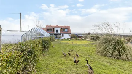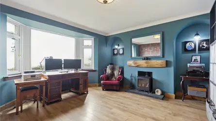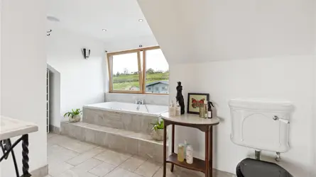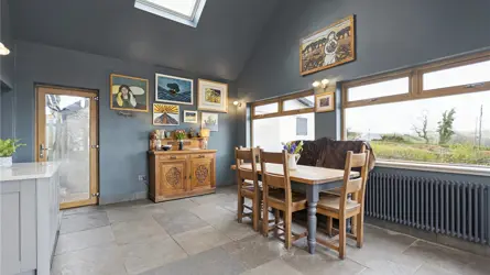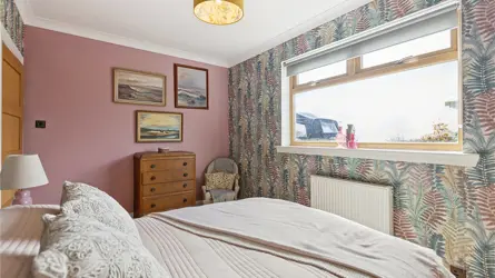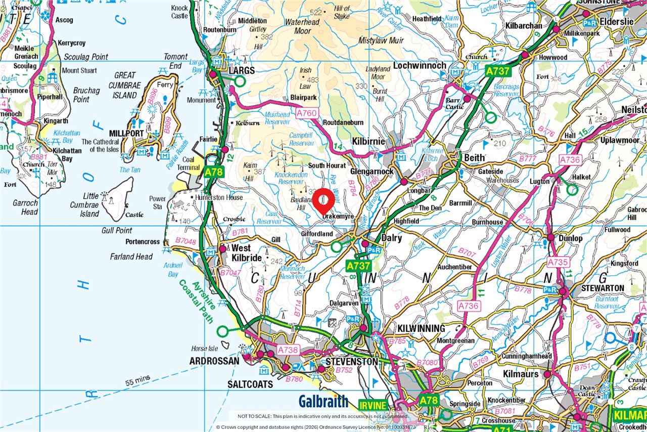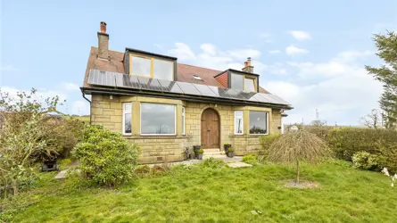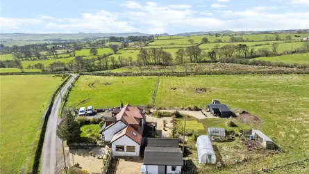 Windyedge Bungalow is situated in an elevated rural setting with wonderful views over rolling Ayrshire countryside about 2 miles north-west of Dalry. It is well positioned for easy access to Glasgow which is about 27 miles. Local services and facilities are available in Dalry including a mainline railway station with regular services to Glasgow and beyond. Kilwinning (6 miles) and Beith (7 miles) are well serviced with a wide range of local shops and facilities including restaurants and coffee shops.Both Glasgow and Prestwick Airports are equidistant at about 20 miles from the property. There are primary schools in Dalry and private schools at St Columba’s at Kilmacolm and Wellington in Ayr. Ayrshire is renowned for its many golf courses including the world-famous courses at Turnberry and Royal Troon. The course at West Kilbride is also well regarded. There are excellent yachting facilities at the marinas at Ardrossan, Largs, Inverkip and Troon. Lynn Glen is a beautiful woodland walk winding along the Caaf Water with great views of the Lynn Spout waterfall. Dalgarven Mill, a restored Victorian mill and 3 granary floors is home to the Museum of Ayrshire Country Life and Costume.Windyedge Bungalow is an attractive lifestyle property set within generous grounds and surrounded by open countryside. Constructed over one and a half storeys in Scottish sandstone and brick with partial roughcast to the sides and rear, the home sits beneath a traditional Rosemary tiled roof. The property has been thoughtfully extended and upgraded by the current owners, who have undertaken a programme of refurbishment including a new air source heat pump, full insulation improvements, a redesigned first floor layout, and a beautifully extended dining kitchen. The property is complemented by a range of adaptable outbuildings, a log cabin, greenhouse, polytunnel and areas of grazing land - ideal for those seeking a rural lifestyle, hobby farming, or equestrian use.Windyedge Bungalow offers beautifully presented accommodation beginning with an inviting entrance vestibule featuring arched double doors and terrazzo tiles, leading through a glazed door to a warm and welcoming reception hall laid with engineered oak flooring. The living room enjoys a bay window framing open countryside views, complemented by a log burner on a slate hearth, coving and wall lights, while the sitting room, equally suited as a fifth bedroom, also features a wood burner with wooden mantle and slate hearth. The impressive dining kitchen is a bright space designed to capture the surrounding views, there is a wood burning stove with oak mantle in the dining area and the kitchen is fitted with a pale grey Howden’s kitchen, Siltstone worktops, Belfast style sink, boiling water tap, tumbled limestone flooring, two double ovens, induction hob, extractor, wine cooler and American style fridge freezer, with both a larder and additional storage cupboard off. The ground floor further includes a double bedroom and a stylish shower room with steam shower cabinet and underfloor heating. A staircase rises from the hall to the first floor, where three bedrooms are found, including a generous master bedroom with blue tooth speaker system, walk in wardrobe, additional cupboard and a luxurious en suite bathroom featuring a Phoenix jacuzzi bath, Mira double head shower, wash hand basin and w.c. Ground Floor: Dining Kitchen. Living Room. Sitting Room/Bedroom 5. Shower Room.First Floor: Master Bedroom (en suite). 2 Bedrooms.GARDEN (AND GROUNDS) The front garden is attractively landscaped with a lawn bordered by mature shrubs and planting, creating a welcoming approach to the property. From the dining kitchen, a generous patio provides an ideal space for outdoor entertaining while enjoying the panoramic views, and beyond this lies a stone chipped gated driveway offering secure parking/storage for vehicles. There is also off road parking for several vehicles to the front of the property. A charming orchard area features blackberry, raspberry and cherry bushes along with apple trees, adding to the property’s rural appeal. The rear garden includes a sheltered seating area beneath a wooden framed gazebo, complemented by established shrubs, planting and a stone chipped pathway leading to the log cabin. Along the boundary sits the duck house and run, together with an 8 metre polytunnel and a Rhino greenhouse, providing excellent facilities for gardening and small scale livestock.The outdoor space provides exceptional scope for self-sufficiency or simply enjoying the peaceful, rural setting. The elevated position delivers stunning panoramic views, reinforcing the property’s appeal and offers the full spectrum of rural living. BUILDINGSLean-to (about 6.3m x 2.1m)Timber with plasterwork and insulated, bitumen corrugated roof.Former Garage/Utility Room (about 6.8m x 5.5m)Brick with bitumen corrugated roof. Insulated. Electricity. Plumbed for a washing machine. W.C.Stable (about 5.5m x 8.6m) including tool shed/hay bail storage area.Breeze block with roughcast finish, concrete floor.Logspan Log Cabin (about 7m x 5m at longest points)Complete with bedroom and w.c. Electric heating, water and drainage.LANDThe grazing land at Windyedge extends to 3.28 acres and is classified as 4.1 by the James Hutton Institute. The land lies about 130m above sea level. The paddocks have direct access from the property, a water supply and are enclosed by post and rail fencing. 1,600 trees and hedgerow have recently been planted along the boundary fence.SOLAR PANELSThere are 12 solar panels which generate approximately £150-£300 per annum from the feed-in tariff.
