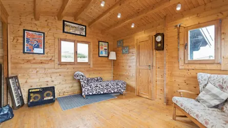 - Useful outbuildings and log cabin.