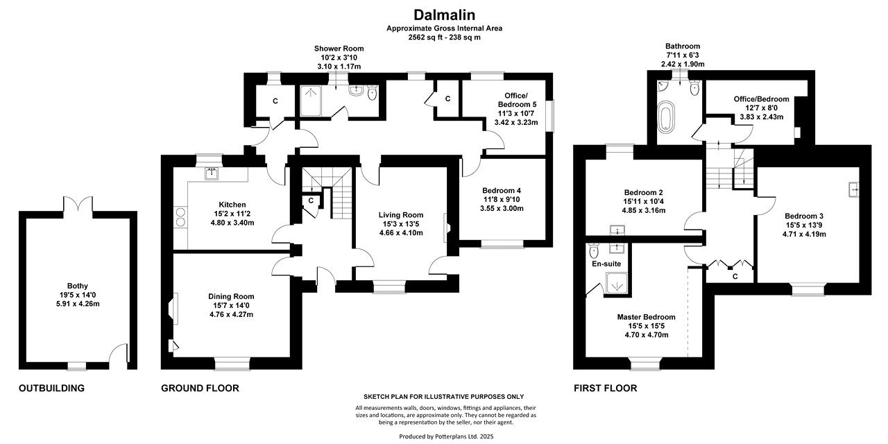 DESCRIPTION Dalmalin Lodge is a charming C-listed mid-19th century property set within a beautiful rural setting on the outskirts of Gatehouse of Fleet. Rich in character and period detail, this handsome stone-built lodge offers a rare opportunity to acquire a traditional home surrounded by open countryside, with the benefit of two paddocks and an outbuilding with power, ideal for a variety of uses such as stabling, a workshop, or studio.The lodge retains much of its original charm and features characteristic of its period, including stone detailing and traditional proportions. The grounds extend to generous gardens with mature trees and open views, creating a tranquil and picturesque environment.Perfect for those seeking a lifestyle property or smallholding, Dalmalin Lodge combines historic appeal with practical outdoor space in one of Dumfries and Galloway’s most scenic areas, within easy reach of the amenities of Gatehouse of Fleet and the Galloway Hills beyond.There is evidence of bats roosting in the attics. Bats and their habitats are protected and disturbance can lead to substantial fines.ACCOMMODATION Ground Floor: Entrance Hall, Living Room, Dining Room, Kitchen, Shower Room, Two BedroomsFirst Floor: Master bedroom with en-suite, Three Further Bedrooms, BathroomGARDEN (AND GROUNDS) Natural garden setting with seasonal colour from spring bulbs, including bluebells, daffodils, and snowdrops. A productive vegetable garden, ideal for growing your own fresh produce. Peaceful seating areas, offering perfect spots to enjoy the surrounding countryside. Two generous paddocks, providing excellent potential for equestrian use, hobby farming, or additional outdoor spaceSITUATION Dalmalin Lodge is Located just over a mile from Gatehouse of Fleet within the Fleet Valley which is a National Scenic Area, and Gatehouse is located in the UNESCO Biosphere. Gatehouse has a good range of local facilities including a primary school, hotels, chemist, doctor’s surgery, coffee shops, postal service and a small supermarket. A wider range of services can be found in the nearby towns of Kirkcudbright and Castle Douglas. The harbour town of Kirkcudbright is known as Scotland’s Artists’ Town, having strong connections and history with the renowned Glasgow Boys. Today it thrives as a popular destination town with gallery, museums, individual shops and a wonderful community spirit. Primary and secondary schooling is available in the town. Castle Douglas is designated the region’s Food Town and is home to a wide variety of boutique shops and businesses. Again, primary and secondary schools are situated in the town. The region is famed for its outdoor sporting opportunities including mountain biking at the various Seven Stanes forest centres, fishing and shooting on the stunning lochs, hillsides, coast and rivers, golf at numerous courses including the championship course at Southerness, and equestrian pursuits. There are also sandy, picturesque beaches within close proximity to Gatehouse at Sandgreen and Mossyard. Communications to the region are good with motorway connections north and south available at Moffat, Lockerbie and Gretna. Mainline train stations are in Lockerbie and Dumfries with connections to Glasgow, Edinburgh, Manchester and London. Glasgow and Edinburgh airports are each around 2 hours by car. DIRECTIONS From Gatehouse of Fleet at the top of the high street at the war memorial turn left heading for Laurieston via Laurieston Road. Continue passed the golf course and tennis courts on the right, taking the first left at the fork. Follow the road for approx. 1 mile and Dalmalin is located on the left hand side.