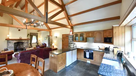 SITUATION Glenview sits in a rural position approximately 3 miles northwest of the village of Dunscore. Dunscore is a thriving community and has a primary school, doctor’s surgery, a community hall, Post Office service (part time in the community hall), a community run pub, and church. There is a community website available which gives more detail on all activities and facilities. A broader range of shops, schools and services are available in Thornhill, where there are a number of individual local businesses, or the regional capital of Dumfries, including a leisure complex, cinema, restaurants, hotels, a large regional hospital with a broad range of out-patient clinics, and the Crichton Campus, home to the local campuses of both Glasgow University and the University of the West of Scotland.The area is renowned for its diverse range of outdoor pursuits and activities. There is excellent fishing available on the region’s numerous rivers and lochs, as well as good sea fishing off the coast. Shooting is available on various estates. Equestrian pursuits are well catered for with many stables offering both livery and schooling, as well as a number of Pony Clubs holding gymkhanas and events throughout the year. For golfers, there are several excellent courses available nearby, including the championship course at Southerness. Mountain bike enthusiasts are well catered for by the region’s Seven Stanes forests, the nearest of which is Ae Forest. Hill walking and hiking is available all over the area on numerous paths and hills. Birdwatchers can be entertained endlessly at the nature reserves at Mersehead and Caerlaverock run by the Wildfowl & Wetlands Trust, where, amongst other species, Ospreys can be seen. Communications to the area are good. The M74 is around 45 minutes’ drive away, giving easy access to the central belt of Scotland to the north, and the M6 leading to the south. There are both domestic and international flights available from Prestwick, Glasgow and Edinburgh airports, all reachable in under two hours.DESCRIPTION Glenview is a contemporary build one and a half storey dormer house, finished to a high standard throughout, completed in 2003. It sits in its own garden ground of around 2 acres, nestled in secluded forestry, of which 13 acres belongs to the property. Stone from the original bothy on the site has been incorporated into the interior of the hallway, giving a stylish sense of history. The striking public spaces are open plan under an impressive vaulted ceiling featuring exposed oak beams. Double glazing and oil fired central heating, with underfloor provision on the ground floor and panel heaters to the first floor, means the house is comfortable and efficient. With three bedrooms, and both a bathroom and a shower room, Glenview is an ideal family retreat, or as in its current use, a high quality holiday let. There are no occupancy restrictions so it could also be a permanent residence, with schools and amenities available in Dunscore and Thornhill.ACCOMMODATION Ground Floor: Entrance Sun Porch. Sitting Room with Vaulted Ceiling and Open Plan Kitchen. Utility Room. 2 Bedrooms. Bathroom. Storage. Boiler & Water Filtration Room (accessed externally). First Floor: Master Bedroom with Dressing Room. Shower Room. Storage.GARDEN AND GROUNDS A tarmac track leads through quiet spruce forest and opens up to a large garden which frames the house perfectly. The garden at Glenview is a wonderful haven for wildlife and humans alike. Abundant native wildlife inhabit the grounds and forest including red squirrels, roe deer, owls, pine martins and the occasional red deer. Areas of grass give a sense of space and room for relaxation, outdoor entertaining and general wellbeing. The pond attracts a wide variety of species, and also provides some well-earned cooling off for four-legged companions. The forest adds privacy and plenty of potential for adventures for pets, children and adults alike. ACCESS TRACKThe access track leading past the forest and to Glenview and beyond is in separate ownership. A servitude right of pedestrian and vehicular access has been granted in favour of the owners of Glenview. Further, the owners of Foxwood granted a servitude right of pedestrian and vehicular access over that part of the track leading past their property from the minor public road.