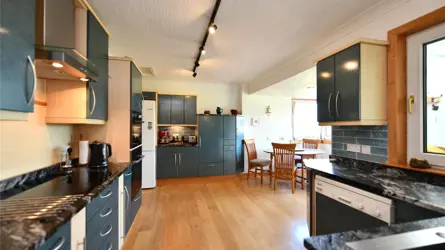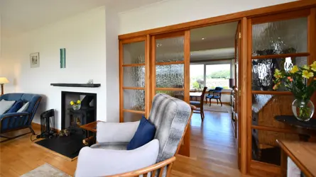 SITUATION Rannoch sits in an enviable corner position in Kippford with open views of the estuary and countryside. The village is perennially popular and provides two hotels, the Solway Yacht Club, Kippford Nature Reserve, village hall, 9-hole golf course with tea room, RNLI, a gift shop/small delicatessen, and a pottery. The nearby town of Dalbeattie has a good range of shops, cafes, hotels, restaurants, primary and secondary schools, health centre, solicitors, a 9-hole golf course, and a park. 18-hole golf courses can be found nearby at Colvend and Southerness. The market town of Castle Douglas is known as Dumfries and Galloway’s Food Town, and has individual shops, schools, supermarkets, health services, veterinary services, a thriving livestock market, and 9-hole golf course. Dumfries, around 18 miles east, is the regional capital, and provides a wider range of schools, shops, retail outlets, and other services including a major hospital, the Dumfries and Galloway Royal Infirmary. Dumfries is also home to the Crichton campuses of Glasgow University and the University of the West of Scotland.DESCRIPTION Rannoch is a thoughtfully designed split level well-appointed home, sitting within generous mature garden grounds. Panoramic views of the Urr Estuary, Kippford village, marina and the surrounding countryside lift this delightful property into the realms of rarity, with one of the best locations in the village. Generous reception rooms mean the house is ideal for entertaining guests and family events. The large sitting room on the ground floor has a sliding glazed door and window, giving light and enabling gatherings to spill out into the garden. There is an electric awning over the window which gives shade on hotter days. A formal dining room leads from the sitting room. The L-shaped kitchen has a stylish range of fitted units, and a good-sized breakfast/informal dining area with dual aspect views over the rear garden. A useful porch leads out to the garden. The living room on the upper ground floor has a beautiful bay window which includes a glazed door accessing the raised deck from where stunning views of the estuary and marina can be enjoyed. The bedroom accommodation is on the upper ground floor and is currently configured as two bedrooms, however Bedroom 1 was created by the current owner from two smaller bedrooms and could easily be re-instated back to give three bedrooms in total. The living room has fitted wardobes and could also become a stunning bedroom with deck access. Bedroom 2 is en suite and has fitted bedroom furniture. There is a family shower room with ‘Jack & Jill ‘ doors to the hall and Bedroom 1.The property is heated by oil fired central heating, with the addition of a cosy wood-burning stove in the sitting room for colder months. The boiler is situated in the cellar, which is accessed externally and provides useful low height storage.ACCOMMODATION Ground Floor: Entrance Vestibule. W.C. Hallway. Sitting Room. Dining Room. Kitchen. Back PorchUpper Ground Floor: Living Room. Bedroom 1. Family Shower Room with Jack & Jill doors. Bedroom 2 with En Suite Shower Room. Linen Cupboard with hot water tank.Garage5.76m x 4.73mDetached garage with electric door, side pedestrian door, power and light.Garden HutWith power and lightGARDEN A private tarmac driveway leads in past the neighbouring property, and opens to a generous tarmac parking area. The detached garage sits to the side, with the oil tank tucked in beside screened from view. The garden wraps around the house, with the front and side areas mainly laid to grass. There is wiring for a robotic lawnmower, meaning the grass cutting is never a chore. Mature shrubs abound giving interest and character, and on the estuary side, the garden is bound by a stone dyke. The views from the garden are spectacular, with far reaching scope both up and down the estuary. Farm land sits adjacent, meaning no houses will be built between Rannoch and the water. To the rear, beautiful gravel beds are home to a colourful variety of flowering shrubs, along with a greenhouse. A patio sits adjacent to the back porch. Leading on from this is a further grassed area with a gravel bed of shrubs running along the rear boundary wall, and to the far side sits a spectacular bespoke stone dyke featuring a variety of stone sizes and built in stone trough planters. A patio sits in front of this from which to enjoy summer entertaining and all the colours of the garden. A tall timber fence shields this side of the garden from the drive and parking area.