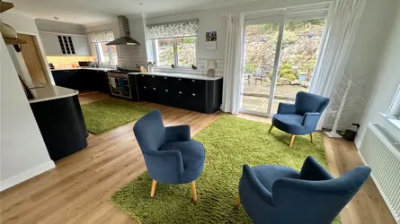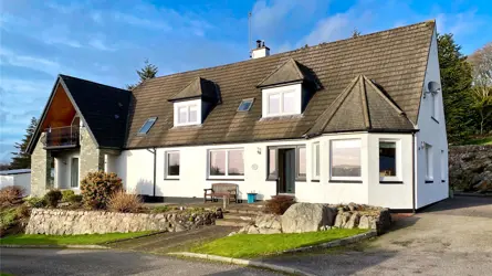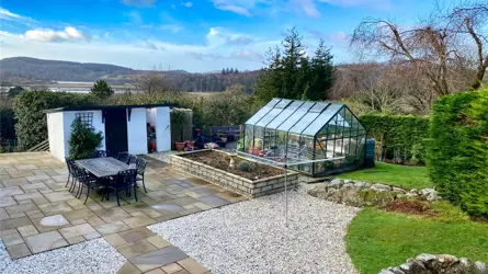 SITUATION River View Cottage sits within an exclusive quiet residential area on the edge of Kippford, overlooking the Urr Estuary and the countryside beyond. Kippford has beautiful coastal walks, a nature reserve and superb forest trails, all of which can be accessed on foot from River View Cottage. There are two inns (serving meals and local ales), the RYA award-winning Solway Sailing Club, a cafe/gift shop, a village hall which serves as a thriving community hub, an RNLI station, 9 hole golf course with tea room, and a pottery. The village of Colvend, just 2.5 miles along the A710, is home to an excellent village store, cafe, an 18-hole golf course, and the highest-rated primary school along the Solway Coast. The nearby town of Dalbeattie has a useful range of shops, cafes, hotels, restaurants, veterinary services, primary and secondary schools, health centre, solicitors, garden centre and a park. The Dalbeattie forest offers yet more walking trails and 7Stanes mountain biking for cycling enthusiasts. Castle Douglas, a market town known as Dumfries and Galloway’s Food Town, has in addition, many independent retailers, a thriving livestock market, and a 9-hole golf course. The regional capital, Dumfries, (around 18 miles east) provides a wider range of services including a major hospital, Dumfries and Galloway Royal Infirmary. The town, once the home of the National Bard Robert Burns, is now home to the Crichton campuses of Glasgow University and the University of the West of Scotland.DESCRIPTION River View Cottage has been completely refurbished over the last two years by the current owners to form one of the finest examples of a property in walk-in condition. Set in a large landscaped south-facing plot, this welcoming home features a fabulous open plan kitchen and dining room, with plenty of room for a living area between. The heart of the home, the kitchen is chic and well thought out to include built in dishwasher and fridge as well as a range cooker, and has light flooding in from the windows and patio doors which open onto the paved area and rockery garden behind. The dining room has a generous bay window to the front adding to the light and airy feel, whilst taking in estuary views. There is a generous rear hallway and utility room with built in floor and wall units, along with a cloakroom WC. The house is ideal for entertaining having two spacious formal reception rooms. The sitting room has windows to the front and a wood-burning stove set into a modern fireplace with floating timber mantle and polished slate hearth. The spectacular triple aspect drawing room has French doors to the front leading to a verandah, fireplace with electric flame effect fire, and useful built-in low level storage cupboards below the rear windows, with bookshelves either side.Upstairs, accessed by two staircases giving versatility of layout, there is plenty of room for family and overnight guests. The attractive master bedroom has built-in wardrobes and an elegant en-suite contemporary shower room. Two further spacious double bedrooms are complemented by a stunning front facing room with glazed doors out to a covered balcony, the perfect place to start your morning with coffee whilst enjoying the view over the estuary. It is currently used as an office with sitting area, but could equally be a fabulous bedroom. The middle of the first floor forms a lovely open area with built-in cupboards which would make an ideal study area or generous reading nook. A family bathroom and a further shower room complete the accommodation.All in all this property is a rare opportunity to acquire a truly versatile and ‘turn-key’ family home in a popular coastal village.ACCOMMODATION Ground Floor: Entrance Hall. Kitchen/Living/Dining Room. Sitting Room. Drawing Room. Rear Hall. Utility Room. WC.First Floor: Master Bedroom with en-suite shower room. 2 Double Bedrooms. Office/Bedroom4. Bathroom. Shower Room. Study Landing Hatch to large floored attic space, accessed by telescopic aluminium loft ladder. GARDENThe garden at River View Cottage is ideal for outside entertaining having several patio areas including a large patio to the side with plenty of room for garden furniture, barbeque and outdoor dining table etc. Beyond this is a raised bed, greenhouse and block built garden store. A smaller circular patio is positioned towards the top of the lawn to the rear to make the most of the estuary views, an ideal spot to relax with a glass of something chilled on a summer’s evening. To the rear, a paved area suitable for further outside seating and entertaining wraps across the back of the house and can be accessed from the rear patio doors and back door. Behind this area and to the side rises a striking rockery which is planted with various shrubs and plants, with steps leading up and through to the large lawned area bound by hedges and with a number of mature trees and shrubs. To the front of the house is a paved terrace in three sections including a verandah in front of the drawing room sheltered by the balcony above. Large borders and an attractive rocky outcrop with small grassed sections to the front boundary plus a small woodland area complete the garden. A large double garage/workshop of c51m2 sits to the right of a generous driveway, which provides parking for several cars. SERVICES, COUNCIL TAX AND ENERGY PERFORMANCE CERTIFICATE(S)Water - mainsElectricity - mainsDrainage - shared septic tank systemTenure - FreeholdHeating - Oil CHCouncil Tax - Band GEPC - C 70BROADBAND AND MOBILECable broadband is connected to the house. There is mobile signal, which will vary depending on provider.DIRECTIONS From Dalbeattie, take the A710 Solway Coast road. After approximately 3 miles take the right hand turn signed Kippford. After Barnbarroch Golf Club (about ¼ mile) turn right. The road forks immediately, take the left fork and continue along the single track road for a few hundred yards. Carry straight on where the road fo