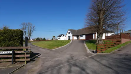 SITUATION The Steadings sits in a semi-rural location on the western edge of Dumfries. Dumfries is the regional capital and has all the major services and amenities you might expect from a large town including a major hospital, university and college campuses, primary and secondary schools, retail parks, high street shops, large supermarkets, leisure centre, restaurants, bars and cafes. It is a thriving community with much to offer family life.The region is famed for its wildlife and outdoor pursuits. The Seven Stanes forest range can be found at nearby Mabie and Ae forests with excellent mountain biking tracks as well as walking trails. Fishing is available on the numerous lochs and along the coastline. Lovely beaches can be found across the region. Equestrian pursuits are well catered for with several schools and livery available. Golfers have a choice of well-known courses in the area, including the championship course at Southerness.Communications to the area are good, with mainline train stations available at Dumfries, with onward connection south and to London at Carlisle, and Lockerbie with services north and south. Glasgow and Edinburgh airports are both reachable in around two hours. The motorway network is accessible at Gretna, Lockerbie and Moffat, all around half an hour distant.DESCRIPTION The Steadings is a substantial contemporary villa sitting in good sized grounds. The accommodation offers six bedrooms, including a spacious master suite, with three of them being on the ground floor. Ancillary accommodation could easily be created on the ground floor, utilising two of the bedrooms and using the family bathroom for example. The large dining kitchen is ideal for family life and the superb sitting room with patio doors is complemented by the separate games room across the hall, keeping both kids and grown-ups happy. A log burning stove in the corner of the sitting room keeps winter evenings cosy, and oil-fired central heating throughout warms this wonderful home. The first floor is a relaxing and spacious mix of bedrooms and bathroom. The master bedroom has a chic en suite bathroom with a striking glass brick wall and spa bath. The generous hallway and room proportions give privacy and quiet which encourages harmonious family life.Outside, the garden supports family recreation with plenty of space for outdoor entertaining and eating, with several excellent spots for soaking up the sun, or enjoying a quiet refreshment at the end of a long summer’s day. Parking for several vehicles is available to the front and side, and to the side of the garage there is enough space for a large horse box/camper van. The outbuildings include a recently built multi-purpose building which is currently configured as a stable, but which has been constructed to be capable of supporting several uses and could easily become a studio, hobby space, salon etc. The timber outbuildings are used as log and garden equipment storage currently.All in all The Steadings offers a wonderful opportunity to acquire a flexible family home in a most convenient location at the edge of a well serviced town, giving the best of both town and semi-rural life.ACCOMMODATION Ground Floor: Entrance Vestibule. Entrance Hall. Sitting Room. Games Room. Dining Kitchen. Utility Room. Office. Integral garage. Three Bedrooms. BathroomFirst Floor: Master Bedroom Suite. Family Bathroom. Two further double BedroomsGARDEN A tarmac driveway leads through a large gate from the small lane off Hardthorn Road and sweeps up to generous parking to the front of the house. Paviers continue across the front and to both sides, with gates securing each side and enclosing the back garden, which is mainly laid to lawn bound by laurel hedging. A patio sits adjacent to the rear of the house and is easily accessible via patio doors from the dining kitchen and by door from the utility room. To the front is a large lawned area through which the driveway to Jomari next door leads. The boundary with Hardthorn Road is of evergreen hedging. An ideal garden to suit family life at all stages.FLOOD RISKThere is no specific risk to the property.Flood maps of the area can be viewed at https://map.sepa.org.uk/floodmaps/FloodRisk/SearchACCESS/THIRD PARTY RIGHTS OF ACCESSThe neighbouring property, Jomari, has a right of access over the area tinted blue on the attached plan. They are bound to maintain the tarmac driveway but the land is owned by The Steadings. There is a shared obligation to maintain the hatched area of the driveway.DIRECTIONS From the A75 Dumfries by-pass travelling east, at the second roundabout take the second exit onto the A780 signed Dumfries. Take the immediate left hand turn onto Maxwellton Station Road. Follow this road all the way to the top, and turn right onto Terregles Road. Continue on Terregles Road until the mini roundabout. Take the first exit onto Hardthorn Road. Continue along Hardthorn Road, crossing the overpass over the A75. Just before the speed limit signs take the righthand turn into Hardthorn Villas. The Steadings sits elevated on the immediate left.
