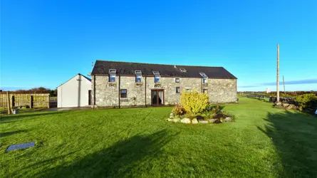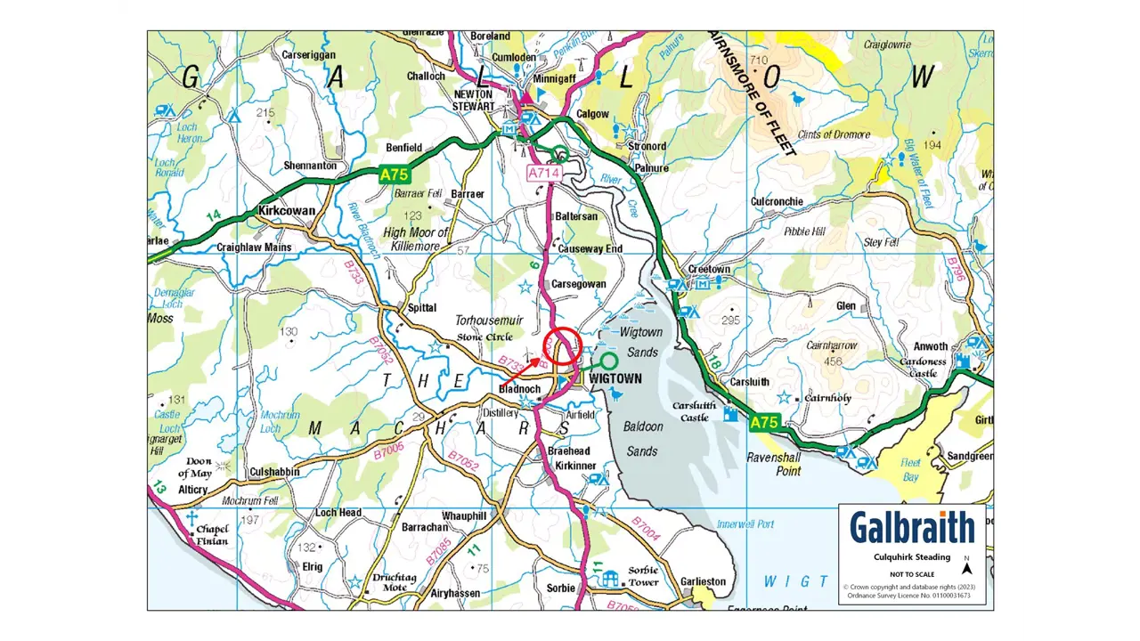 DESCRIPTION Culquhirk Steading offers a sizeable family home in a desirable part of Wigtownshire within close proximity to the popular town of Wigtown. The barn conversion, completed in 2002, offers accommodation over two floors currently offering 6 bedrooms, 2 reception rooms and a Kitchen/Dining Room with complete flexibility for the new owner to adapt and change to suit their specific needs. The large kitchen /breakfast room typically provides the heart of the home, ideal for gathering family and friends in a sizeable sociable space. The reception room adjoining with feature full height vaulted window looking out to the courtyard and above to the mezzanine connecting hallway, flooding both spaces across two levels with natural light, provides a great relaxation and/or entertaining space with double doors opening to each side, either to garden or to courtyard. Completing the ground floor a further three bedrooms one of which en-suite shower room, utility room, bathroom and store/hobby room. Staircase with mezzanine hallway rises from the living room providing access to three further bedrooms and a family shower room with large reception room at one end, offering great entertaining space and far reaching countryside views to Wigtown bay beyond. The workshop adjacent offers a fantastic space for those with a particular hobby/business/ storage need. Allowing those with a business the ability to have their work and home space combined. SITUATION Culquhirk is situated about 1 mile from the town. Wigtown, is a very popular town especially in late September, when it hosts an annual book festival. The town becomes a hub of activity as people come to listen to authors, visit the many bookshops, eat in the cafés and wander through the ‘Kist’ with stalls displaying work made by local artists and craftspeople. Wigtown has a primary school, church and chapel, post office, supermarket, a number smaller shops and cafés as well as Scotland southernmost distillery in nearby Bladnoch. Newton Stewart is the nearest town, a market town on the River Cree known as the Gateway to the Galloway Hills. Newton Stewart has a number of primary schools, the Douglas Ewart High School, a museum, leisure centre, three supermarkets, a post office which offers all postal and banking services, a cinema, and a wide range of shops, offices, businesses, hotels, restaurants and a modern distillery. The area is well known for outdoor pursuits, sports and wildlife. Kirroughtree Visitor Centre is situated approximately 4 miles from Newton Stewart and is part of the Seven Stanes range of mountain biking trails. The Galloway Forest Park offers superb walking opportunities and is home to Britain’s first Dark Sky Park, where phenomenal views of the night sky can be enjoyed.Fishing, shooting, golf and equestrian facilities are all readily available throughout the area. There are a number of local nature reserves perfect for watching local wildlife and birds including the RSPB Crook of Baldoon, just over 4 miles from Culquhirk, and Wood of Cree near Newton Stewart. Beaches too are popular with wild swimmers, especially at Garlieston and St Medan’s. Trains to Ayr and Glasgow are available at Stranraer, about 26 miles from Wigtown, and ferries to Northern Ireland sail from nearby Cairnryan. Trains also run from the regional centre of Dumfries, 53 miles to the east. Domestic and international flights are available at Prestwick Airport, 57 miles north, and Glasgow and Edinburgh Airports, 90 and 123 miles respectively. Motorway links and trains are available at Lockerbie, 65 miles east, and Kilmarnock, 63 miles north. ACCOMMODATION Ground Floor: W.C. Hobby Room. Bedroom. Utility Room. Kitchen. Sitting Room. Bathroom. Bedroom. Bedroom en suite. First Floor:Living Room. Shower room. Three further bedrooms. General Purpose Shed - (14.5m x 7m). Box profile construction with concrete floor with lighting/power. One side currently set as workshop with roller door. Partially separated with large storage space with mezzanine storage level above (6.5m x 3.65m).GARDEN (AND GROUNDS) The principal access to the property approaches to a central courtyard between the property and the general purpose shed with parking for numerous vehicles, beyond is an expansive area of hard standing (with separate access). The garden to the side and rear is predominantly laid to lawn and provides a great space to relax and socialise with family and friends. There is potential for the new owner to tailor the space to their specific needs.