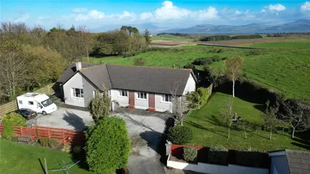 SITUATIONHillside is situated in Kirkinner on the edge of village and set back from the Main Street. Kirkinner is a small rural village in Wigtownshire with a primary school, shop & post office, small play park, village hall, sports hall and bowling green. Kilsture Forest is nearby for woodland walks and the harbour village of Garlieston and Rigg Bay are less than five miles away, ideal for coastal walks, fishing or boating activities. Hillside is also close to other ports and harbours on the peninsular including the Isle of Whithorn. Wigtown, Scotland’s National Book Town, is just over three miles from Hillside and hosts a very successful book festival in late September. The town becomes a hub of activity as people come to listen to authors, visit the many bookshops, eat in the cafés and wander through the town where local artists and craftspeople display their work. Wigtown has a primary school, various denomination churches, supermarket, a number of smaller shops, a golf club and Scotland's southernmost whisky distillery is in nearby Bladnoch. Newton Stewart, a more commercial town, is known as the Gateway to the Galloway Hills. It has a number of primary schools, the Douglas Ewart High School, a museum, leisure centre, three supermarkets, a bank and a post office which offers all postal and banking services, a cinema, and a wide range of shops, offices, businesses, hotels and restaurants. The area is well known for outdoor pursuits and sports. Kirroughtree Visitor Centre, situated approximately 12.5 miles from Hillside, is part of the Seven Stanes range of mountain biking trails and has a number of designated walks. The Galloway Forest Park is one of the best places in Britain to enjoy the night sky, the Galloway International Dark Sky Park is committed to protecting dark skies by controlling light pollution.Communications to the area are good, there is a regular bus service and the bus stop is just opposite the entrance to Hillside on Main Street. Trains operate from stations in Stranraer, Dumfries and Lockerbie. Ferry links to Northern Ireland run from Cairnryan, which is approximately 32 miles from the property. The international airports of Prestwick and Glasgow are approximately 54 miles and 88 miles from Hillside respectively. DESCRIPTION Hillside is a spacious 4 bedroom bungalow, occupying a substantial plot and tucked away from the Main Street in rural Kirkinner. Hillside enjoys far reaching views over the surrounding countryside and to the Galloway Hills from the garden behind. The entrance vestibule leads into the hallway which opens in to all accommodation. There are two reception rooms, a sitting room, the principal room, and a conservatory which extends in to the garden. The sitting room situated to the front of the property, with a LPG gas fire contributing to a cosy night in in the cooler evenings with further storage options. The kitchen adjacent has a range of fitted wall and floor units, a breakfast bar with under counter storage, an LPG gas hob and Symphony electric oven and grill. The kitchen opens through to utility room with a second sink and drainer, fitted shelves, space and plumbing for white goods and a chest freezer. Doors then open directly into the garage and out to the garden. The kitchen connects to the light and spacious conservatory, with French doors opening to the patio. There are four bedrooms, the double aspect master bedroom has a dressing room hidden within the fitted wardrobes and a separate shower room. Bedroom 2 has fitted wardrobes , bedroom 3 has fitted wardrobes and an en-suite WC. Bedroom 4 is currently utilised as a living room/snug, this room offers flexibility depending on the needs and requirements of the new owner. The integrated garage (5m x 3.25m) is currently a workshop with fitted shelving, side window, concrete floor and strip lighting. The Worcester boiler is housed in the garage and serviced annually. The double doors could be replaced with a garage door, reinstating the opportunity to park a car in the garage. There are two outbuildings including an insulated garage with box profile cladding and electricity (4.9m x 2.74m) and a timber garden shed (3.53m x 2.4m).Hillside is a hidden gem within a peaceful attractive village, with a big community spirit. ACCOMMODATION Ground Floor: Entrance Vestibule, Sitting Room, Kitchen, Utility Room, Conservatory, Office, Bathroom, Bedroom 2, Bedroom 3 with en-suite WC. Bedroom 4, Master Bedroom with en-suite Shower Room. GARDEN The access road opens to an area of gravel for parking, lined with borders filled with mature shrubs and trees. There is an area of lawn to the side of the property with a number of fruit trees and bushes including 2 apple trees, 2 pear trees a plum tree, cherry tree and blackcurrant, blueberry and gooseberry bushes.A paved pathway leads to a sheltered and private back garden with a rocky banking forming the boundary with the field adjacent. A water feature flows well with the steep incline and an array of plants and shrubs in raised beds provide colour. Steps lead to the top of the bank where the view and be admired. Deer are often seen grazing in the field and often a woodpecker is one of the many visitors to bird feeders in the garden. ACCESS/THIRD PARTY RIGHTS OF ACCESSHillside owns the entrance from Main Street and neighbours have a right of access over this road. DIRECTIONS Arriving in Kirkinner from the north side pass through Braehead and continue in to Kirkinner, passing the primary school on your left. Continue on Main Street until you see the green bus stop on the right hand side, directly opposite the bus stop there is a sign for Hillside and a private driveway to the property. POST CODE DG8 9AN WHAT3WORDSTo find this property location to within 3 metres, download and use What3Words and enter the following 3 words: width.radiated.geology
