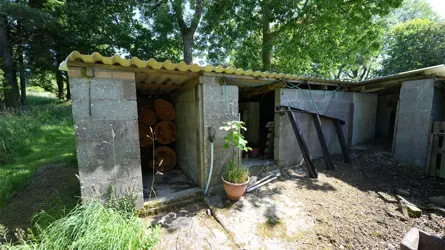 - Outbuildings comprising former piggery, detached garage, and a timber summer house