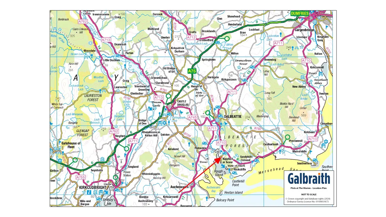 SITUATION The sites enjoy a peaceful edge of village location only a short distance from amenities. Kippford is perennially popular, featuring beautiful coastal walks, as well as being on the edge of the Dalbeattie Woods, which is great for cycling and walking. There are two inns (serving meals and local ales), the RYA award-winning Solway Sailing Club, a cafe/gift shop, village hall, an RNLI station, 9 hole golf course with tea room, and a pottery. The small village of Colvend, just 2.5 miles along the A710, is home to an excellent village store, cafe, an 18-hole golf course, and the highest-rated primary school along the Solway Coast. The nearby town of Dalbeattie has a useful range of shops, cafes, hotels, restaurants, veterinary services, primary and secondary schools, health centre, solicitors, and a park. Castle Douglas, a market town known as Dumfries and Galloway’s Food Town, has in addition, many independent retailers, a thriving livestock market, and an eighteen hole golf course. The regional capital, Dumfries, (around 18 miles east) provides a wider range of services including a major hospital, the Dumfries and Galloway Royal Infirmary. The town, once the home of the National Bard and Ploughman Poet Rabbie Burns, is now home to the Crichton campuses of Glasgow University and the University of the West of ScotlandDESCRIPTION Building plot within an attractive residential setting with planning permission in principle for one dwelling per plot. Providing a rare opportunity to create beautiful homes in a highly sought after coastal location within Dumfries and Galloway. The plots are within easy reach of the Marina and local amenities and offers tow sizeable plots in a peaceful wooded setting within an existing development. Both plots would have a right of access over the private lane. ** An additional triangle of land is available by separate negotiation which houses the electrical transformer.**Plot 1 - Offers Over £135,000 (0.65acres/2647 sq m)Plot 2 – Offers Over £110,000 (0.35 acres/ 1424 sq m) PLANNINGPlanning in Principle for the erection of two dwellinghouses. One per plot. This is subject to the additional conditions within the approval granted August 26th 2024. Planning reference: 24/0741/PIP to access the details online. Or please ask the agent and this can be provided.