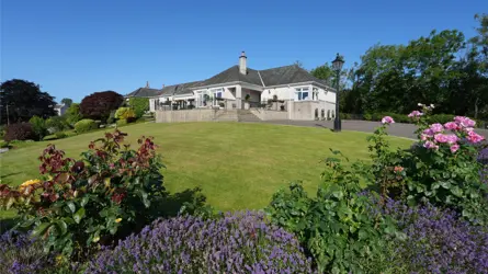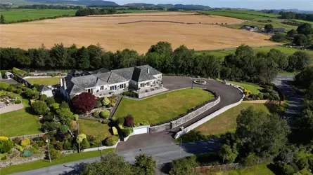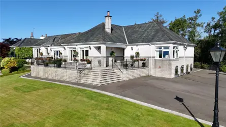 SITUATION Dunmhor sits in an elevated site on the edge of the village of Twynholm, which provides a primary school, village shop, church, garage, village hall, a small hotel and is on major bus routes being immediately accessible to the A75 euro-route. Also to be found at Twynholm is The Cocoa Bean, a tourist attraction chocolate factory with workshops, wedding and conference venues, and both indoor and outdoor children’s play areas. A wider range of amenities and services are available in the nearby towns of Kirkcudbright and Castle Douglas. The harbour town of Kirkcudbright, also known as Scotland’s ‘Artists’ Town’ , The town provides a range of services including two small supermarkets and individual specialist shops, parish church, museum, library, doctor’s surgery, optician, bank, a cottage hospital, two veterinary practices, swimming pool, tennis court, bowling green, as well as a primary and secondary school. The harbour is a main feature in the centre of the town, and there are delightful river sidewalks as well as a renowned ‘blue-flag’ marina providing excellent sailing facilities. The nearby market town of Castle Douglas also has a good range of shops, and other services, and is designated Dumfries and Galloway’s ‘Food Town’. The regional capital of Dumfries offers a wider range of shops, retail outlets and services including the Dumfries and Galloway Royal Infirmary and the Crichton Campus providing further education courses.The Southwest of Scotland is well known for its mild climate, attractive unspoilt countryside and abundance and diversity of its recreational and sporting pursuits, such as shooting and stalking, as well as trout and salmon fishing on the region’s numerous rivers and lochs. A wide variety of beaches, coastal paths and beautiful walks are within easy reach of the property. There are water sports and sailing on nearby Loch Ken as well as on the Solway, along with excellent hill walking in the nearby Galloway Hills and cycling along some of the numerous cycle routes, as well as a nationally renowned network of mountain biking routes in the hills and forest parks making up the Seven Stanes centres. The Galloway Forest Park well known for its beauty and tranquillity is also recognised as Britain’s first Dark Sky Park and affords astronomers phenomenal views of the stars with a newly opened Observatory. For golf enthusiasts there are several courses within a short driving distance, as well as the Championship course at Southerness on the picturesque Solway Coast. Communications to the area are very good, with railway stations in both Dumfries and Lockerbie. The M74 motorway is accessible at Moffat and Lockerbie, allowing easy access north and south. Regular flights to parts of the UK and Ireland as well as continental Europe depart from Prestwick Airport, which around an hour’s drive north. Both Glasgow and Edinburgh with their international airports are around two hours’ drive. A daily ferry service to Northern Ireland operates with Stena Link from Cairnryan around 50 miles to the west, close to Stranraer.DESCRIPTION Dunmhor sits in an elevated position towards the very eastern edge of Twynholm village and enjoys far reaching views across the lush green countryside towards Screel and Bengairn. The house is generously proportioned and has been extended over the years providing extensive yet adaptable accommodation space on one level. All front facing rooms have a direct connection to the front terrace from which to enjoy stunning outlook over the countryside beyond. The quality of finish throughout the property is clear to see with stunning Clive Christian room fittings, bespoke fitted kitchen with feature Aga at the heart. The generous breakfast kitchen with dining table, integrated oven/grill and fitted floor and wall units connects through to the garden room adjacent and to the rear patio, enjoying views over the rear garden. This is a stunning spot to relax and dine with friends and family. The garden room provides a delightful bright space, comfortable year round looking towards the garden at the rear with direct access to the patio. Off the kitchen is a sizeable utility space providing additional storage space and standing space for fridge & freezer. Continuing through the property a cosy snug/tv room enjoys direct access to the terrace and far-reaching views. A large, double aspect formal dining completes the reception space to this wing, with a feature fireplace to the centre of the room and a door to the front connecting to the front balcony. Further, a bedroom with fitted storage units, views to the front and a walk-in, fully fitted dressing room. There is also a bathroom and further bedroom to the rear of the property with fitted storage. Connecting through to the swimming pool is a large shower room and dressing room with large storage cupboards, ideal for pool wear and towels. Doors to the front of the pool room fill the room with light but connect to the front terrace, a decorative bridge over the pool provides a practical, yet attractive finish. To the rear of the room is a large office, ideal for those requiring to work from home and direct access to the rear garden. Adjoining is the plant room with pool controls. Continuing through to the North Wing of the property a delightful living space, flooded with light from the front facing windows and doors connecting to the terrace. A wood-burning stove at the centre of the room is ideal for cooler evenings. A range of fitted furniture includes TV storage unit and wine chiller. The breakfast kitchen opposite with a range of fitted floor and wall units, allows additional utility space including integrated microwave, coffee machine, dishwasher, oven with worktop hob and extractor over, with space for a table at the heart overlooking the garden to the rear. A stunning master suite completes the accommodation offering a delightful double aspect master bedroom with a range of 