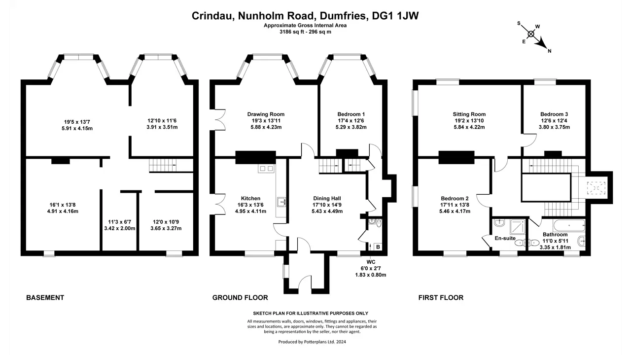 Crindau sits on the banks of the river Nith, in a popular residential area of Dumfries, about ten minutes’ walk from the town centre. Dumfries has much to offer with a good range of amenities including high street shops, retail parks, supermarkets, primary and secondary schools, a large hospital which is less than ten minutes by car, parks and leisure facilities, several golf clubs, cricket club, rugby club, and the famous Queen of the South football club. The Crichton Campus, is home to Dumfries & Galloway College and the southern campuses of the University of Glasgow and the University of the West of Scotland. The railway station connects with Glasgow in the north and Carlisle in the south, with onward connections to London. A mainline station is also available at Lockerbie, around 12 miles north east, with connections to Glasgow, Edinburgh and Manchester. Domestic and international flights are available from Edinburgh and Glasgow airports, both reachable by car in around 2 hours.DESCRIPTION This grand old lady of Nunholm was built circa 1820 and was originally one house incorporating what is now No.39 next door. Her old-house charm captivates you the moment you walk from the vestibule into the hall with its ornate cornicing, ceiling rose, oak block flooring and magnificent staircase. The current owner has enhanced the atmospheric feel of the house with rich colour schemes. The kitchen is a warm homely room(refitted in 2020) with French doors leading out onto the large south facing sandstone terrace. The drawing room is an elaborately decorated space with a large bay window giving views out over the back garden to the river. There is access to the terrace via French doors. The focal point of this room is the stunning fireplace with mirrored overmantle. The ground floor bedroom has another large bay window with a river outlook, and a decorative fireplace with mirrored overmantle.On the first floor there is a bright dual aspect bedroom to the front with an ornate fireplace, built-in press and an ensuite shower room, not to mention wonderful views across the river towards Criffel. To the rear a light and cosy sitting room (possible fourth bedroom) incorporates a woodburner, and further dual aspect views towards Criffel. A further double bedroom opens off this room. Finally, a good sized family bathroom completes the first floor layout – all accessed from a wide landing giving views down over the grand oak staircase lit from above by a large skylight.ACCOMMODATION Ground Floor: Entrance vestibule. Reception Hall/Dining Hall. WC. Kitchen. Drawing Room. Back Hallway. Bedroom 1. First Floor: Landing. Bathroom. Bedroom 2 with ensuite Shower Room. Sitting Room. Bedroom 3Basement: 5 Basement Rooms inc two with windows.NB: This level is susceptible to flooding by groundwater. For insurance purposes it is classed as non-habitable.GARDEN A tall wooden fence gives privacy and shelter from the road, and an expansive gravelled area to the front of the house provides parking for 2-3 cars. To the side (south) there is a large sandstone terrace (originally the site of an orangery). Extensive plantings of shrubs, rhododendrons, along with herbaceous beds, gives a lovely sense of enclosure and privacy to the garden. A further lawned lower level gives access to the riverbank and its wonderful outlook. There is a greenhouse, large garden shed, a dual chambered woodstore, and three wooden pallet compost bins, plus a former vegetable garden area.