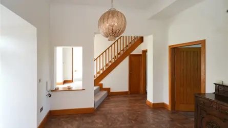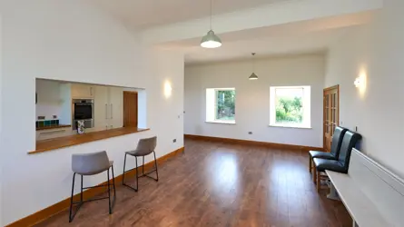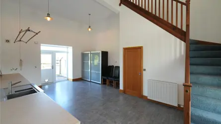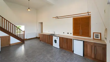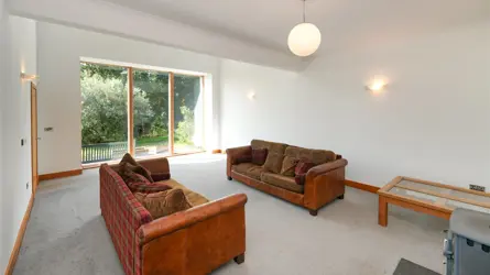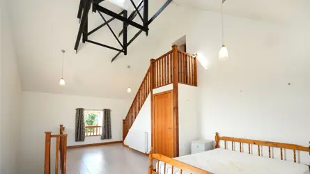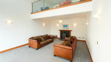 - Sitting room with vaulted ceiling and mezzanine level above.