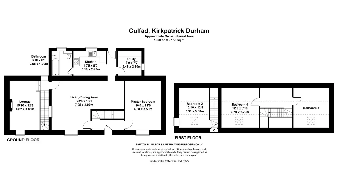 SITUATION Nestled within the rolling hills of the Stewartry area; Culfad is a little over 2 miles from the village of Springholm. The property is situated in an area that has a thriving sense of community with many activities being held within Springholm and Kirkpatrick Durham. Culfad is located approximately 5 miles from the County town of Castle Douglas, known to be the Food Town of Dumfries and Galloway due to many shops and local businesses providing a varied selection of gifts, foods and services. In addition, Castle Douglas also hosts both primary and secondary schools, supermarkets, health services veterinary services and a livestock market. Dumfries is the principal nearby town that can provide a wider range of schools, shops, retails outlets and other services including the region’s main hospital, the Dumfries and Galloway Royal Infirmary. Crichton Campus is also located in Dumfries, offering the opportunity for higher education courses. The South West of Scotland is well known for its mild climate, attractive unspoilt countryside and a diverse range of recreational pursuits including sporting opportunities. This makes the area a popular tourist destination with excellent hill walking in the Southern Uplands as well as in the nearby Galloway Hills. In addition, for those with a penchant for cycling, newly designed routes include the Seven Stanes mountain bike trails in the Ae Forest, Mabie Forest and Dalbeattie Woods will provide a challenge. Nearby Galloway Forest Park is known for its beauty and tranquillity, being the centre of the Galloway and Southern Ayrshire Biosphere. This area is also Britain’s first Dark Sky Park providing astronomers with a phenomenal view of the cosmos. Also closely situated are The Galloway Activity Centre and Loch Ken, renowned for its water pursuits including water skiing, sailing and fishing.DESCRIPTION Charming smallholding – Fully Renovated 4-Bedroom Detached Home with Extensive Outbuildings.Nestled in a picturesque rural setting, this beautifully renovated four-bedroom detached home offers the perfect blend of modern luxury and country charm. Finished to an exceptional standard throughout, the property is ready to move into, with high-quality fittings and stylish interiors.The home features a well-designed yet compact kitchen, complete with sleek quartz countertops, making excellent use of space while maintaining a modern and practical layout. The spacious living areas are filled with natural light, with the additions of a multi fuel stove to the living and dining area and a woodburning stove to the lounge, thus creating a warm and inviting atmosphere, while the four well-appointed bedrooms provide comfort and flexibility for family living. The property now benefits from being double glazed throughout, a new roof and has been fully re-wired.Beyond the main residence, the property boasts extensive outbuildings, most benefiting from water and electricity. These offer fantastic potential for a range of uses, from workshops and storage to hobby spaces. The current owners have allowed for the wintering of cattle which has generated additional income. Additionally, the charming stone buildings on the grounds present an exciting opportunity for conversion into further residential accommodation, subject to the necessary permissions.Surrounded by open countryside, this exceptional home provides a peaceful retreat while still being within easy reach of local amenities. Ideal for those seeking a rural lifestyle with scope for further development, this is a rare opportunity not to be missed.ACCOMMODATION Ground Floor: Living and dining area, main bedroom, lounge, kitchen, utility room, bathroomFirst Floor: Three double bedrooms. GARDEN (AND GROUNDS)There are lawned areas to the front and side of the property, with some further landscaping vegetable gardens and flower beds could easily be created. There are 22.06acres in total which includes the steading and land for grazing.The steading comprises of:• General Purpose Shed (25m x 10m) Of steel portal construction, box profile clad.• 4 Bay Dutch Barn• Barn Of stone built construction under a slated roof.• Cattle Shed 1 (36m x 13.5m) Portal construction, Block built walls, Yorkshire board cladding, central feed• passage.• Cattle Shed 2 (36m x 17.5m) Portal construction, Yorkshire board cladding, feed barriers.• Cattle Shed 3 (18.3m x 12m) Portal construction with overhang, Yorkshire board cladding, feed barriers• Cattle Handling Shed• Silage Clamp Earth walled with Concrete floor• Stone barn with two large stables with enclosed hard standing area.Access to the property and steading is via a private driveway with no rights of access or burdens.As there is no requirement to instruct a home report, one has not been prepared.