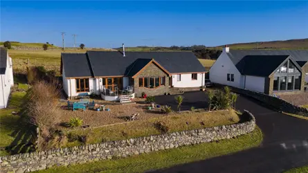 SITUATION Millhaven is situated in single row of residential properties in the small coastal hamlet, Stairhaven. This peaceful rural location is just a stone’s throw from the stunning coastline, with a backdrop of rolling countryside. A coastal walk over the cliffs from Stairhaven to Auchenmalg provides stunning views over Luce Bay below to the coastline beyond. The nearest village is Glenluce, 2.1 miles from Millhaven which has a shop, doctor’s surgery, church, primary school, golf club (County Golf Club) bowling club, public house and small gym. The nearest town Stranraer, benefits from a secondary school, primary schools, hospital (Galloway Community Hospital), supermarkets, shops, offices, hotels, restaurants, and the Ryan Leisure Centre and Theatre. Stranraer has a marina located at the southern end of Loch Ryan and hosts an annual Oyster Festival annually to promote the wonderful Loch Ryan oysters and other local food and drink. The Loch also hosts major sporting events including the Skiffie Worlds. Both curling and horse riding are very popular in the area, nearby Stranraer & District Riding Club offers training and holds regular events, and curling is available at the North West Castle, Stranraer. This area of south west Scotland is home to some beautiful scenery, with numerous coastal villages around Luce Bay and Wigtown Bay. The Galloway Forest Park nearby offers walks and mountain bike trails and is part of the UK’s first Dark Sky Park, giving it breath-taking views of the night sky. Further west Logan Botanic Gardens, Scotland’s most exotic gardens and Gallie Craig, a Cliff Top Coffee Shop are just two exceptional places to visit whilst in the area or on a day out. Communications in the area are good, trains to Ayr and Glasgow are available from the station in Stranraer. The Port of Cairnryan is just over 6 miles from Stranraer and two ferry operators run passenger and freight services to Northern Ireland both Larne & Belfast. DESCRIPTION Millhaven is a spectacular bright and spacious 4 bedroom bungalow, enhanced with vibrant colours and interior design reflecting the coastal location. On entering Millhaven you are met with a well-lit hallway and double doors opening to the hub of this home, where four rooms combine seamlessly to form one large space for relaxing, entertaining, cooking and dining. The snug, dining area and sitting room comprise wall to wall windows, framing the views and French doors open to the elevated patio from the dining area. The kitchen has an electric Rangemaster cooker and an integrated Bloomberg dishwasher & fridge/freezer. The adjacent utility room, which opens to the garden behind, includes: a Zanussi tumble dryer, Bosch washing machine, Grant central heating boiler and stainless-steel sink. The snug is a flexible space, currently an additional place to relax, but this could also be utilised as an office or playroom, depending on the needs and requirements of the new owners. A solid wooden floor extends the full length of the kitchen/dining and sitting room with a double sided wood burning stove, set on a granite hearth, between the dining and sitting room provides both additional heat when required and a focal point for the space. All four bedrooms are accessed from the hall, the triple aspect stunning master bedroom is flooded with natural light and has both a walk-in wardrobe providing essential storage space and an en-suite shower room. The master bedroom and bedrooms 2 and 3 all overlook the garden and farmland behind and have fitted wardrobes, bedroom 4 is currently a study and craft room, a room with a sizeable fitted wardrobe and sea views. The bathroom adjacent embraces the beach theme and benefits from both a bath and walk-in shower. Millhaven has a wealth of storage space including a cloakroom cupboard in the entrance vestibule, ideal for outdoor clothes and sandy shoes after walks along the beach and a walk-in cupboard at the end of the hall. Millhaven is south facing and there is the potential to site solar panels on the roof, with the relevant consents and permissions. The solar gain from the front facing windows, especially the triple glazed sitting room windows, provides a natural even warmth throughput Millhaven. The property benefits from the option to connect to the local cabinet, giving access to superfast broadband - ideal for home working and streaming. Millhaven is an impressive home by the sea, a full-time residence or holiday home in a desirable picturesque coastal location within a short distance of local amenities. ACCOMMODATION Ground Floor: Entrance vestibule, Open plan Sitting Room/Dining Area/Kitchen and Snug. Utility Room. Master Bedroom with en-suite Shower Room. Bedroom 2. Bedroom 3. Bedroom 4/Study. Family Bathroom. GARDEN (AND GROUNDS)The tarmac driveway at Millhaven provides parking space for several vehicles, and there is additional parking space to the side of the property. The highlight of the garden is the raised patio, accessed from dining area and garden, offering a stunning setting to dine alfresco during the day or in the evening as the sun sets over the Bay. The low maintenance garden has designated areas of gravel and paved pathways and a number of raised beds for both vegetables and herbs. Cordylines flourish in the sea air at Millhaven and careful planting has ensured this garden comes to life in early spring. There is a greenhouse, a small area of lawn and a steep banking behind provides both privacy and shelter. A timber garden shed (4.24m x 3m) provides storage for garden equipment and furniture and a second shed, previously a kennel, is used to store logs for the wood burning stove. Cordylines flourish in the sea air at Millhaven and careful planting has ensured this garden comes to life in early spring. DIRECTIONS If travelling from Stranraer turn right on the A75 at Glenluce where it is signposted for Stairhaven, and left if you are travelling from the east. Follow the coastal road for