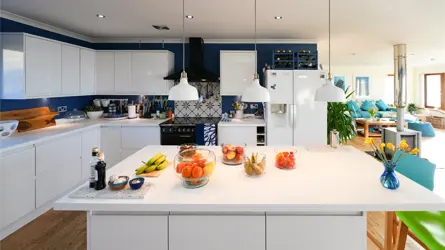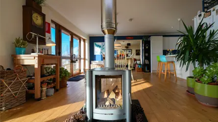 - Coastal theme décor with central wood burning stove