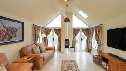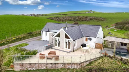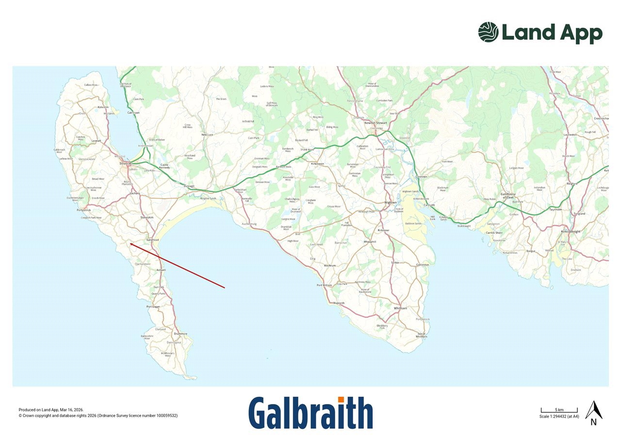 SITUATION Cherry Tree Cottage is a charming rural residential property, just 3 miles from the golden sands of Luce Bay and the picturesque seaside village of Sandhead, on the Rhins of Galloway peninsula. Sandhead hosts a primary school, shop and post office, Doctor’s surgery, well established hotel and restaurant, church, bowling club, football pitch, park and community garden. Stranraer is the nearest town where there is a large secondary school, primary schools, hospital (Galloway Community Hospital), supermarkets, shops, offices, hotels and restaurants.Logan Botanic Gardens, Scotland’s most exotic garden, is approximately 7 miles from Cherry Tree Cottage and a variety of tropical plants flourish here in the warmer climate, a result of the Gulf Stream prevalent in this part of the region. The Mull of Galloway, Scotland’s most southerly point, is just 15 miles distant, where you can visit the Lighthouse and Exhibition, walk around the RSPB Scotland nature reserve, and enjoy food and drink at Scotland’s most southerly coffee house. Dumfries and Galloway has some of the most enviable walks in Scotland, the official starting point of the Southern Upland Way is at Portpatrick, just 7 miles from Cherry Tree Cottage. Sandhead Circular Walk and the Mull of Galloway Trail are popular walks and there are a number of designated paths near the property. Curling, golf and horse riding are also very popular, Stranraer & District Riding Club offers training and holds regular events. Curling is available at the North West Castle Hotel, Stranraer and there are numerous golf courses in the area including Dunskey Golf Club, Stranraer Golf Club and Wigtownshire Golf Club. The Ryan Centre within Stranraer town centre is a multi-purpose leisure facility offering a wide range of activities and events including leisure pool, health suite, games hall, theatre which provides a year-round programme of shows and productions. Communications in the area are good, there is a regular bus service and trains to Ayr and Glasgow are available at Stranraer and the port of Cairnryan, just over 6 miles from Stranraer, there are two ferry operators running passenger and freight services to Northern Ireland. DESCRIPTION Cherry Tree Cottage is an idyllic rural retreat, ideally situated just a short distance from the coast and local amenities, offering a lifestyle that perfectly balances tranquillity with convenience. Set within approximately one acre, the paddock provides excellent potential for those seeking small-scale livestock ownership or equestrian use. Beyond the boundary, gently rolling farmland creates a picturesque outlook—perfect for relaxing and enjoying the peaceful countryside setting.The welcoming entrance vestibule flows seamlessly into the main hallway, with access to Bedrooms One and Two. Bedroom One benefits from a stylish en-suite shower room, fully tiled for a contemporary finish. Both bedrooms feature quality oak fittings and solid wood flooring, enhancing the cottage’s warm and characterful appeal.The main bathroom is beautifully appointed, featuring a freestanding roll-top bath and a wet room-style shower. Finished with white tiling throughout, the space is bright, elegant, and thoughtfully designed.A recent extension has created an impressive triple-aspect sitting room, complete with a vaulted ceiling and two sets of French doors opening onto the patio. This space is perfectly suited for modern living—offering seamless indoor-outdoor flow during the warmer months, ideal for al fresco dining, while in cooler seasons, the wood-burning stove provides a cosy focal point. Limestone flooring throughout the kitchen, dining, and sitting areas enhances natural light and complements the underfloor heating.The kitchen/dining area is both stylish and functional, featuring a Rangemaster Classic Deluxe 90 electric cooker, a Belfast-style sink, and Silestone ‘Classic Calacatta’ worktops. Integrated appliances include a dishwasher, fridge freezer, and washing machine.A large picture window overlooks the paddock, while a rear door provides access to the garden and decking area, complete with a hot tub—perfect for relaxation and entertaining. The property benefits from oil-fired underfloor heating, powered by an external Worcester boiler, in addition to the wood-burning stove. Water is metered and currently billed at approximately £24 per month via direct debit, payable to Pure Utilities.Cherry Tree Cottage presents a versatile opportunity, whether as a family home, a countryside retreat, or a potential holiday let. With fibre connectivity available for installation, it also supports modern home working in a peaceful rural setting. The property is offered as seen, with furniture and fittings available by separate negotiation.ACCOMMODATION Ground Floor: Entrance vestibule. Bedroom 1. Bedroom 2. Bathroom. Open plan Kitchen/Dining and Sitting Room.GARDEN (AND GROUNDS) On arrival at Cherry Tree Cottage there is off-road parking for more than one vehicle on pattern-imprinted concrete, with steps leading up to a gated patio featuring an elegant compass design. A contemporary glass balustrade borders the front and side of the patio, ensuring uninterrupted views across the surrounding countryside. The patio extends seamlessly to a decking area with a hot tub—an idyllic space for relaxing and entertaining in a peaceful setting.The garden also benefits from a wooden shed and a UPVC storage unit, providing practical outdoor storage. Subject to the necessary consents, there is potential to extend the garden into the adjoining paddock, offering flexibility to suit the needs of the new owner.DIRECTIONS Exit the A716 opposite the north entrance into Sandhead and follow the B7042 for 0.4 miles, turn left and follow the road for a further 2.3 miles. At the crossroads turn left for approximately 0.5 miles and Cherry Tree Cottage is on your left. POST CODE DG9 9LF WHAT3WORDSTo find this property location to within 3