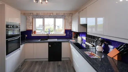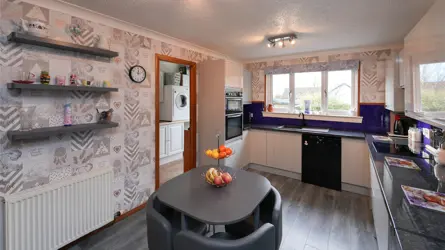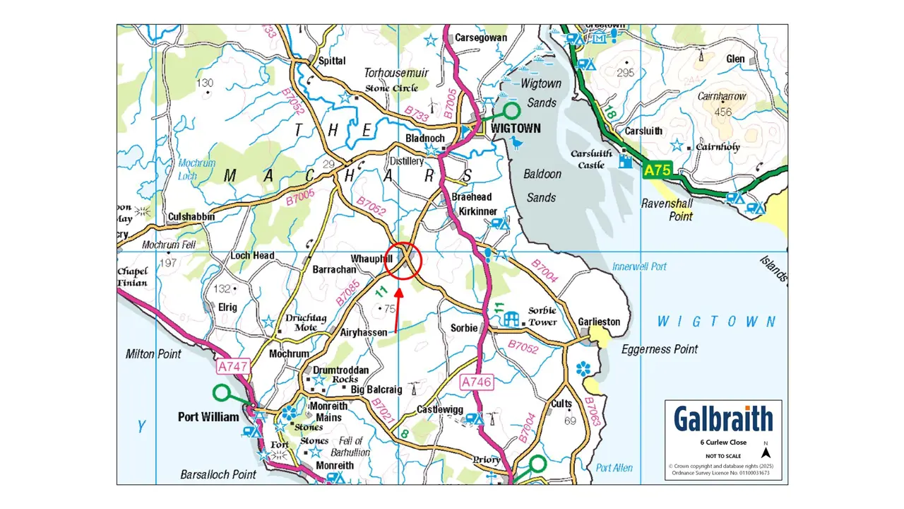 SITUATION 6 Curlew Close is situated in a quiet rural area of southwest Scotland, on the edge of the village of Whauphill, and less than 5 miles from Scotland’s National Booktown, Wigtown. The location of 6 Curlew Close is also within minutes of two very picturesque bays, Luce Bay to the west and Wigtown Bay to the east. Wigtown hosts an annual book festival in late September and the town becomes a hub of activity as people come to listen to authors, visit the many bookshops, eat in the cafés and wander through the ‘Kist’ with stalls displaying work made by local artists and craftspeople. Wigtown has a primary school, church and chapel, post office, supermarket, a number of smaller shops and Scotland’s southernmost distillery is in nearby Bladnoch. Newton Stewart is the nearest town, a market town on the River Cree known as the Gateway to the Galloway Hills. Newton Stewart has several primary schools, the Douglas Ewart High School, a museum, leisure centre, three supermarkets, a post office, cinema and a wide range of shops, offices, businesses, hotels, restaurants and a modern distillery. The area is well known for outdoor pursuits and sports. Kirroughtree Visitor Centre is situated approximately 5 miles from Newton Stewart and is part of the Seven Stanes range of mountain biking trails. Fishing, shooting, golf and equestrian facilities are all readily available throughout the area. Trains to Ayr and Glasgow are available at Stranraer, about 26 miles from Whauphill, and ferries to Northern Ireland sail from nearby Cairnryan. Trains also run from the regional centre of Dumfries, 58 miles to the east. Domestic and international flights are available at Prestwick Airport, 59 miles north, and Glasgow and Edinburgh Airports, 93 and 126 miles respectively. Motorway links and trains are available at Lockerbie, 71 miles east, and Kilmarnock, 66 miles north. DESCRIPTION 6 Curlew Close is presented in immaculate condition and offers spacious accommodation over a split ground level, with adaptability within to suit the specific needs of the buyers with specific regard to bedroom/reception room layout. Of timber frame construction under a tiled roof, the current owners have run a programme of improvements since they purchased about 9 years prior. A welcoming hallway provides immediate access to the fourth bedroom with large front facing window. Continuing through leads to the charming living room, with a large window to the rear garden, an open fire for those cooler winter evenings and doors through to a sunroom. The sunroom is currently utilised as a dining room and has French doors providing access directly to the rear garden. Moving through the property the modern fitted breakfast kitchen provides an attractive room with ample space for table and chairs. With a range of fitted floor and wall units, integrated oven & hob and ample under counter space for appliances. The sink and draining board is situated in front of a large window with views to the rear garden and countryside beyond. Door opens to the utility room with further fitted units, space for a washing machine and housing the Worcester Bosch Boiler, fuelling the Oil Central Heating. A door provides direct access to the rear garden. The bedrooms to this side of the property are well proportioned and all offer fitted wardrobe space. The master bedroom is a delightful room with a large front facing window and a modern fitted shower en-suite. The modern fitted family bathroom with large corner bath completes the accommodation offering. Externally the property benefits from a generous plot, with a garden to front and rear with ease of maintenance at the forefront. A large gravel driveway provides off road parking for a number of vehicles leading directly to the garage with electric door. 6 Curlew Close is a fine example for a property being offered in true “turn key” condition. Immaculately presented inside and out providing a deceptively spacious and adaptable home in an appealing rural edge of village location. ACCOMMODATION Ground Floor (split level): Entrance Hallway. Bedroom. Living Room. Sun Room/Dining. Breakfast Kitchen. Utility Room. Master Bedroom with En-Suite Shower Room. Bedroom. Bathroom. Bedroom. OUTBUILDINGS Garage (7.6m x 3.4m) & Workshop (6.1 x 4.6) with front covered area. Both have electric, with electric door to front of garage. GARDEN To the front an area of lawn with some mature shrubs, a large, gravelled parking area provides parking for several vehicles. Paved pathway leads directly to front door. To the rear a beautiful, raised feature pond with lawn and a separate area of astro grass with paved area, providing a peaceful spot to relax and unwind. Access directly from the sunroom or from the utility room to the garden together with gate from the front driveway. A wooden gate provides further access to the side of the property if required. Fully enclosed.