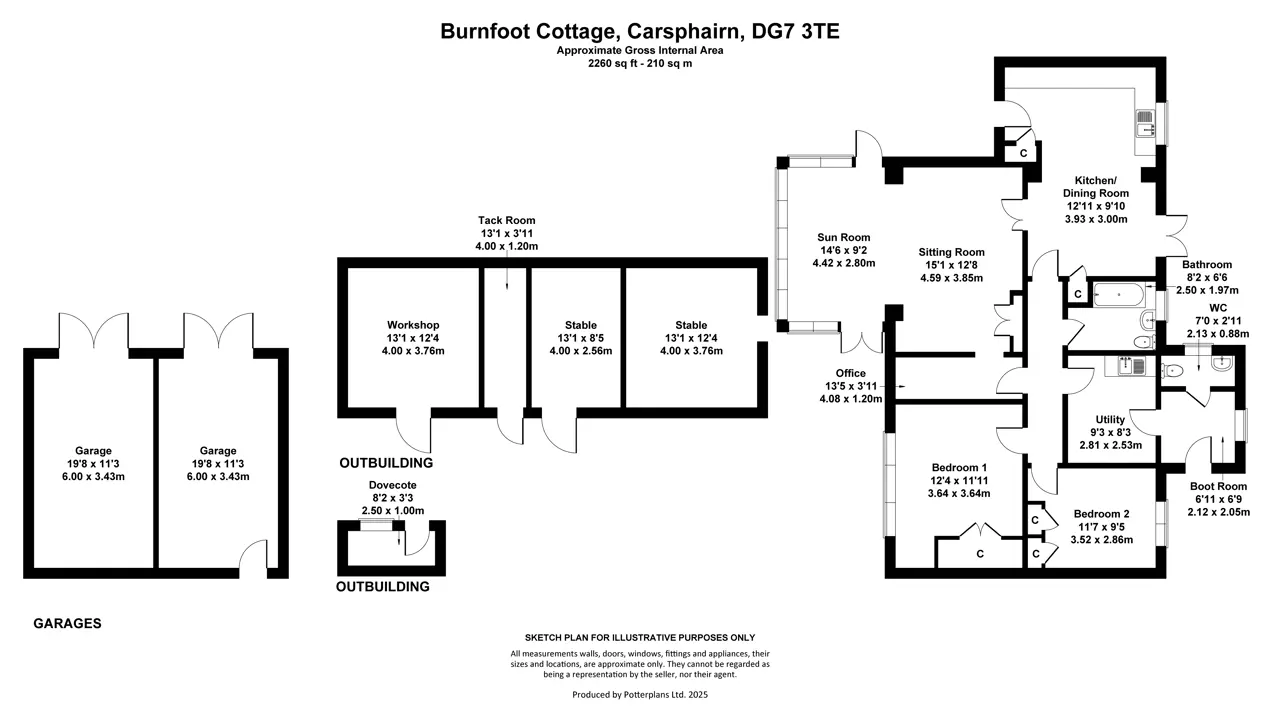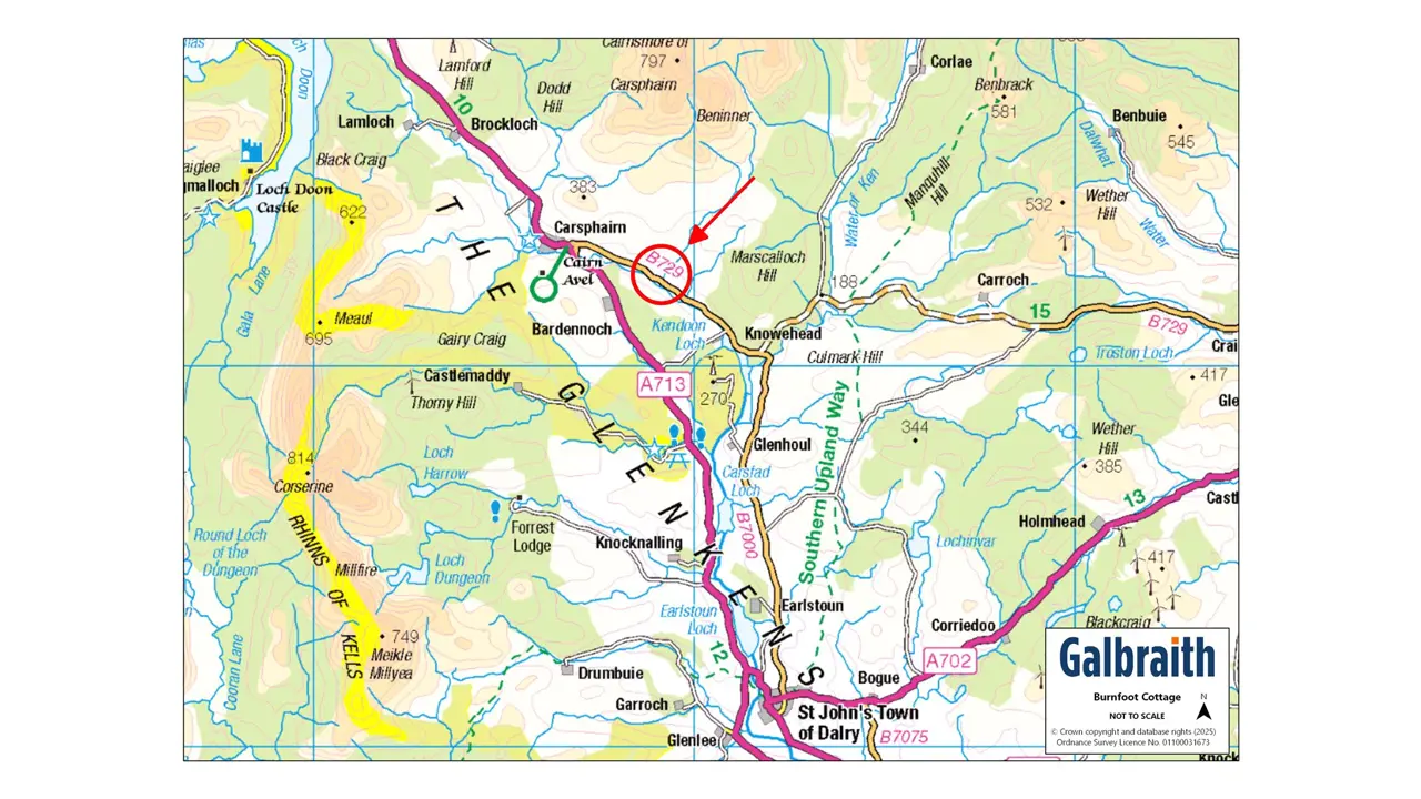 ** CLOSING DATE 12 NOON FRIDAY 29TH AUGUST**SITUATION Burnfoot Cottage sits in stunning countryside to the southwest of the village of Carsphairn. Carsphairn has a thriving community and a very good community owned shop (not currently open), as well as numerous community groups covering a wide range of interests. Carsphairn Renewable Energy Fund Ltd has a scheme where every household can apply to a LEDS (Local Energy Discount Scheme, currently £600/pa) towards energy costs. Carsphairn Community Trust endows annual extra-curricular grants for local school age children. Primary schooling, whilst once available in the village, is available at Dalry, approximately 10 miles to the south. Secondary schooling is also available in Dalry up to 4th Year, with 5th and 6th years available in Castle Douglas. Castle Douglas is a popular market town with a wide range of amenities including health centre, 3 supermarkets, primary and secondary schools, livestock market, vets, banks and solicitors. A wider range of amenities including many high street shops is available in Ayr to the north.Communications to the region are good with motorway connections north and south available at Moffat, Lockerbie and Gretna. Mainline train stations are in Lockerbie and Dumfries with connections to Glasgow, Edinburgh, Manchester and London.The region is famed for its outdoor sporting opportunities including mountain biking at the various Seven Stanes forest centres, fishing and shooting on the stunning lochs, hillsides, coast and rivers, golf at numerous courses including the championship course at Southerness, and equestrian pursuits.DESCRIPTION Burnfoot Cottage is a wonderful two bedroomed home set in a country garden and adjacent paddocks, vegetable garden and woodland. The house has been enhanced by the current owner by the addition of a lovely sunroom, with electric Velux windows, which adds additional reception space as well as light and views of the garden and red squirrels, which frequently visit the feeder by the house. The spacious sitting room has a hidden secret, the cupboard doors open to reveal small stairs up to the attic space. The attic space has generous storage space with plenty of shelving. Throughout the house are bespoke doors and carvings forming handles and shelfing, a charming and artistic touch which adds to the warm and inviting character of the property. The heart of the home is undoubtedly the dining kitchen with its striking cabinetry, Belfast sink and quarry tiled floor. The dining end has wood flooring with ample space for table and chairs looking out at the back garden through the glazed double doors. Two good sized bedrooms with wardrobes and a bathroom are complemented by a small office space and a useful utility room with sink. The utility room could possibly be converted to a third bedroom with en suite, subject to obtaining necessary consents. A boot room with WC completes the accommodation. The house is heated by an air source heat pump, which is still benefits from a domestic RHI with two years left to run.Burnfoot Cottage offers a chance to embrace an idyllic rural lifestyle, as well as a degree of self-sufficiency by growing your own produce and wood fuel. The outbuildings include two garages, two stables, a log cabin with turf roof, a workshop and four sheds, including a large woodstore. The attractive species-rich paddocks provide the opportunity to keep a small number of sheep or a couple of ponies. ACCOMMODATIONDining Kitchen. Sitting Room. Sunroom. Two Double Bedrooms. Bathroom. Utility Room. Boot Room. WC.GARDEN AND GROUNDSThe garden is a beautiful cottage garden with areas of lawn, surrounded by uncut grassland, mature shrubs and trees, making it a haven for wildlife including regular red squirrel visitors, and a wide variety of wild birds. A generous patio leads out from the sunroom with steps down to the front garden, an ideal place for outdoor entertaining or relaxing with a glass of something chilled on a warm summer evening. To the side, there is a vegetable garden in which can be grown a wide variety of produce, with a polytunnel to the rear of the property. Wooded areas give shade and shelter. Two garages, stables, tack room, chicken run with shed and second polytunnel, workshop, three garden sheds and wood store can support a wide variety of rural lifestyles and hobbies. A log cabin with turfed roof sits in the rear garden and has a log burner, making it a wonderful addition to the accommodation and somewhere to enjoy chillier days.The land, holding number 82/509/0056, is ideal for a small number of sheep or ponies etc to graze. From the top of the holding, the views of the surrounding countryside are panoramic, showing the beauty of this rural, yet accessible, area.