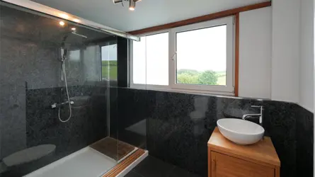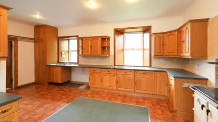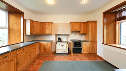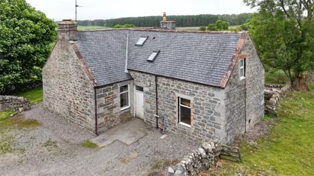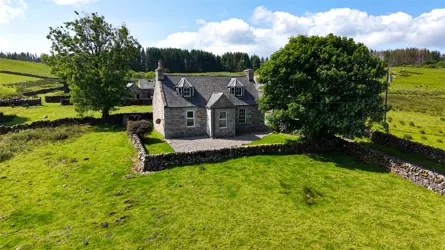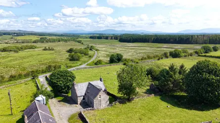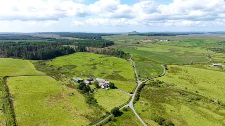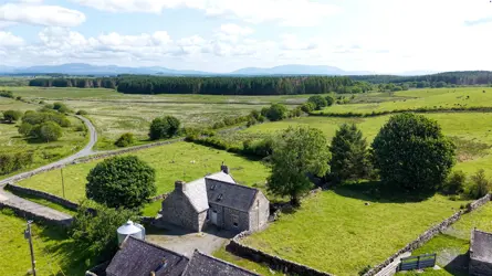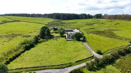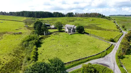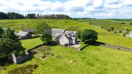 - A traditional whinstone farmhouse in a peaceful country setting, with outbuilding/garage and views over the surrounding countryside.