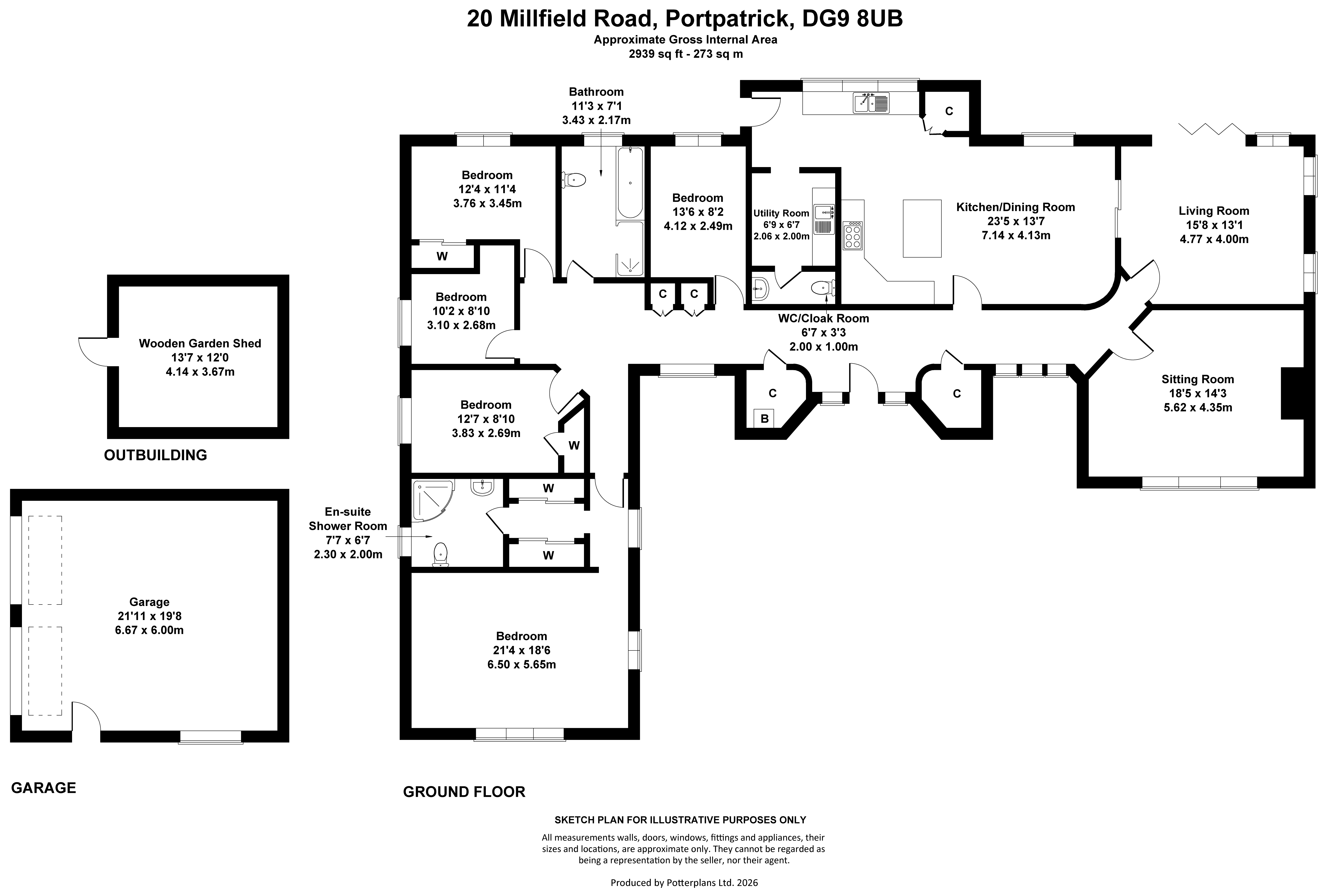 DESCRIPTION 20 Millfield Road is an impressive five-bedroom family home, ideally positioned within easy reach of the local primary school and a range of everyday amenities. Set back from the road, a private driveway flanked by mature trees and shrubs creates an immediate sense of seclusion, opening to a generous parking area that continues around to the rear garden and double garage. A covered archway provides an attractive entrance, leading into a welcoming reception hall from which the accommodation flows.At the heart of the home lies a superb kitchen and dining space—bright, expansive, and perfectly suited to modern family living. Designed as a true hub, it offers ample room for both relaxed dining and social gatherings. A central island with breakfast bar seating complements the space, while integrated appliances—including a five-ring gas hob, double oven, dishwasher, and full-height fridge and freezer—are seamlessly incorporated. A walk-in pantry adds further practicality. Adjacent are a utility room and WC cloakroom, thoughtfully positioned for convenience and everyday use.Sliding pocket doors connect the kitchen to the living room, allowing for an open-plan layout or more defined spaces as desired. The living room itself is a comfortable, dual-aspect retreat, with bi-fold doors opening onto decking—perfect for indoor-outdoor living. A separate sitting room offers a more formal setting, complete with a gas fire and pleasant outlook over the front garden.The spacious master bedroom is filled with natural light, enhanced by a dressing area with fitted wardrobes and a well-appointed en-suite shower room. Three further double bedrooms also benefit from fitted storage, while a fifth bedroom offers flexibility as a home office or hobby space. The family bathroom is well equipped with both bath and separate shower. Additional storage is provided by two walk-in cupboards in the hall, one housing the boiler for the heating system, with oil-fired underfloor heating and individual room thermostats ensuring comfort and efficiency throughout.20 Millfield Road enjoys extensive garden grounds, offering excellent space for family life and outdoor entertaining. Combining space, privacy, and versatility, this property presents a compelling opportunity for those seeking a substantial family home in a desirable coastal village setting.20 Millfield Road is situated on the edge of Portpatrick, within a quiet cul-de-sac and a backdrop of glorious open countryside.Portpatrick offers a range of local amenities, including shops, a primary school, church, putting green, and several beachfront hotels and restaurants. During the summer months visitors and residents alike can be found dining al fresco while admiring the stunning coastal scenery. The area is renowned for its excellent walking opportunities. Scenic routes include paths to Sandeel Bay and Lairds Bay, as well as a short walk to Dunskey Castle, a dramatic 16th-century ruin set against a backdrop of cliffs. For more adventurous walkers, Portpatrick marks the western start (or end) of the infamous Southern Upland Way.Stranraer, located less than eight miles from Portpatrick, is the nearest major town and provides a wider selection of amenities, including both primary and secondary schools, the Galloway Community Hospital, supermarkets, shops, restaurants, hotels, offices, and a railway station. Just over six miles further is the port of Cairnryan, where two ferry operators offer passenger and freight services to Northern Ireland.The region is also popular with golfers, with several courses nearby, including Dunskey Golf Club, on the edge of the village as well as Stranraer Golf Club, Wigtownshire County Golf Club, and the world-renowned Turnberry Golf Course, approximately 43 miles away. Curling and horse riding are also well established in the area, with facilities such as the Stranraer & District Riding Club and the curling rink at North West Castle.DOUBLE GARAGE/WORKSHOP (6.67M X 4.82M)Of block construction. Pedestrian entrance and side window. Two roller doors (2 x 2.3m) Pitched tiled roof. Worksop with workbench. Wall units and shelving. ACCOMMODATION Ground Floor: Kitchen/Dining Room. Utility Room. Living Room. Sitting Room. 4 bedrooms. Bathroom. Master Bedroom with en-suite bathroom.GARDEN From Millfield Road, a tarmac driveway bordered by mature trees and established shrubs set within a gravel bed creates an attractive and private approach. The drive opens to an area for parking in front of the property and continues to the double garage behind.The garden has been thoughtfully arranged with ease of maintenance in mind, featuring raised borders and well-defined areas. Two separate decking spaces provide ideal settings for outdoor dining and relaxation, making the most of the surroundings. A garden shed (3.67m x 4.14m) offers excellent storage for tools and equipment, while a timber fence encloses the grounds, ensuring both privacy and security.DIRECTIONS On entering Portpatrick turn slight right on to Heugh Road, then right again on to Heugh Rise and take the first exit on the right to Millfield Road. Follow the road until you see 20 Millfield Road directly in front of you. POST CODE DG9 8UB WHAT3WORDSTo find this property location to within 3 metres, download and use What3Words and enter the following 3 words: soulful.bolt.discusses