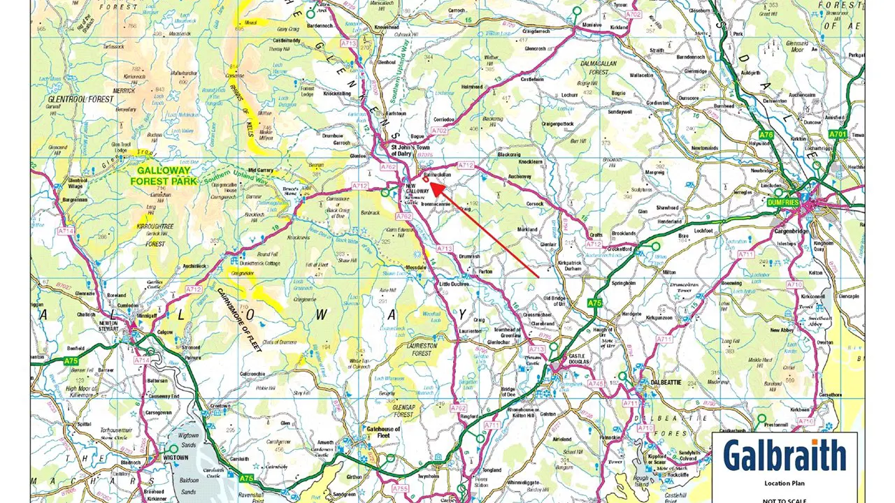 SITUATION Hill of Balmaclellan occupies a delightful rural location nearest to Balmaclellan but overlooking Scotland’s smallest Royal Burgh New Galloway (2 miles distant). Balmaclellan has a village shop and The Old Smithy, which is an arts centre twinned with The Catstrand based in New Galloway. The Catstrand has a café, exhibition space, shop and 90 seater theatre where events run all year round. New Galloway has two hotels, community shop, Glenkens medical practice, as well as a popular 9 Hole Golf course. Kells Primary School is situated in New Galloway and buses provided to Secondary school in St Johns Town of Dalry and Castle Douglas. The nearby market town of Castle Douglas has a good range of shops, supermarkets, and other services, and is designated Dumfries and Galloway Food Town. The regional capital of Dumfries, about 25 miles distant, offers a wider range of shops, retail outlets and services including the Dumfries and Galloway Royal Infirmary and the Crichton Campus providing further education courses.Communications to the area are very good, with a daily bus service from New Galloway and railway stations in both Dumfries and Lockerbie. The M74 motorway is about 50 miles distant allowing easy access north and south. Regular flights to parts of the UK and Ireland as well as continental Europe depart from Prestwick Airport, which is 43 miles to the north. Both Glasgow and Edinburgh with their international airports are 75 and 85 miles respectively. A daily ferry service to Northern Ireland operates with Stena Link from Cairnryan 46 miles to the west, close to Stranraer.DESCRIPTION The property is a detached two storey property that has been extended to incorporate a large single story converted byre. Adaptable accommodation space predominantly on one level offering 5 bedrooms, 4 of which en suite. 2 Bedrooms to the first floor. The property enjoys a south westerly aspect, and the living room benefits greatly from a double aspect enjoying far reaching countryside views with New Galloway in the distance, a multi fuel stove benefits those cooler evenings. The sunroom also affords a beautiful outlook and connects with the garden to the front and side. The large kitchen/breakfast room with a double aspect, has a Rayburn at the heart, traditional fitted units with an overhead pully and press storage cupboard, adjoining is a spacious back kitchen/utility space with modern fitted units and worktop with under counter space for appliances. Connecting from the sunroom and main hallway is the dining room with wood burning stove and press storage cupboard, an ideal space for gathering with friends and family. The added byre that has been incorporated provides an office, 3 ensuite bedrooms all with fitted storage. The master is a beautifully bright room with far reaching countryside views, extensive storage and ensuite with both bath and walk in shower. At the end of the hallway is a workshop, this could be easily adapted to add a further bedroom if required. The accommodation could easily be configured or separated to accommodate multi-generational living, subject to relevant consents. 16 Solar panels are roof mounted on this part. Accessed from the end of the hallway is an extensive wood store/boiler house/workshop/storage space with door to the rear accessing paddocks. The biomass boiler and oil boiler are housed within, together with a store of logs.Sitting opposite within the courtyard is a further detached outbuilding, offering garage/workshop/animal shelter space. There is a partial first floor (not inspected). All outbuildings offer great potential to adapt or develop specific to the buyer’s needs.Extending to about 2 acres in all. **FOR THE AVOIDANCE OF DOUBT THE FORMER AGRICULTURAL BUILDINGS ADJACENT TO THE PROPERTY ARE IN SEPARATE OWNERSHIP.**Hill of Balmaclellan offers a fantastic lifestyle purchase. An attractive package and is of a type which is of continued demand throughout the region. ACCOMMODATION Ground Floor: Porch. Staircase Hallway. Shower Room. Kitchen/Breakfast Room. Back Kitchen/Utility. Sun Room. Dining Room. Living Room. Office. Master Bedroom En Suite. W.C. Bedroom Bathroom en-suite. Bedroom Bathroom en-suite. Workshop/Bedroom. First Floor:Bedroom Ensuite Bathroom. Bedroom. OUTBUILDINGStore Room/Log Store/BoilerHousing biomass boiler. Oil Boiler. Wood Store. Large storage space. Extensive stone built detached outbuilding. Partial first floor, not inspected. Doors to courtyard, two open fronted. Potential to develop/adapt to suit the specific needs subject to relevant consents. GARDEN (AND GROUNDS) The track leads to the property and into the central courtyard or behind to the outbuildings. The central courtyard provides and area with raised beds suitable for home growing veg. Surrounding the property is predominantly laid to grass, with an attractive seating area from the sun room the perfect spot for relaxing or entertaining friends and family and enjoying the peaceful surrounding and beautiful far reaching views. About 2 acres in all.SERVICES, COUNCIL TAX AND ENERGY PERFORMANCE CERTIFICATE(S) Mains Electric. Mains Water. Septic Tank. Oil Central Heating. BioMass. Fibre to the cabinet/dug in. Needs connected 16 Solar Panels roof mounted on the property. FLOOD RISKFlood maps of the area can be viewed at https://map.sepa.org.uk/floodmaps/FloodRisk/SearchPOST CODE DG7 3PWWHAT3WORDSTo find this property location to within 3 metres, download and use What3Words and enter the following 3 words: toolbar.vows.relations , LOCAL AUTHORITYDumfries & GallowayFIXTURES AND FITTINGSNo items are included unless specifically mentioned in these particulars.VIEWINGSStrictly by appointment with the Selling Agents. HEALTH & SAFETYAppropriate caution should be exercised at all times during inspection particularly in reference to any livestock present and working machinery and equipment on the property.