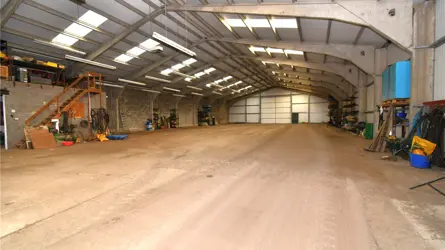 The subjects comprise a large steel portal framed shed with full height (W6m x H5m) sliding rear doors. The walls are a mix of block construction and box profile cladding. The floor is laid to concrete and lighting is by means of suspended lights. Inside the shed is a small workshop (5m x 9m)There is a yard area to the front of the property which is laid to hardcore. Water & ElectricityAn agricultural use would be desirable.Please contact Galbraith Cupar for further information.Apox Size - L40m x W20m x H7m
